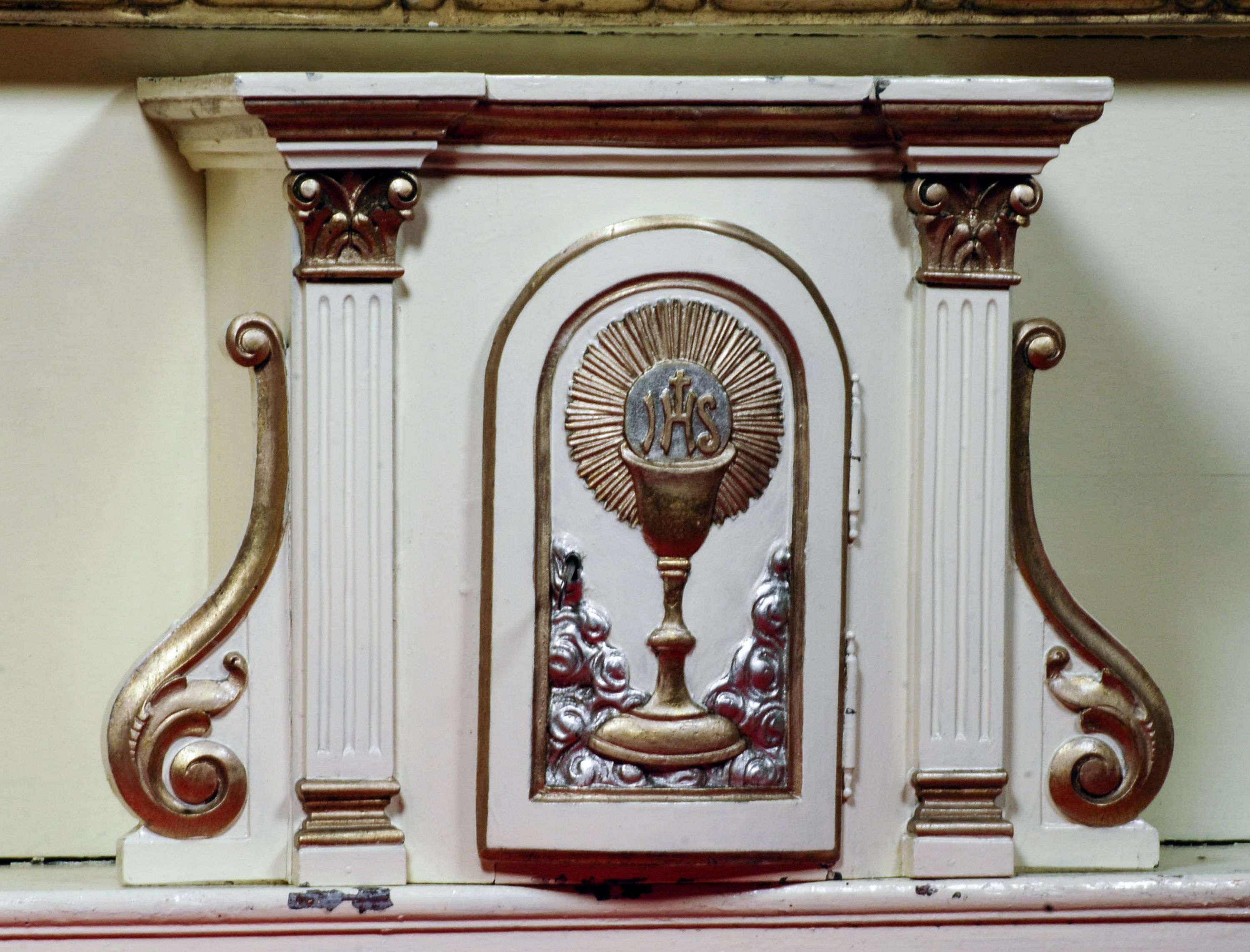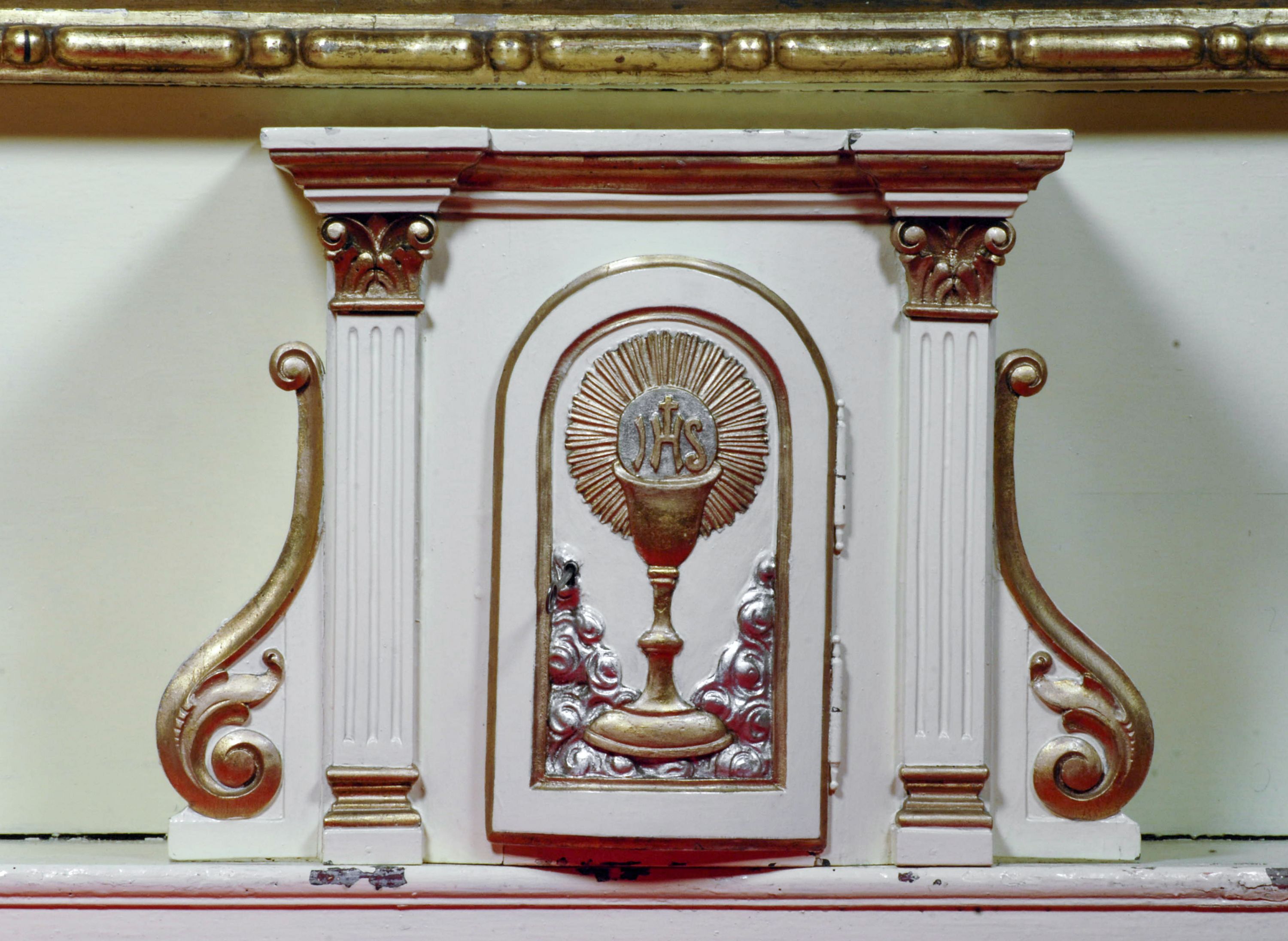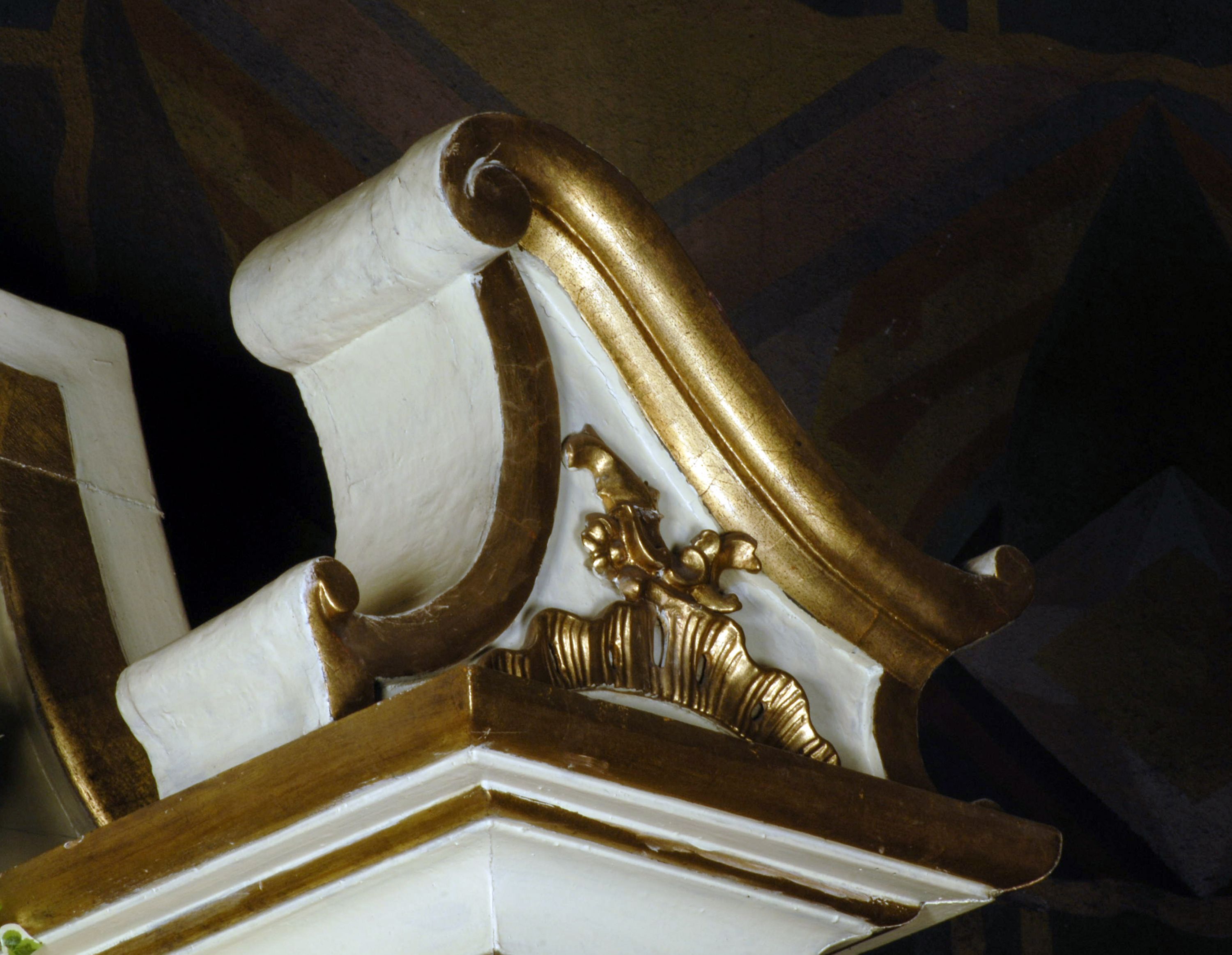 Dobry, brak części festonu w zwieńczeniu ołtarza.