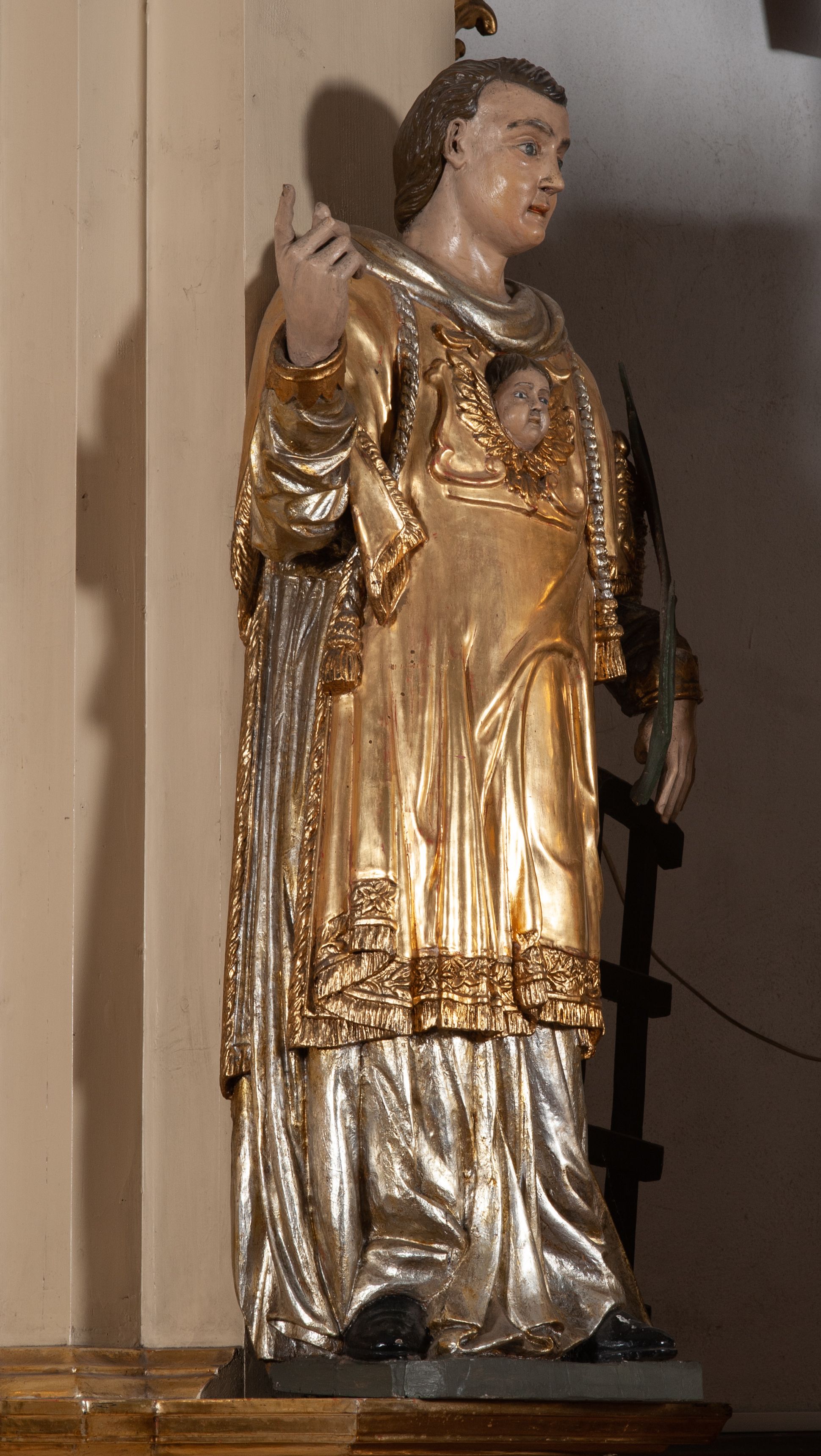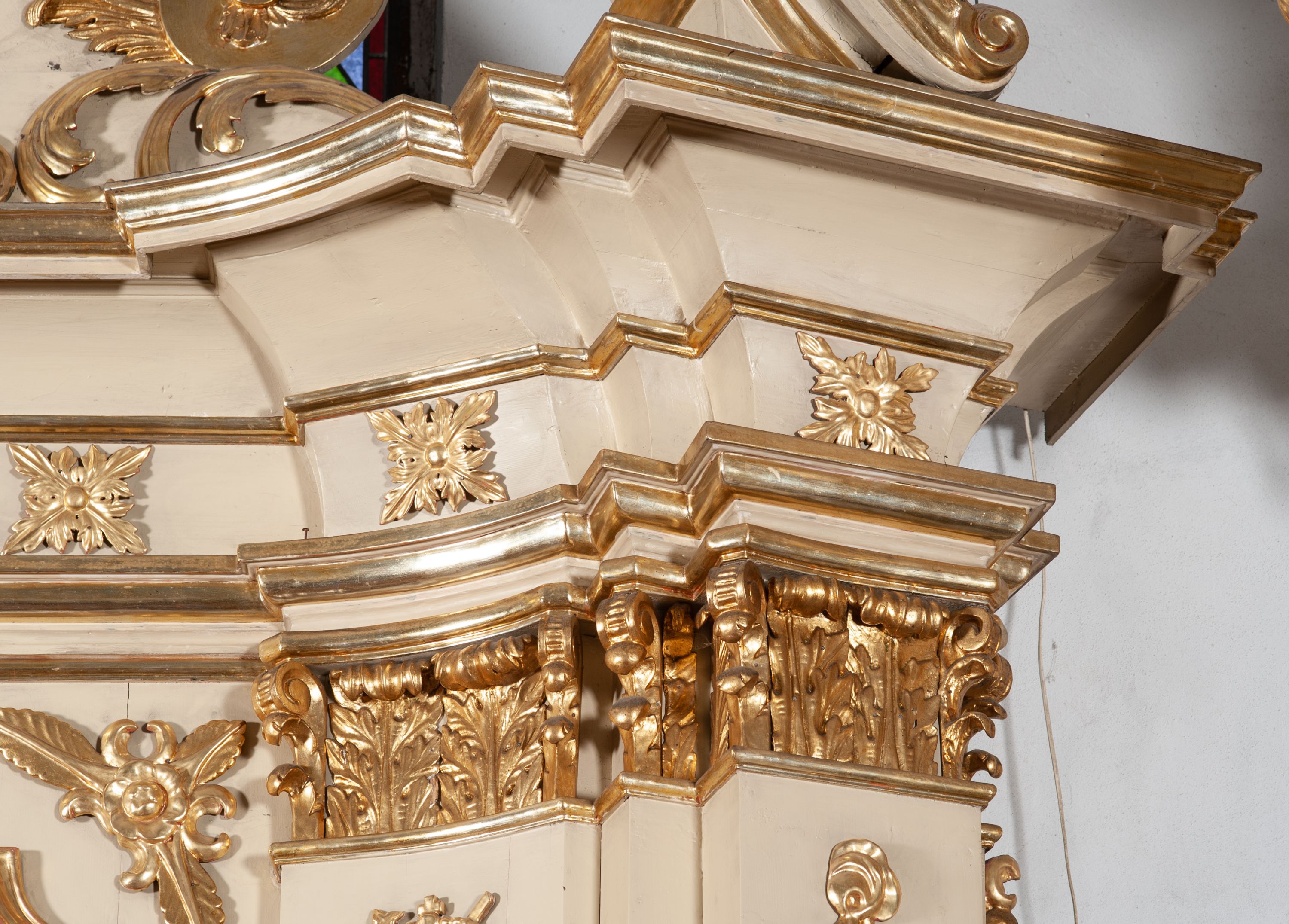 Struktura w kolorze kremowym, detal architektoniczny i ornamentyka złocone.