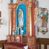 Retabulum ustawione na wysokim, zdwojonym, uskokowym cokole. Nastawa ujęta parą kolumn korynckich. Kolumny wspierają przerwane, wyłamane ponad nimi belkowanie z wysuniętym gzymsem. Pola środkowe w formie prostokątnej wnęki zamkniętej półkoliście, ujętej profilowaną ramą. Wewnątrz pola rzeźba Matki Boskiej ustawiona na wsporniku, wspartym na dwóch kolumienkach. Po lewej stronie rzeźba św. Bernadetty z Soubirous. Tło malowane na kolor błękitny. W partii fryzu motyw stylizowanej palmety. Po bokach nastawy uszy z liści akantu oplatające kratkę regencyjną. W pionowych polach flankujących główną scenę ołtarza ornamentyka roślinna liści akantu z rozetami, pomiędzy nimi motyw kwiatu róży.
