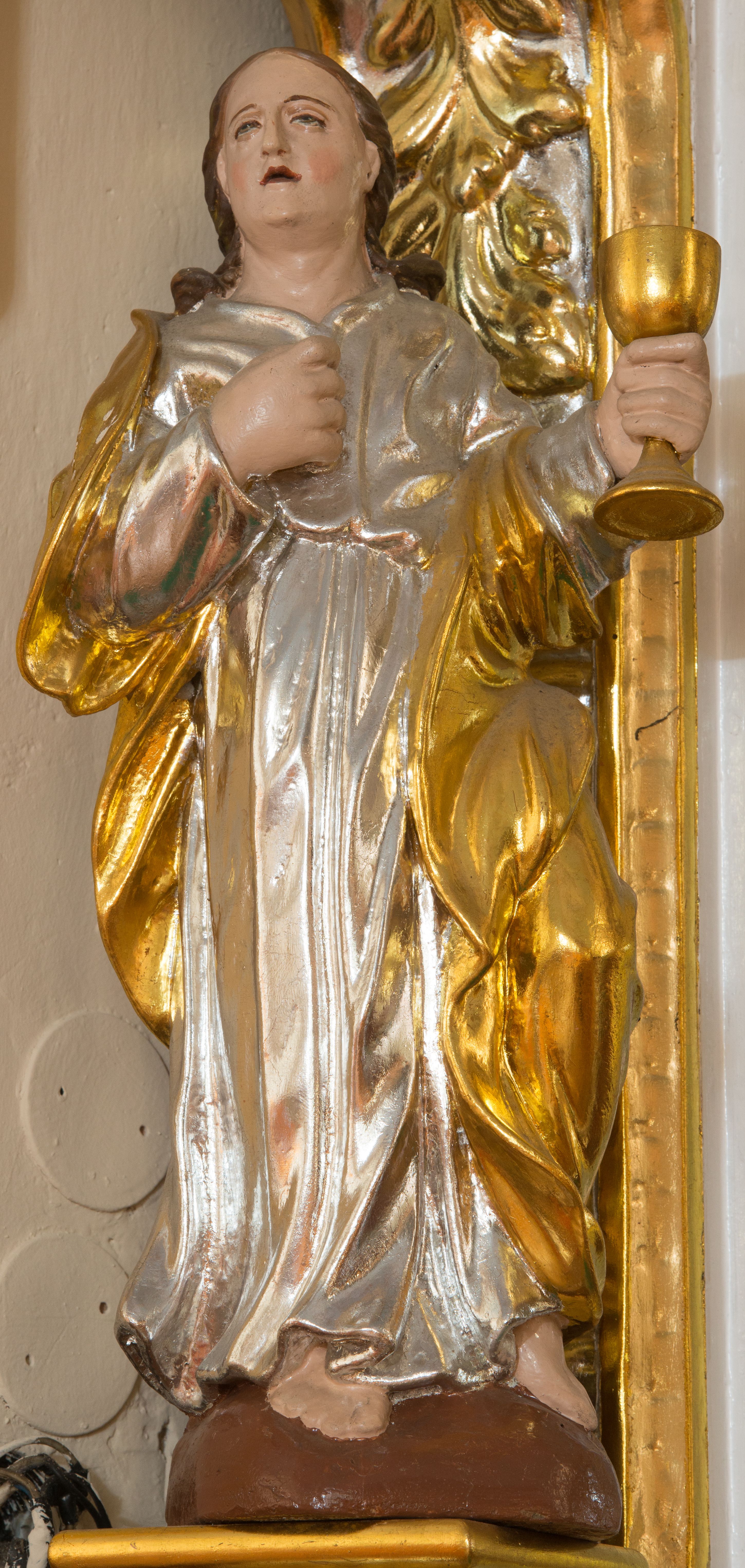 Ołtarz boczny został wykonany w drugiej połowie XIX wieku. W polu głównym umieszczona jest rzeźba Matki Boskiej Niepokalane Poczętej, a powyżej św. Mikołaja Biskupa. Boki retabulum flankuje rzeźba św. Jana Ewangelisty po lewej stronie oraz nieznanej świętej po drugiej stronie.