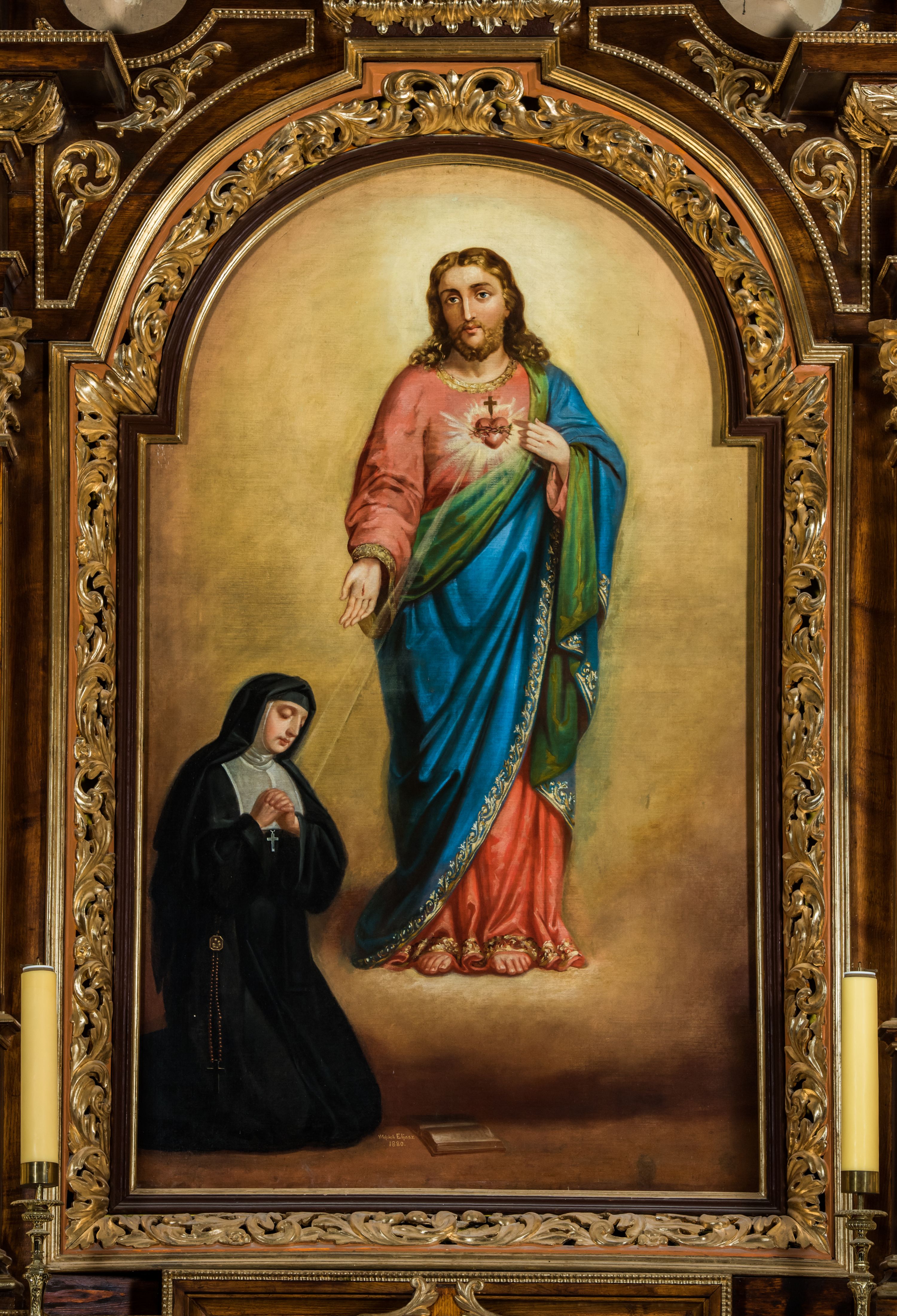 Od początku kształtowania się wystroju wnętrz kościołów reformackich istotną rolę odgrywał zespół ołtarzy bocznych, niewiele jednak zachowało się informacji na temat ich pierwotnych form. Na podstawie zachowanych planów można określić, iż było ich zazwyczaj cztery lub sześć. Sytuowano je symetrycznie przy tęczy oraz przy ścianach po obydwu stronach nawy we wnękach ołtarzowych. Najprawdopodobniej ich strukturę stanowiła jedynie mensa ołtarzowa, stopień do ustawiania lichtarzy oraz ozdobne antepedium, które zmieniano w zależności od okresu liturgicznego. Powyżej mensy wieszany był obraz z patronem ołtarza, ujęty prostą ramą. Tę skromną postać ołtarzy bocznych od pierwszej połowy XVIII wieku zaczęły stopniowo zastępować retabula o strukturze architektonicznej. W ramach ustawodawstwa prowincji małopolskiej nie wypracowano konkretnego modelu czy wzorca retabulów ołtarzowych. Przepisy odnosiły się jedynie do zagadnień ogólnych i podstawowych, podkreślając, iż każdą realizację ma charakteryzować „blask najwyższego piękna i najściślejszego ubóstwa”. Efektem tego, stosunkowo prosta struktura ołtarzy pozbawiona była nadmiernej ornamentyki, polichromii a nawet kolumn stanowiących przejaw przepychu. Grupa trzech ołtarzy bocznych, do której należy retabulum z przedstawieniem „Najświętszego Serca Jezusa i św. Małgorzaty Alacoque” powstała najprawdopodobniej na przełomie XVIII i XIX lub w pierwszej połowie XIX wieku. Wzorcem dla formy nastaw były wykonane w latach 1711-1715 przez brata Modesta Gronalewicza trzy ołtarze boczne poświęcone Niepokalanemu Poczęciu Matki Boskiej, św. Franciszkowi i św. Antoniemu Padewskiemu.