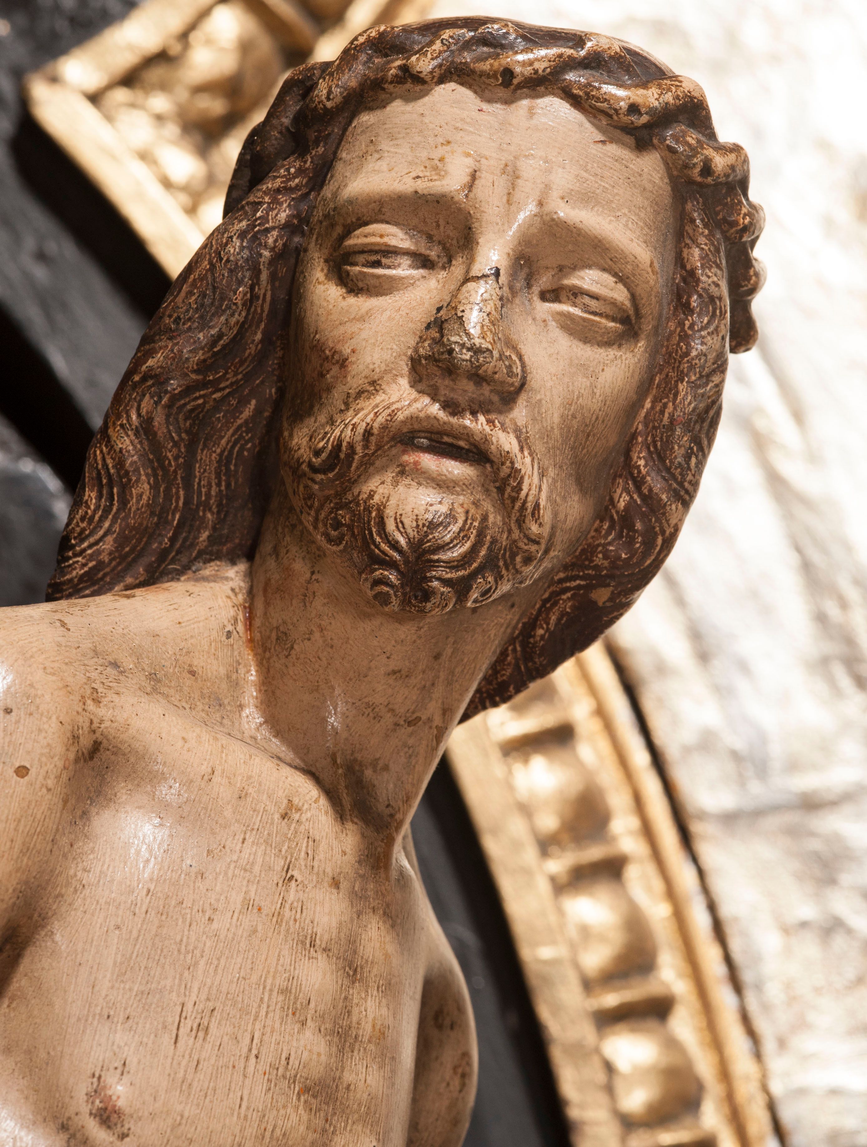 Według tradycji ołtarz miał być przeniesiony do kościoła w Świątnikach Górnych z katedry na Wawelu około 1900 roku. O ile ołtarz w sąsiedniej kaplicy rzeczywiście pochodzi z katedry wawelskiej, gdyż jego formy są identyczne z dwoma innymi ołtarzami z katedry przeniesionymi do kościoła w Porębie Żegoty, o tyle pochodzenie ołtarza Ukrzyżowania jest wciąż niepewne.