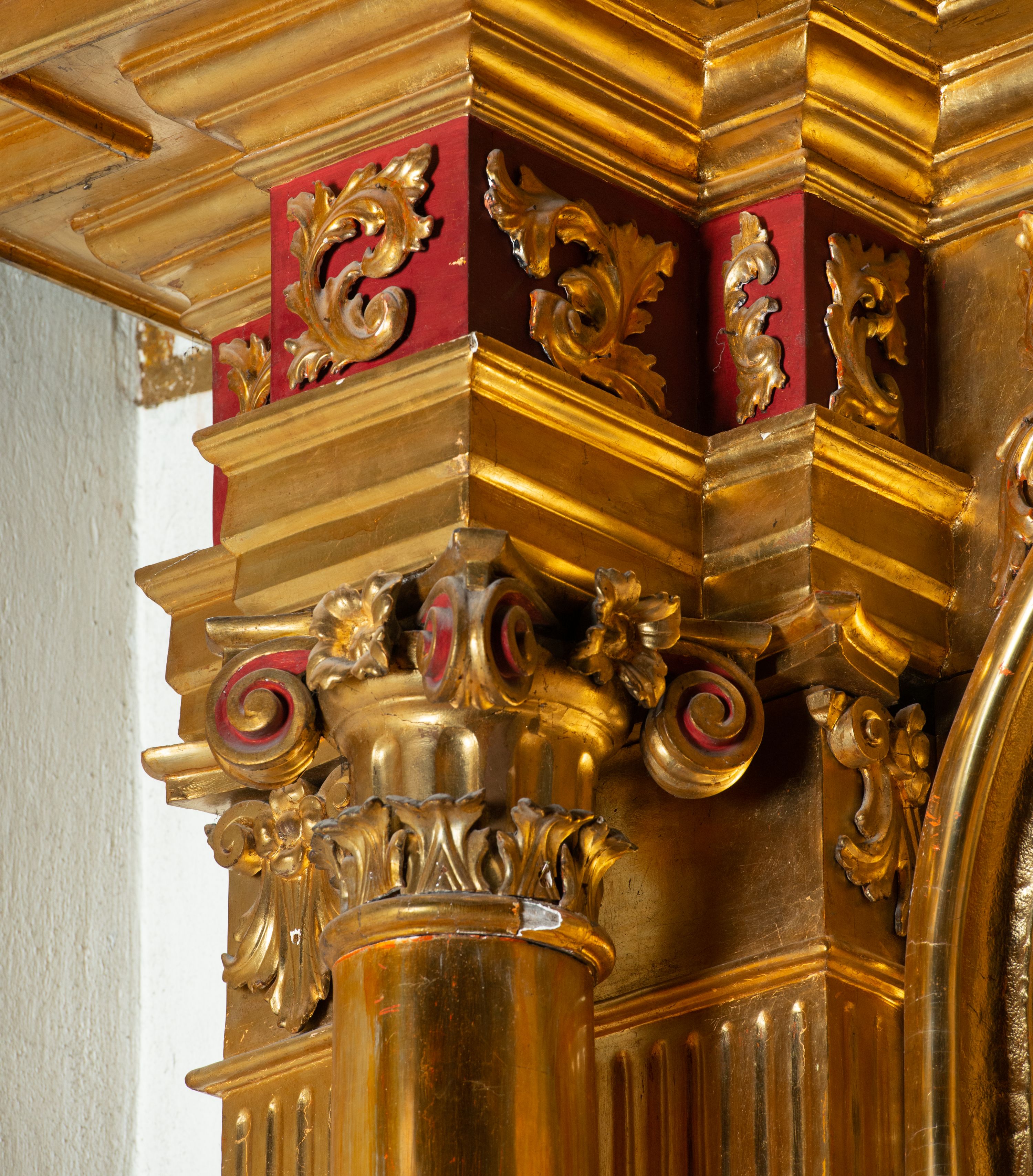 Nastawy ołtarzy bocznych są typowe dla okresu przełomu XVII i XVIII wieku. Mają wyraźnie podkreślone elementy i podziały architektoniczne. Ich lico jest stosunkowo płaskie, przełamane parą kolumn stojącą przed pilastrami. O późniejszym czasie powstania świadczą jednak nietypowe elementy takie, jak ustawione pod kątem cokoły kolumn i fragmenty przerwanego przyczółka. Ornamentyka dekorująca ołtarze, na którą składają się motywy regencyjne (kampanule, wstęga) oraz akant, występowała również w okresie drugiej ćwierci XVIII wieku.