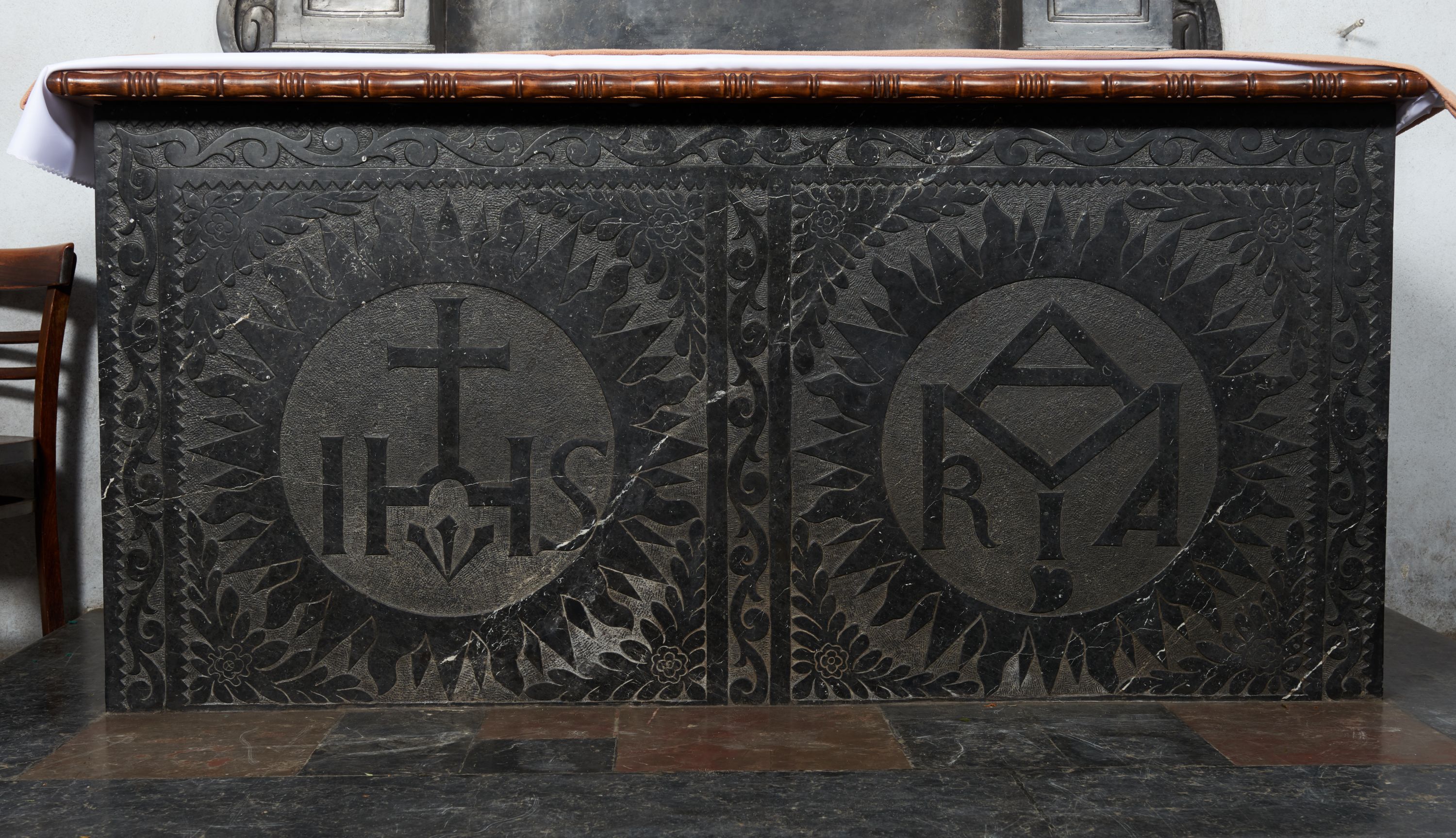 Ołtarz reprezentuje typowe dla ośrodka kamieniarskiego rozwiązania formalne. Dębniccy kamieniarze powielali te same motywy w różnych dziełach. Identyczne nastawy z dwiema kolumnami podtrzymującymi belkowanie z przerwanym przyczółkiem wykonano do kościołów Karmelitów bosych w Czernej już w 1657 roku i Klarysek w Starym Sączu w 1661 roku. Zbliżone formy otrzymały również pomniki nagrobne, np. Stanisława Krajewskiego w kościele Paulinów na Jasnej Górze (Michał Poman, 1695). Również sposób opracowania antepedium jest wynikiem długiego trwania tych samych rozwiązań i techniki wykonania. Zbliżone antependia stały się specjalnością warsztatów dębnickich. Motyw promienistej glorii z literami IHS już wcześniej wykorzystano w antependiach dwóch ołtarzy św. Jana od Krzyża i Ukrzyżowanego w kościele w Czernej (1657-1688) oraz w ołtarzu głównym w kościele w Paczółtowicach (1663).