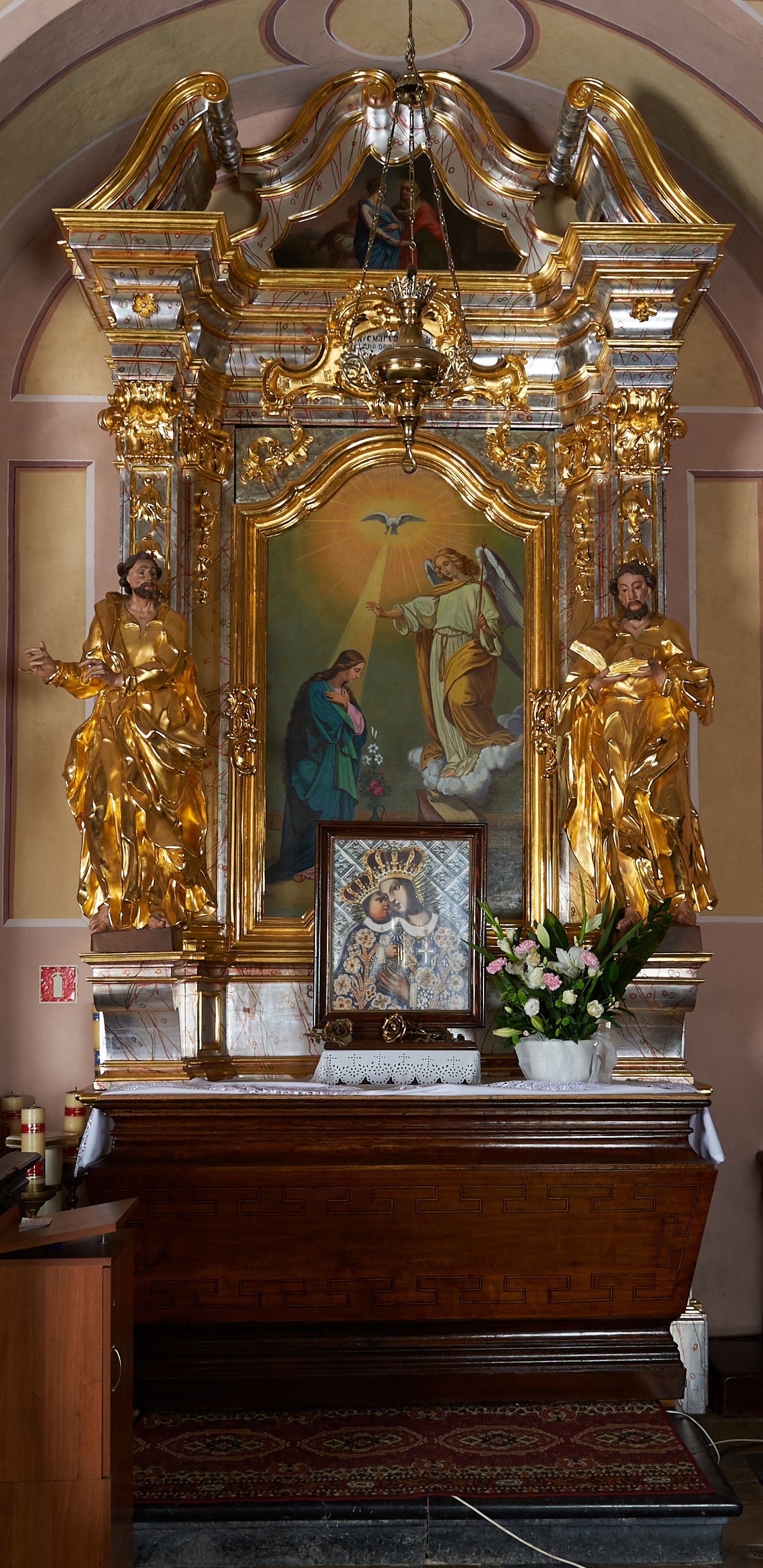 Ołtarz boczny powstał w nieznanym warsztacie rzeźbiarskim w trzeciej ćwierci XVIII wieku w stylu rokokowym. W jego polu głównym umieszczono wizerunek Zwiastowania Najświętszej Marii Pannie, w zwieńczeniu obraz Nawiedzenia, a po bokach rzeźby dwóch nieznanych świętych.