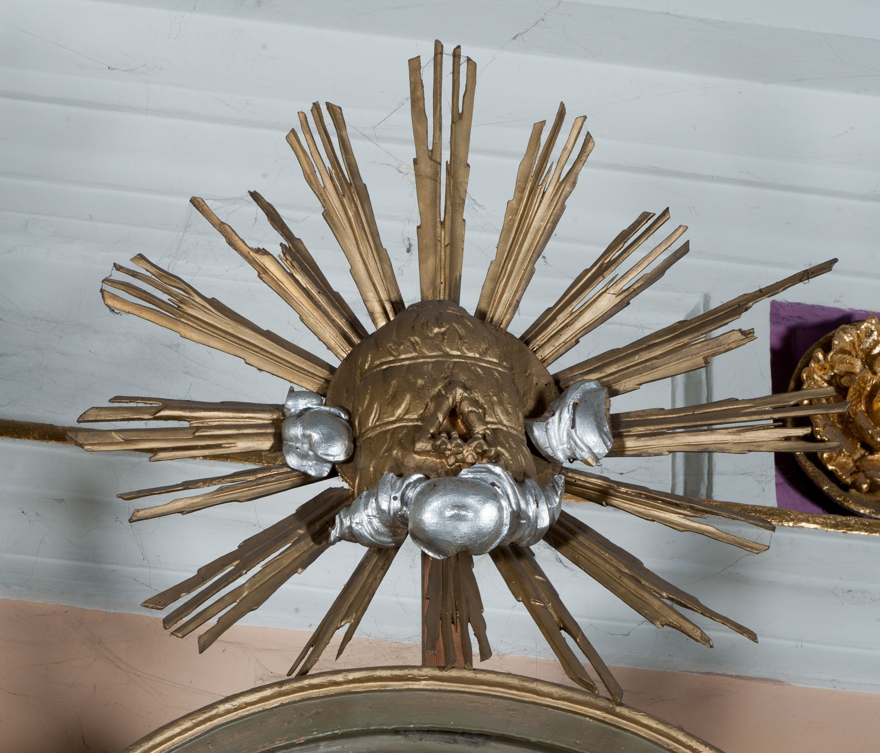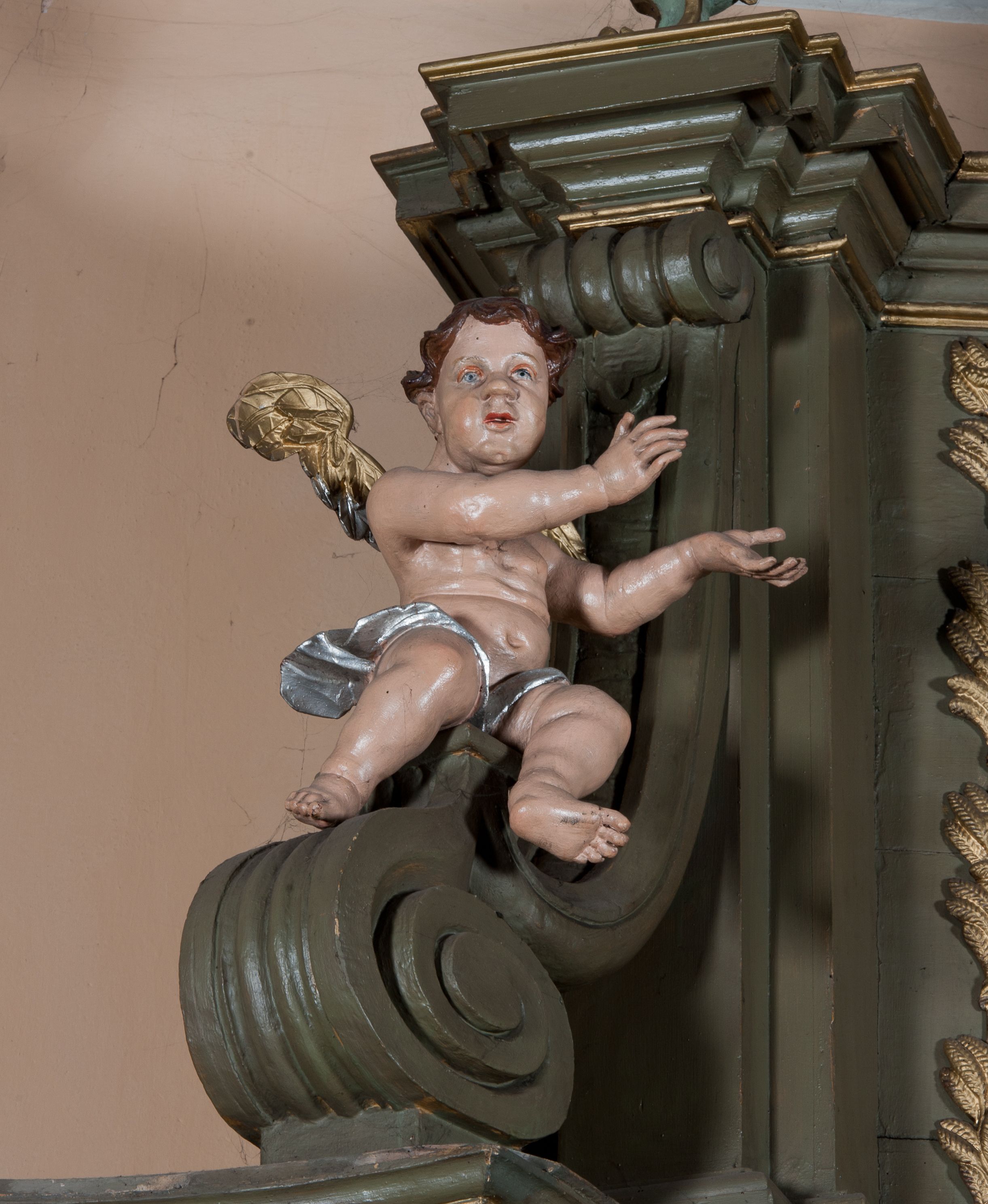 Dobry, zabrudzenia w partii polichromii i złoceń.