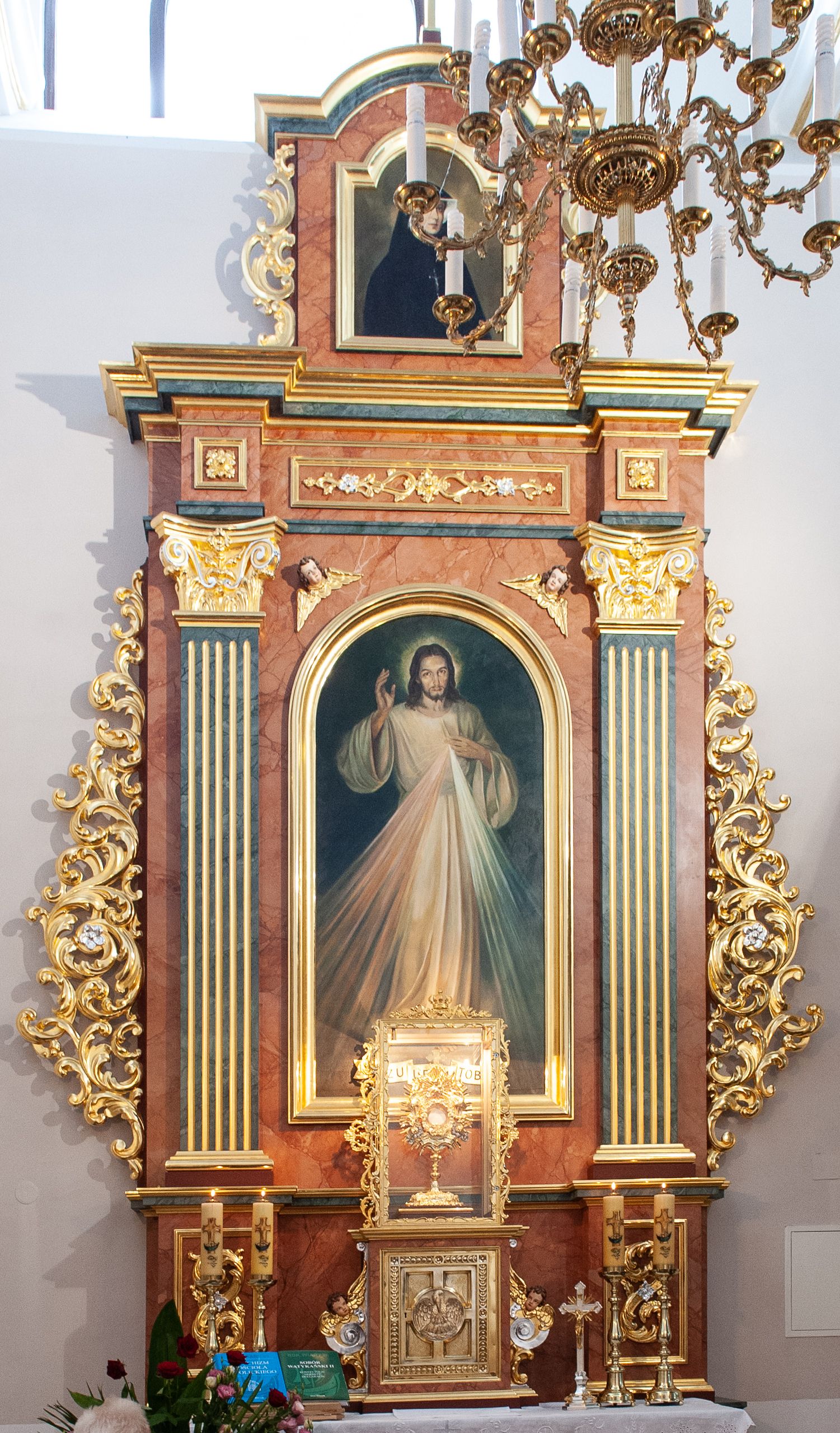 Ołtarz powstał w XIX wieku, w pole główne wstawiono wizerunek „Jezu Ufam Tobie”, a w zwieńczenie obraz św. Faustyny Kowalskiej; oba z pierwszej połowy XX wieku.