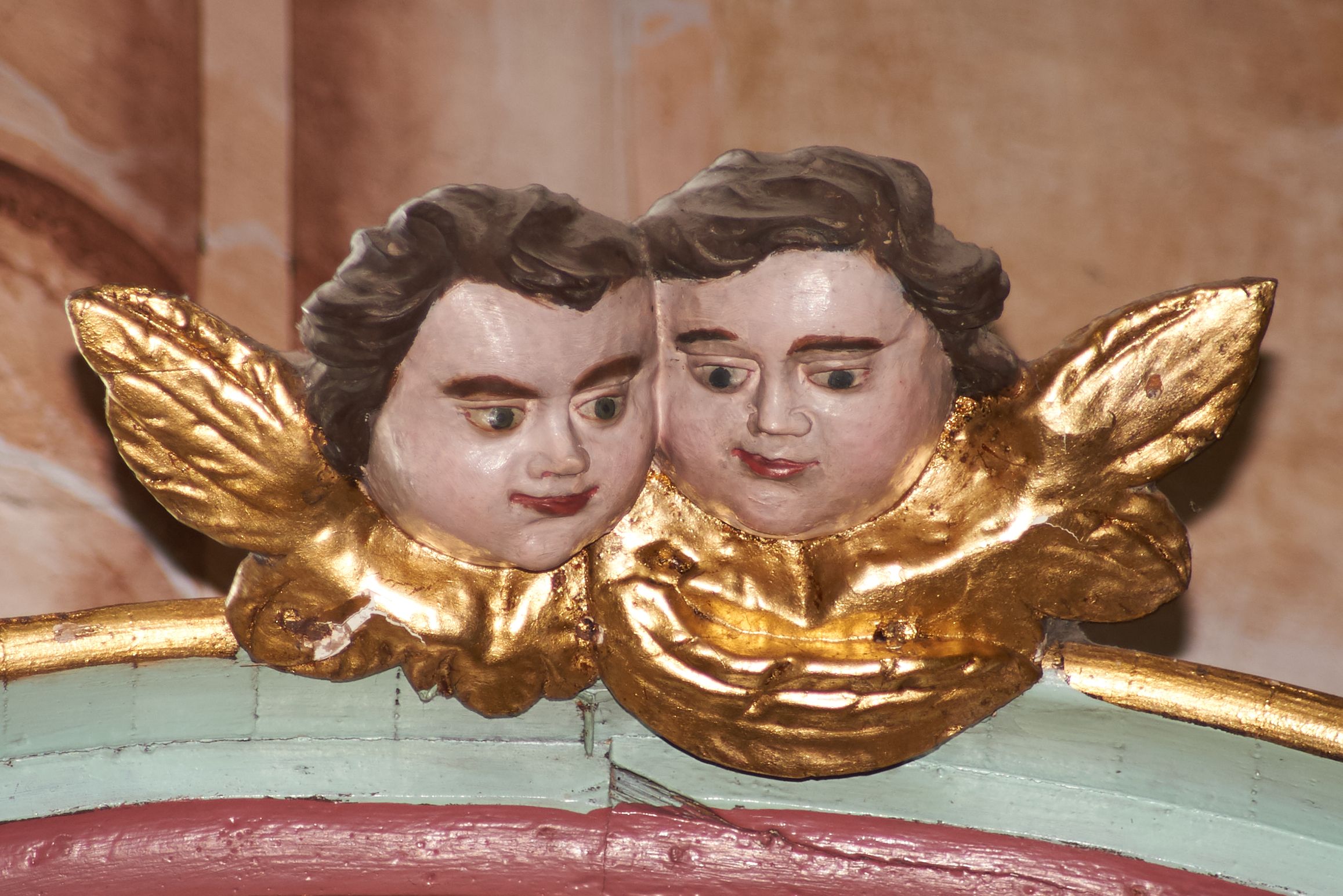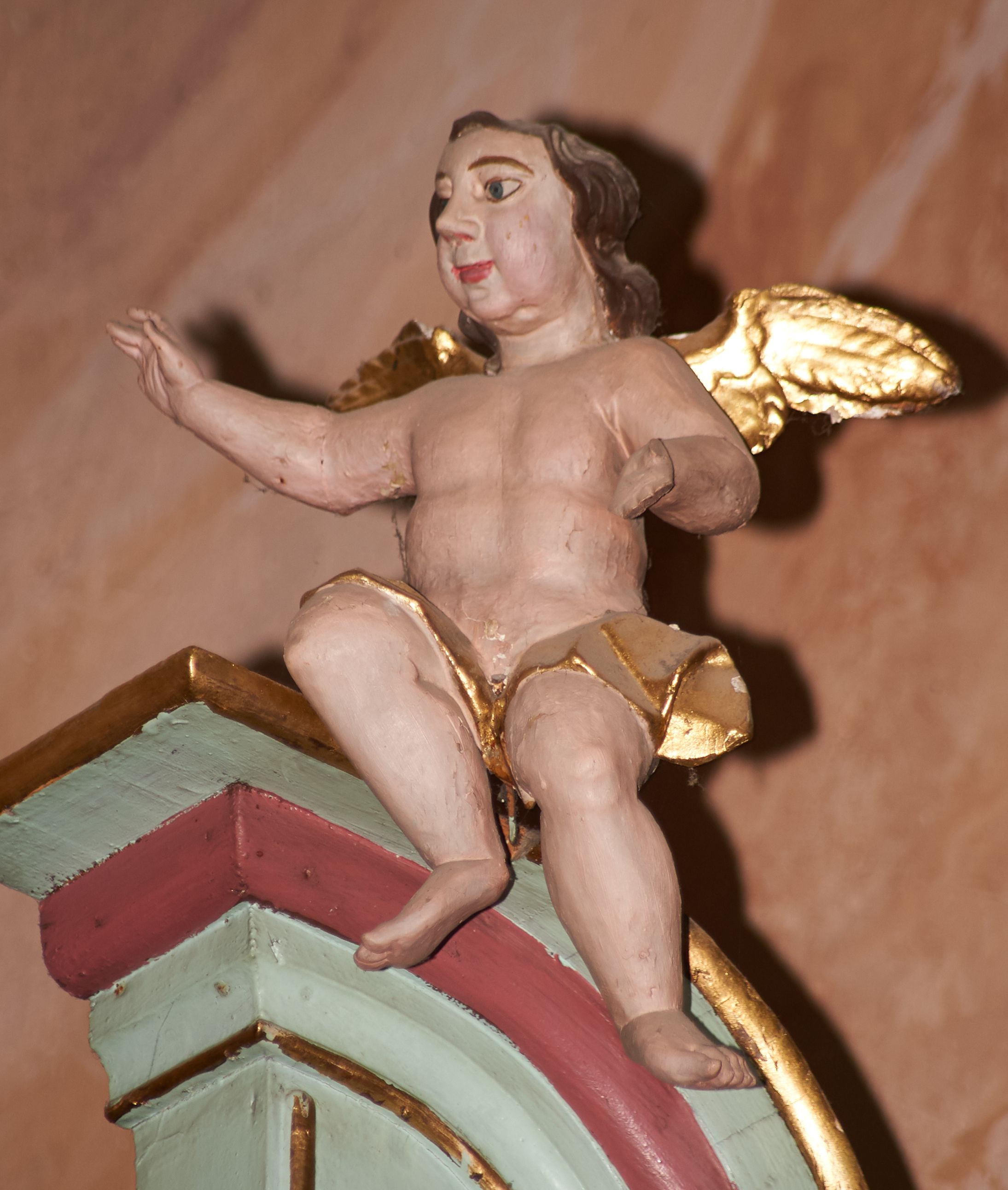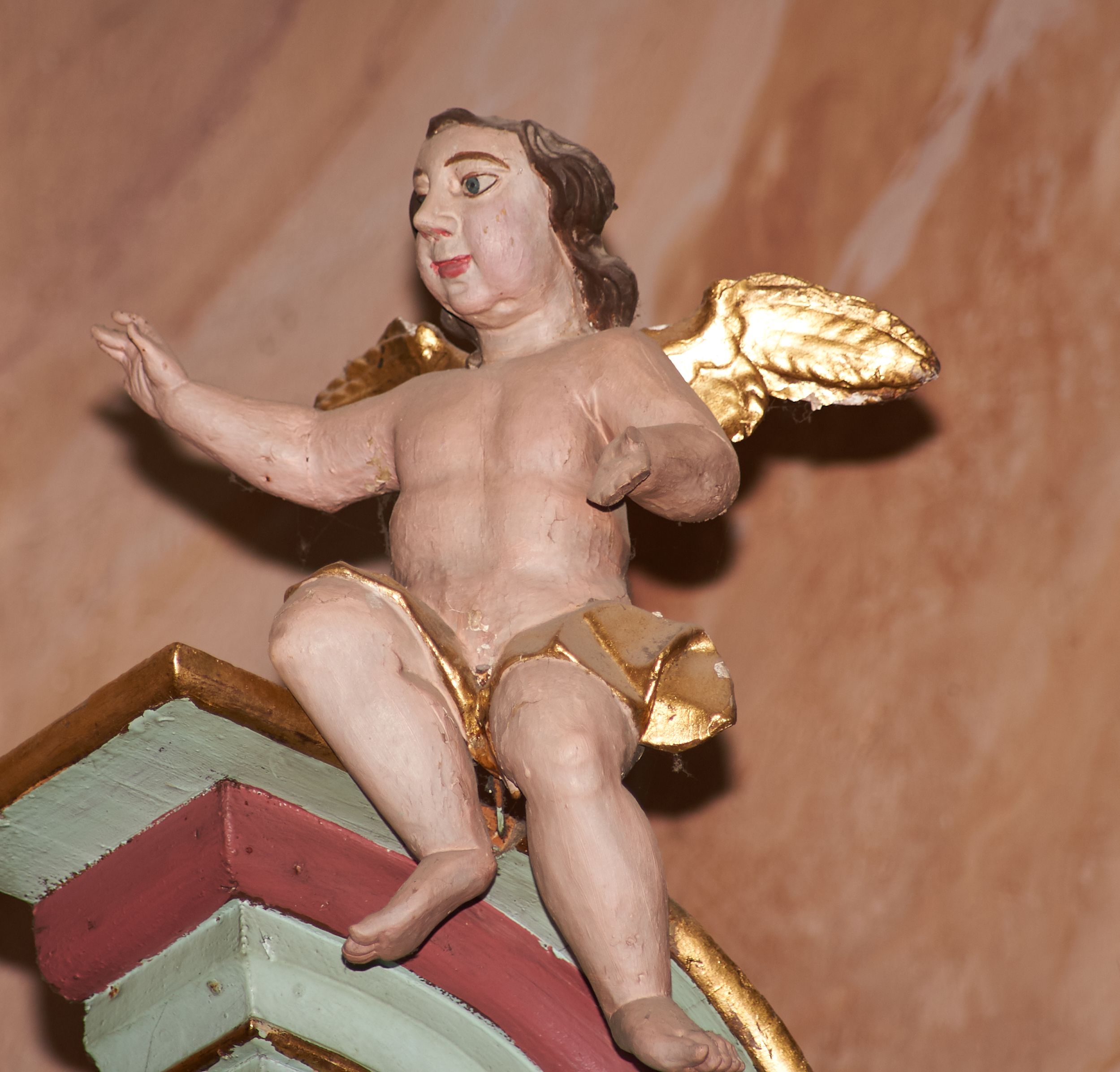 Przetarcia polichromii struktury, zabrudzenia.