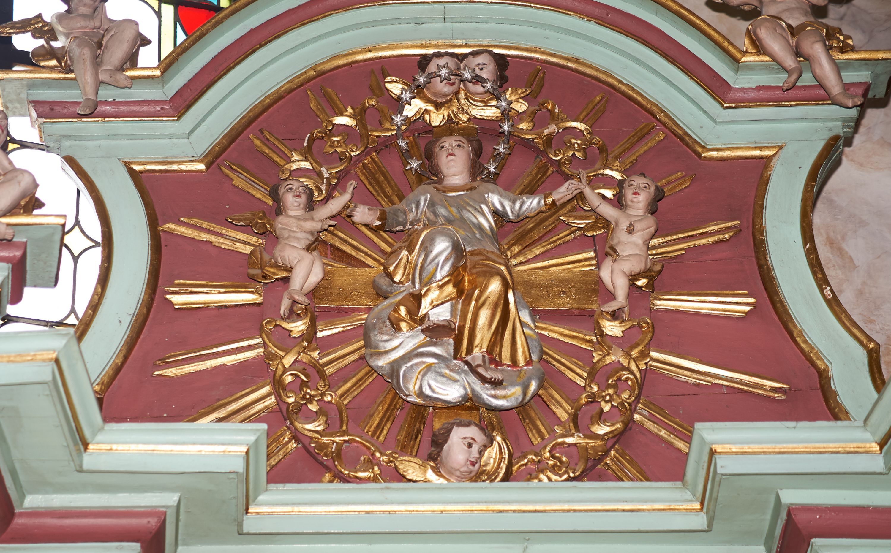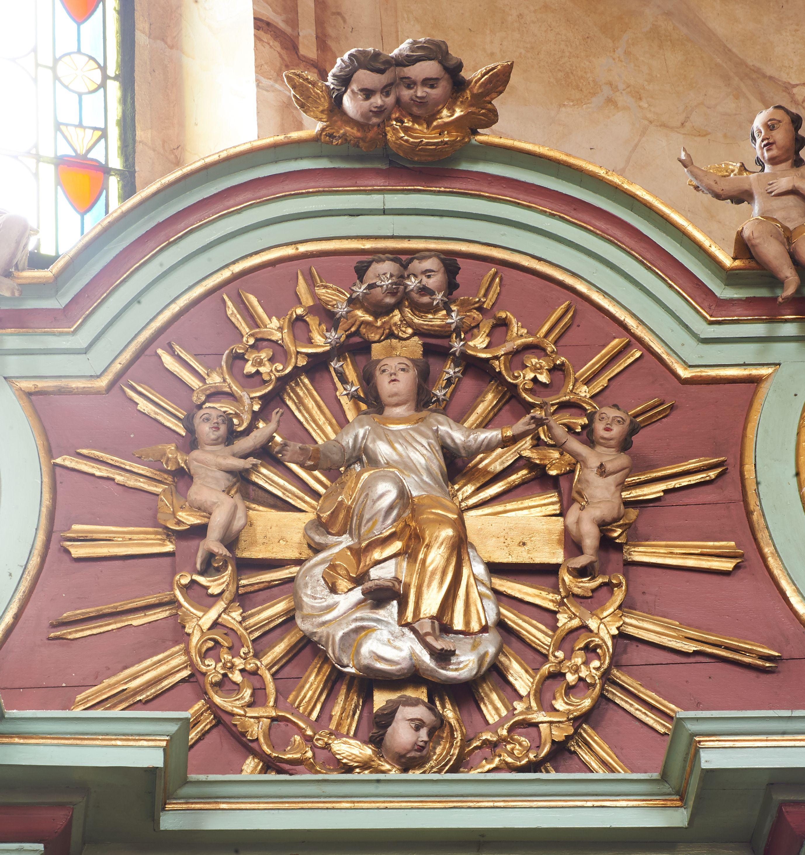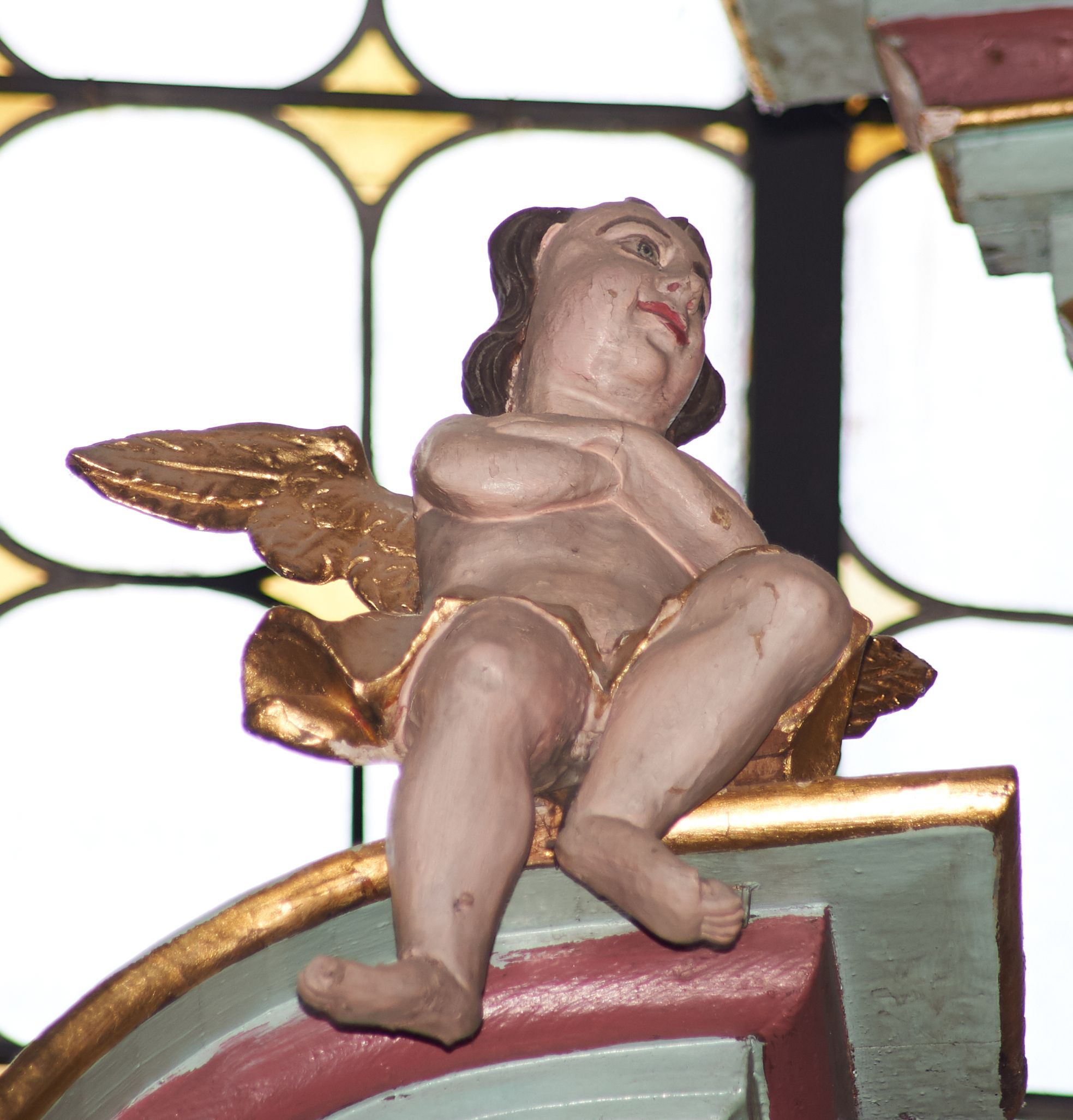 Przetarcia polichromii struktury, zabrudzenia.