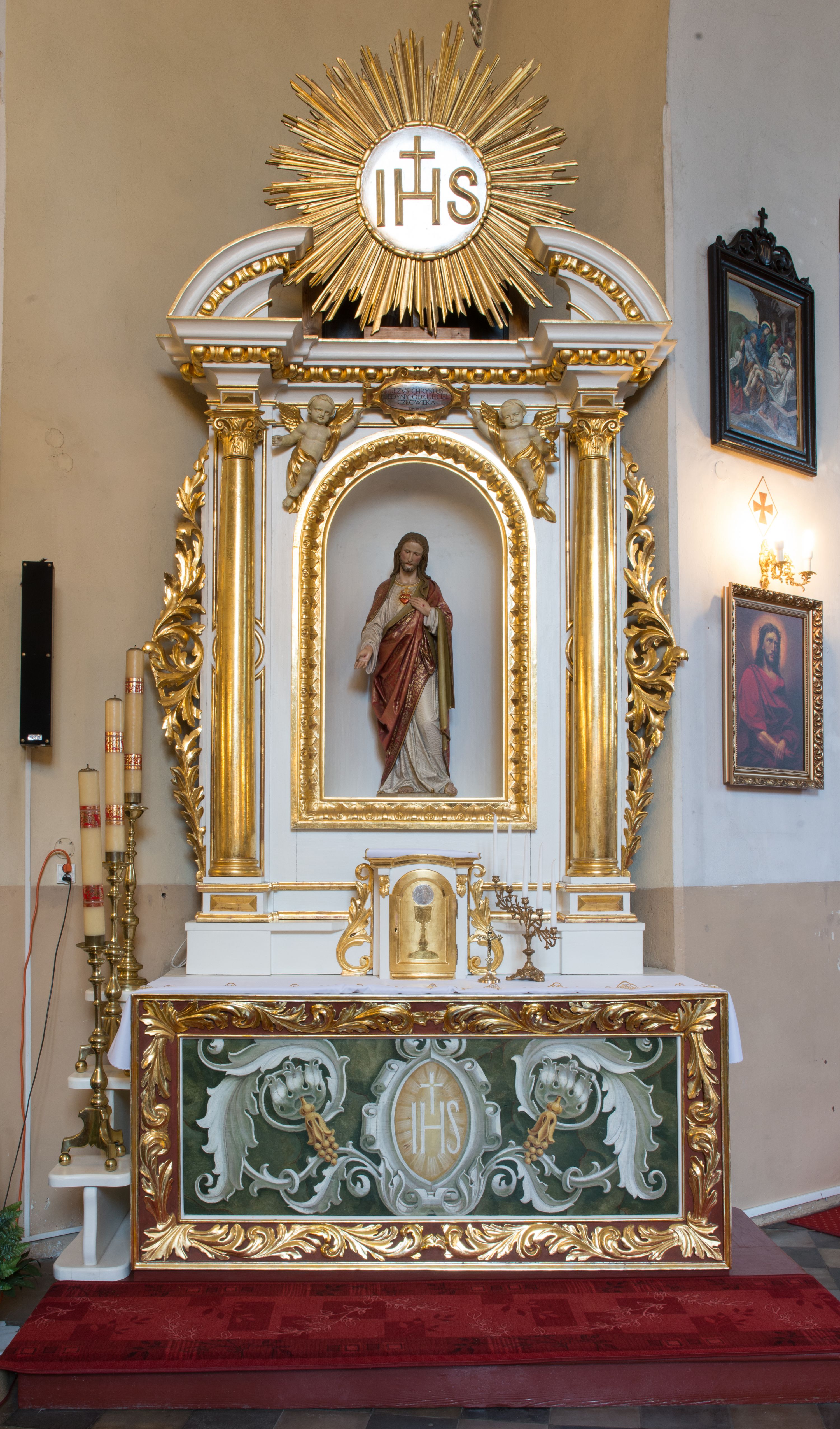 Ołtarz sprawiony do kościoła w 1886 roku. Odnotowany w inwentarzu kościelnym z 1891 roku.