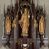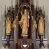 Struktura ołtarza i tabernakulum politurowane w kolorze ciemnobrązowym, ornamentyka i detale architektoniczne złocone.