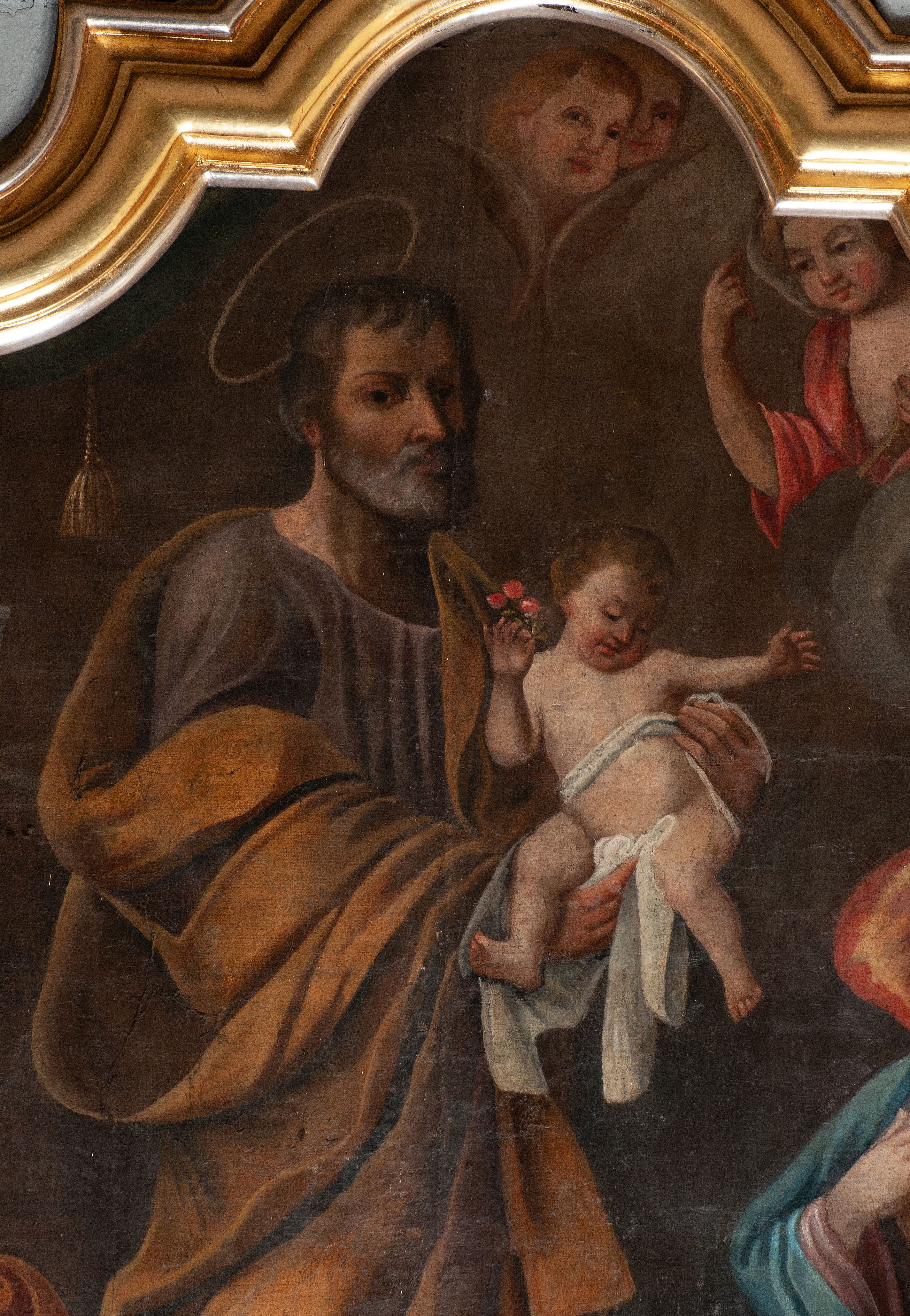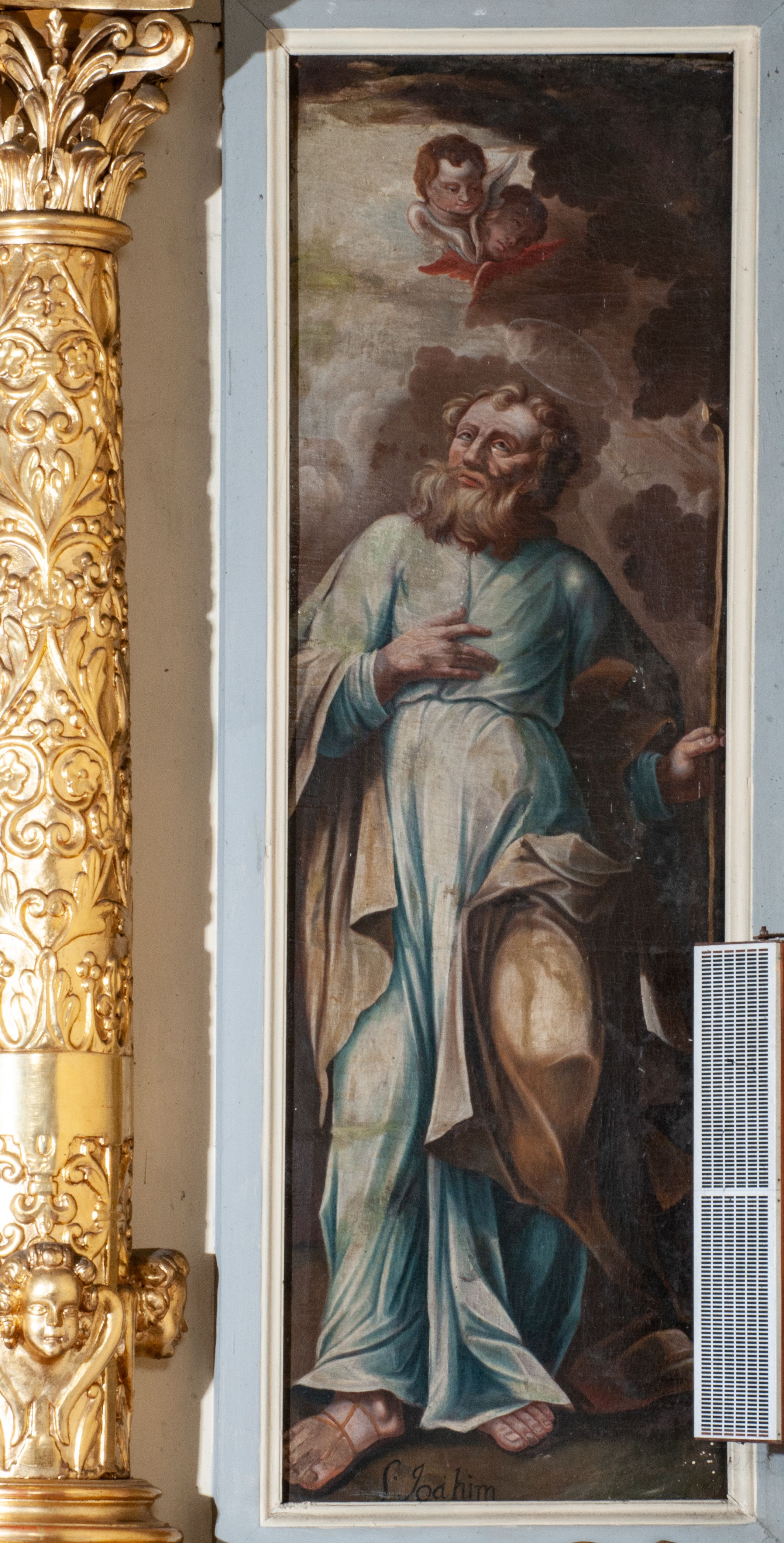 Ołtarz został wykonany w 1893 roku, zestawiono go z fragmentów późnorenesansowych i barokowych oraz późnobarokowego obrazu Matki Boskiej Szkaplerznej i obrazów przedstawiających św. Józefa, św. Annę i św. Joachima. Jest przykładem dzieła eklektycznego – łączącego w sobie fragmenty należące do różnych epok.