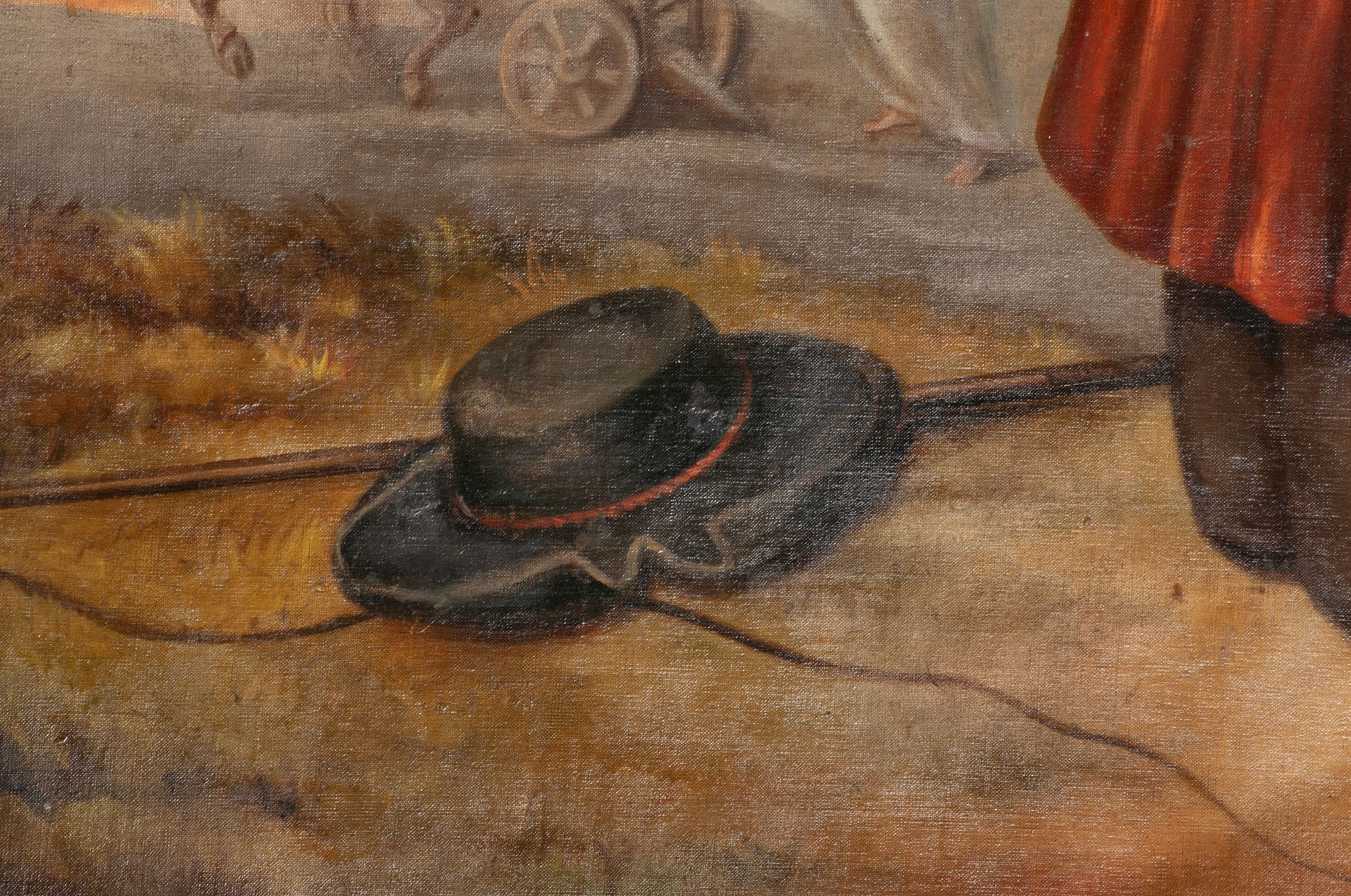 Ołtarz został wykonany w 1893 roku, zestawiono go z fragmentów późnorenesansowych i barokowych oraz późnobarokowego obrazu Matki Boskiej Szkaplerznej. Wykorzystuje schemat kompozycyjny gotyckiego ołtarza w przetworzonej przez późniejsze wieki formie. Nawiązuje do struktury otwartego tryptyku, w którym jednak unieruchomione skrzydła mieszczące obrazy zdają się być niefortunnie dodane do nowożytnego schematu jednoosiowej nastawy. Schemat ten zakłada utworzenie nastawy jednokondygnacyjnej, z obrazem w polu środkowym pierwszej kondygnacji i mniejszym w zwieńczeniu; ołtarz flankują kolumny. Sumując powyższe informacje, nastawę można określić jako eklektyczną, łączącą w sobie cechy sztuki różnych epok w nową całość. Strukturę wypełniono licznymi dekoracjami i dużą ilością złoceń.