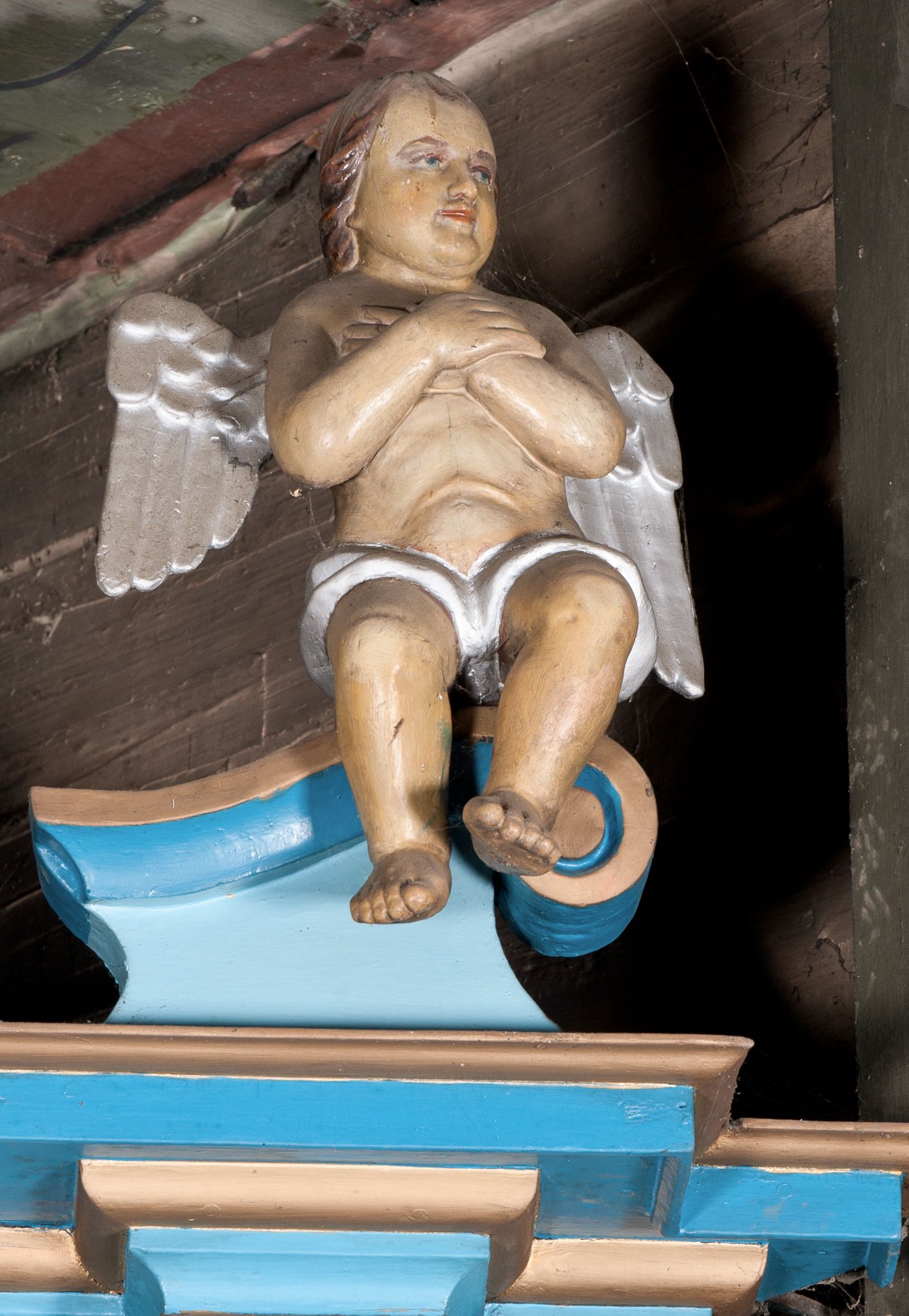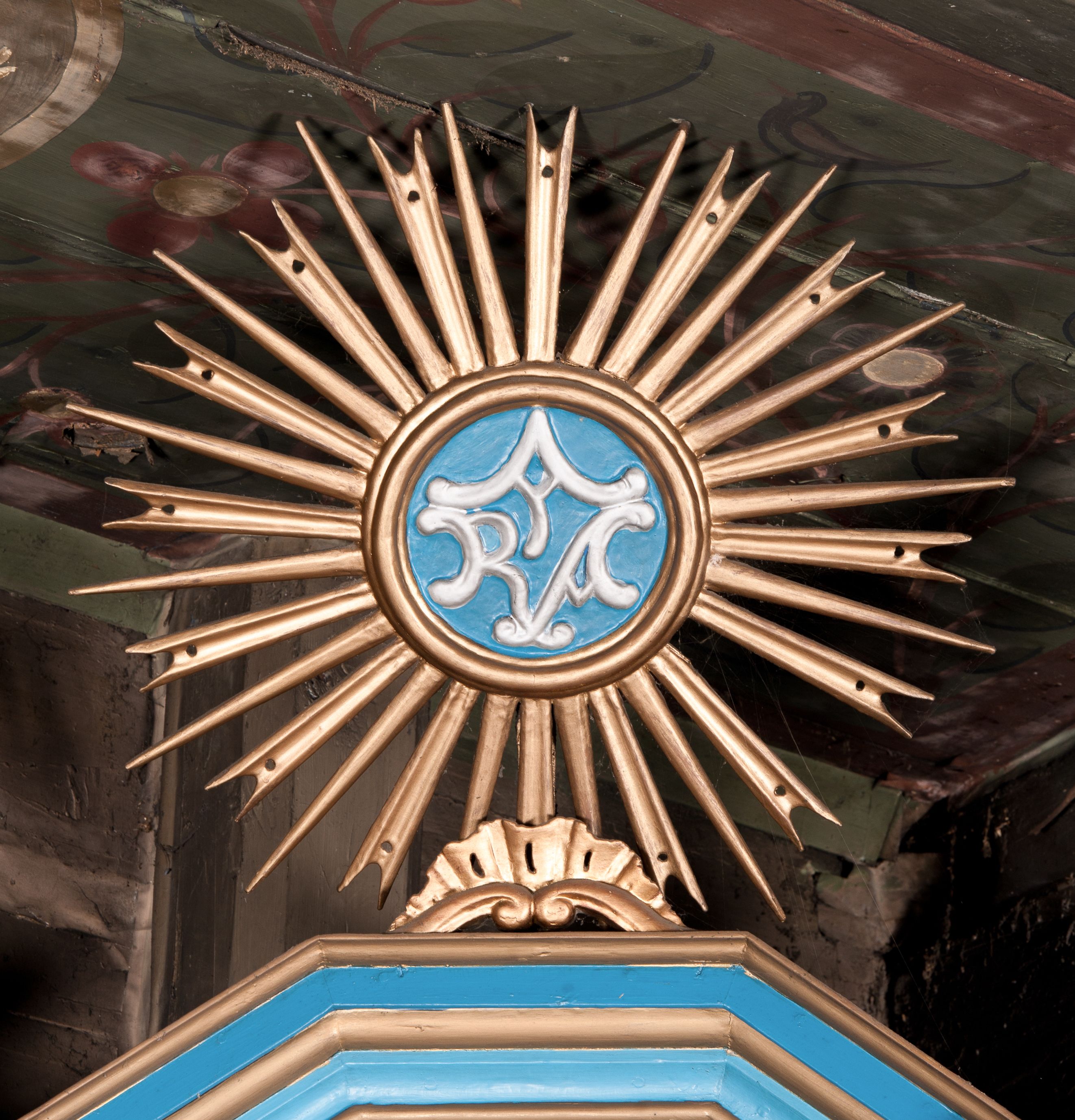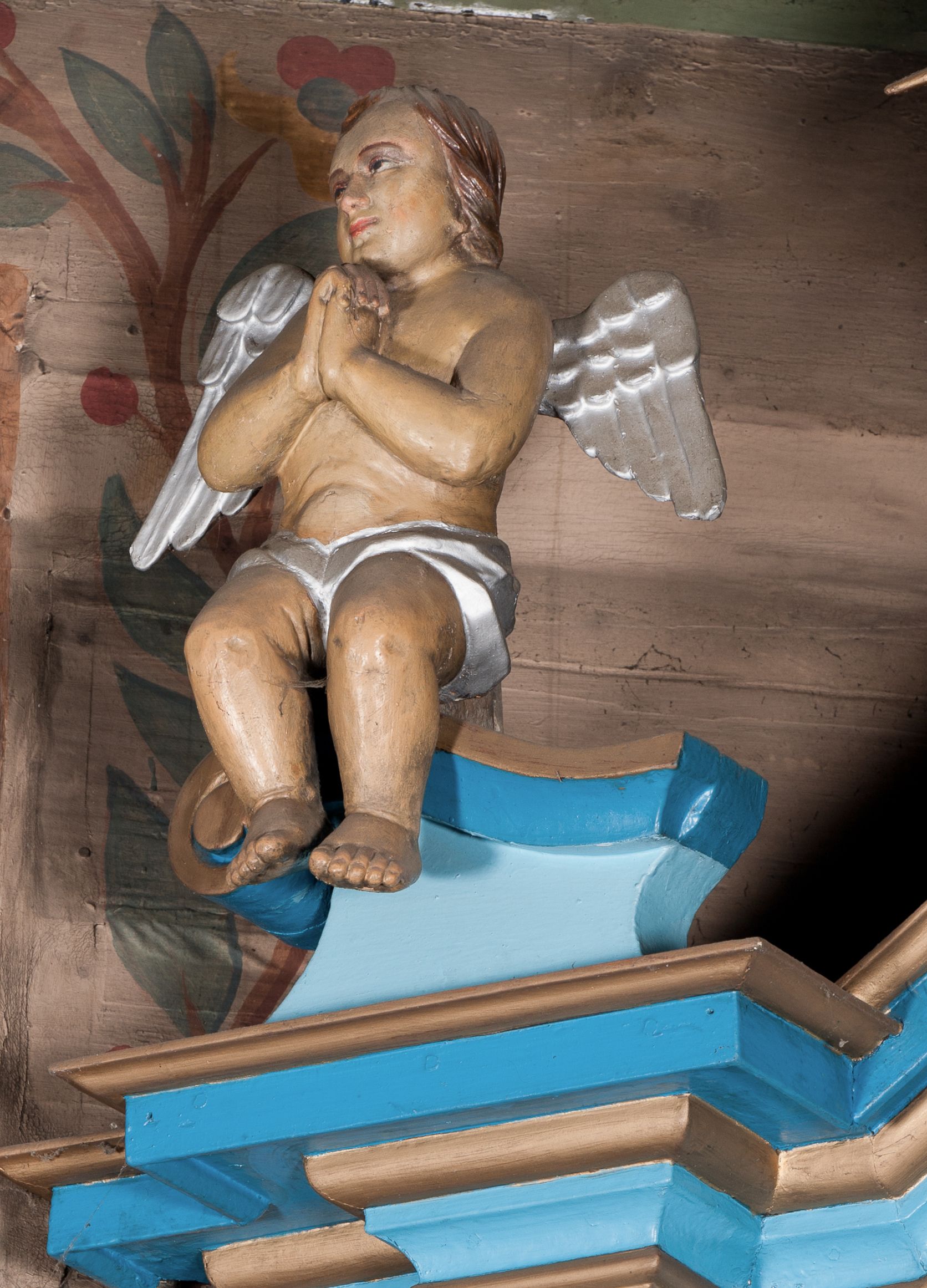 Dobry, przetarcia polichromii i złoceń, zabrudzenia.