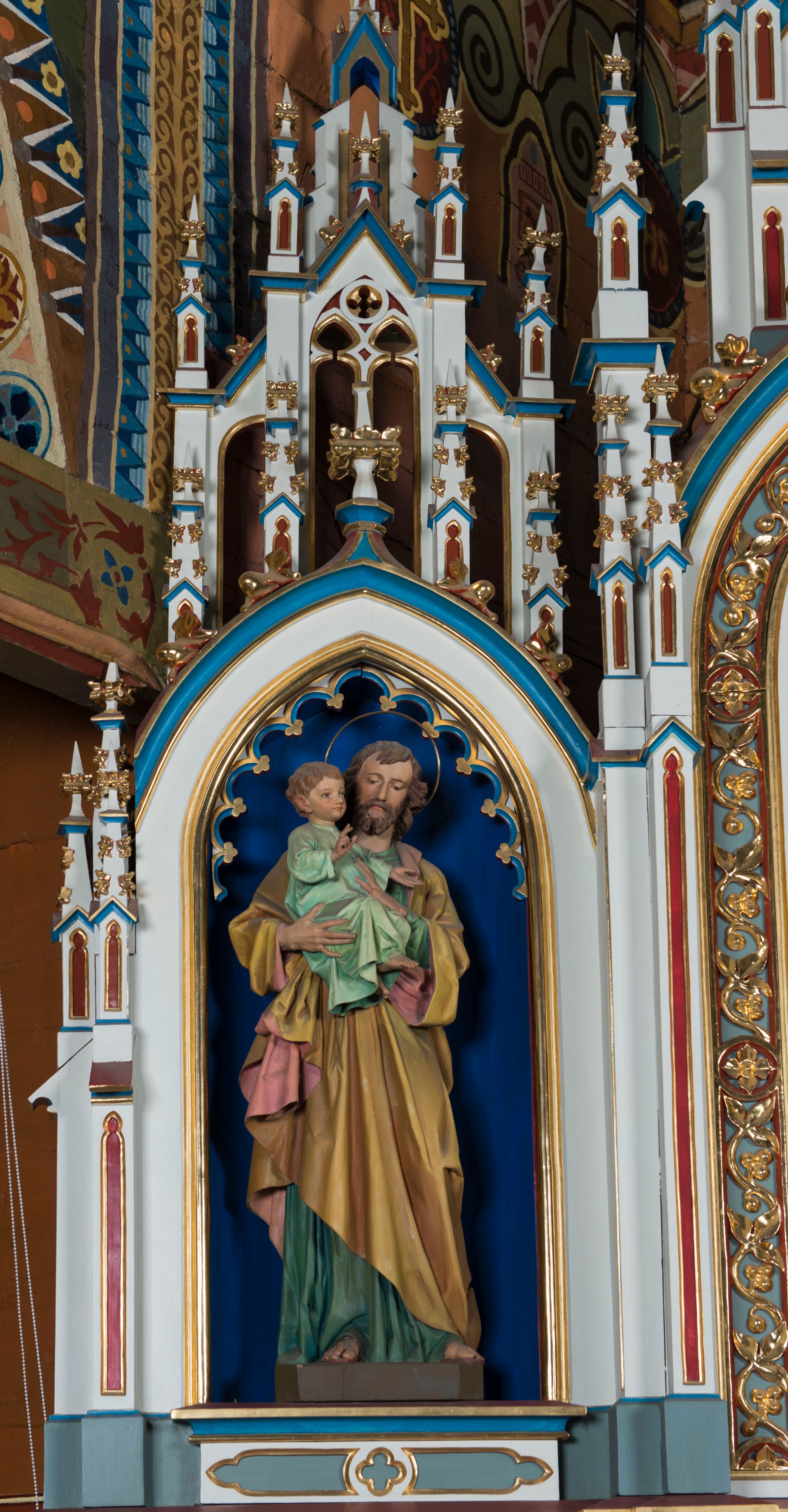 Nastawa ołtarza bocznego w Jawiszowicach prezentuje ciekawy przykład popularnych na przełomie XIX i XX wieku inspirowanych sztuką gotycką retabulów ołtarzowych. Architektoniczne struktury były tworzone w oparciu o ogólnodostępne wzorniki, które wykorzystywały lokalne warsztaty snycersko-rzemieślnicze, czego przykład stanowi chociażby ołtarz główny w kościele parafialnym pw. Świętych Apostołów Szymona i Judy Tadeusza w Kozach z 1901 roku, wykonany przez miejscowego rzeźbiarza Władysława Druciaka. Na uwagę zasługuje fakt wykorzystania w nastawie obrazów o dobrej jakości artystycznej oraz figur św. Józefa, św. Antoniego i św. Franciszka z Asyżu wykonanych w masie gipsowej, sprowadzonych zapewne z Bielska i naśladujących bardzo popularne rzeźby tyrolskie.