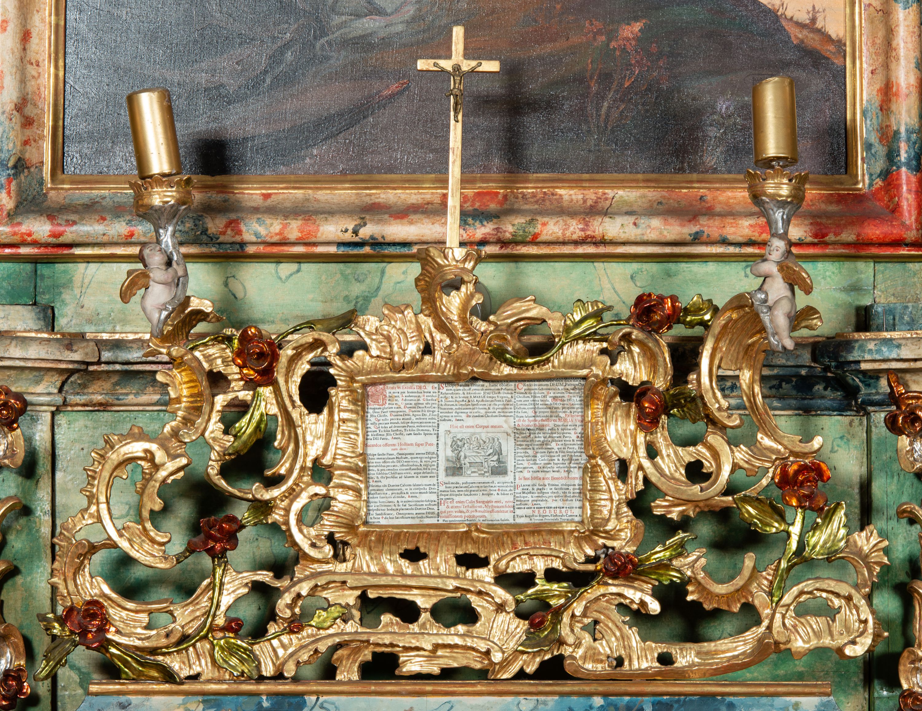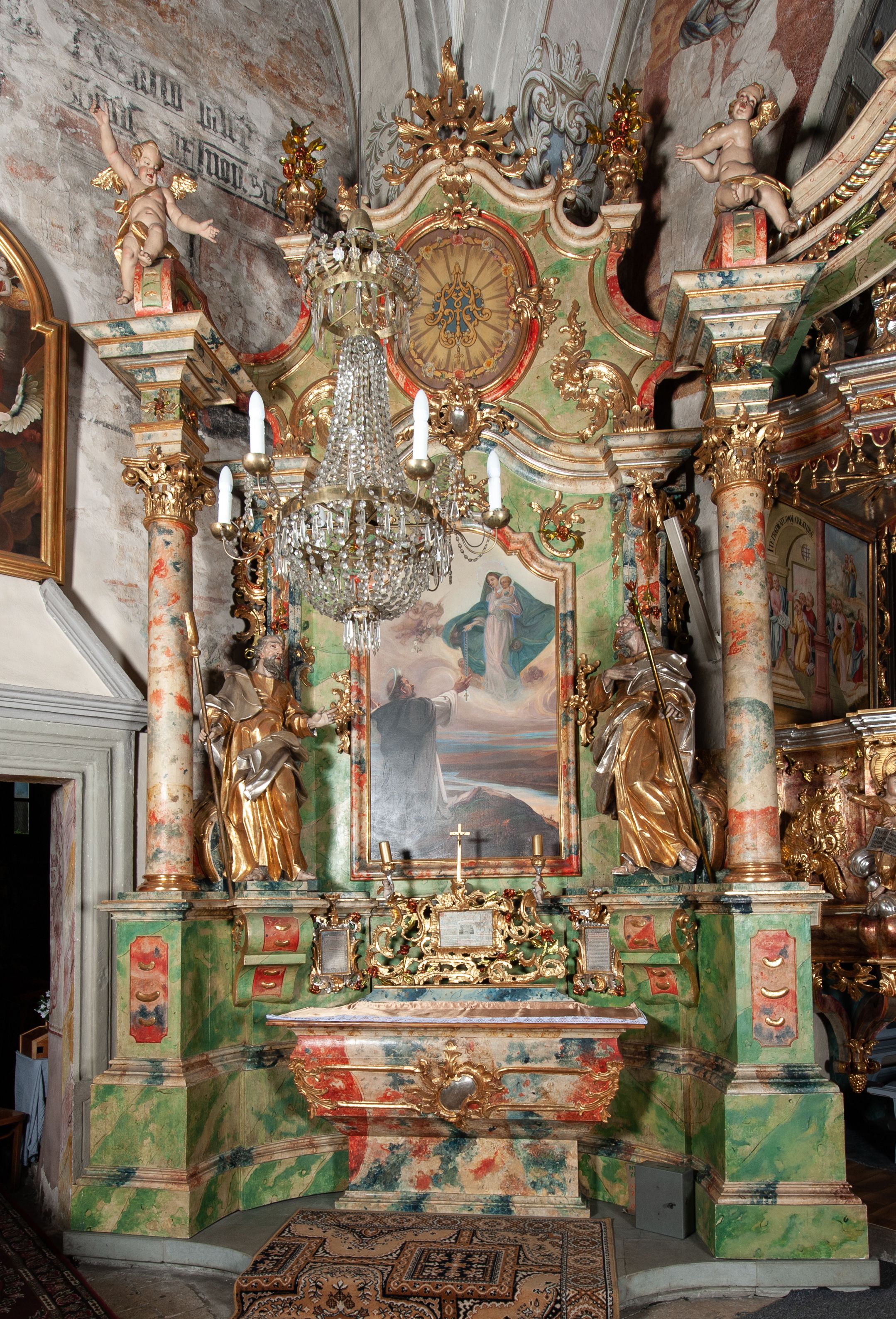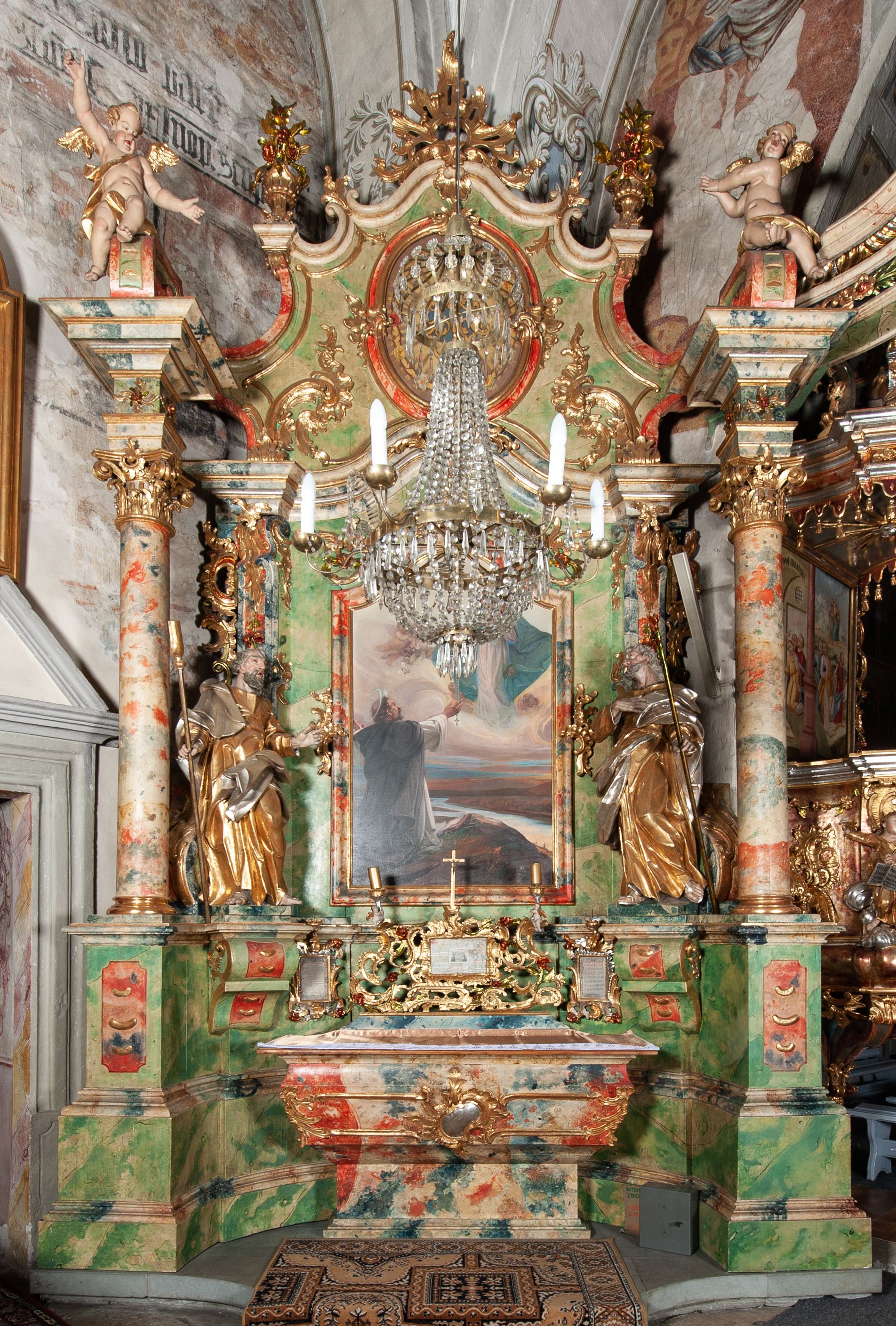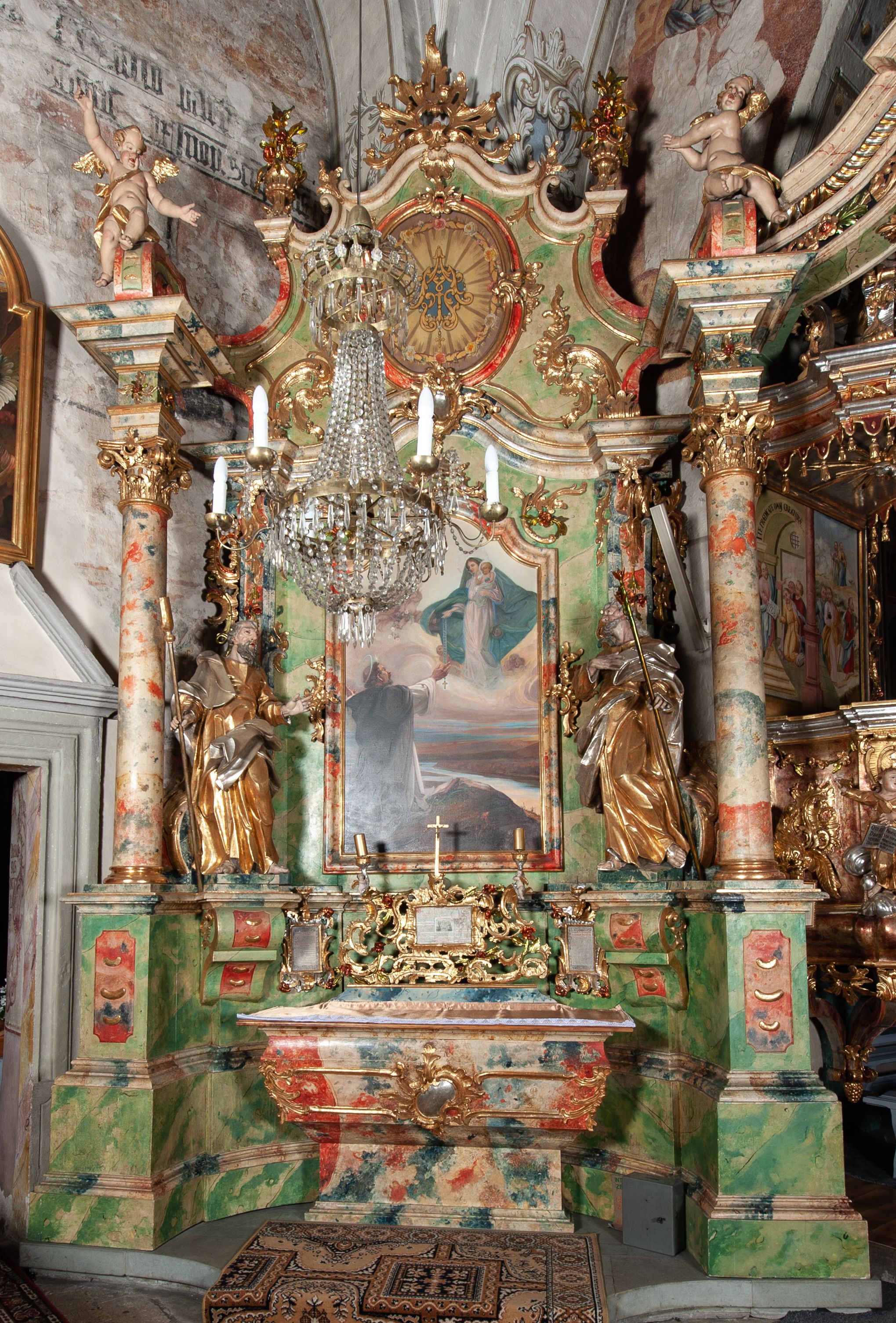Ołtarz ufundowany do kościoła w Niedzicy, pierwotnie z obrazem św. Mikołaja, zastąpionym w XX wieku obrazem Matki Boskiej Różańcowej.