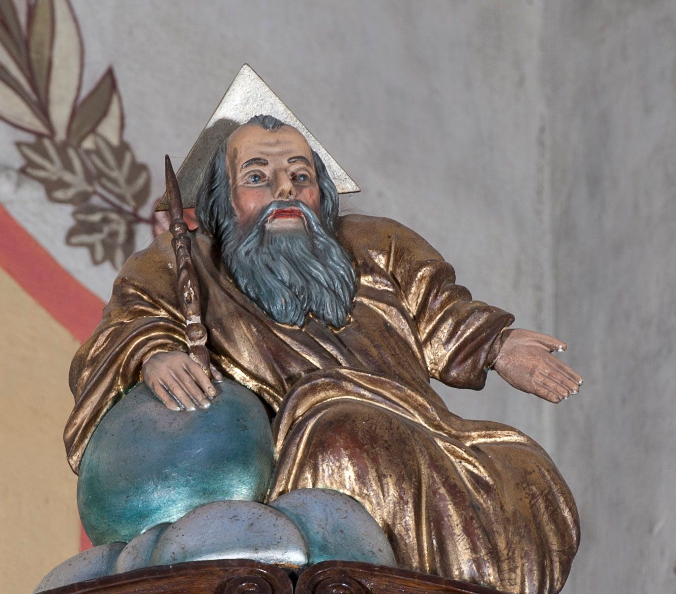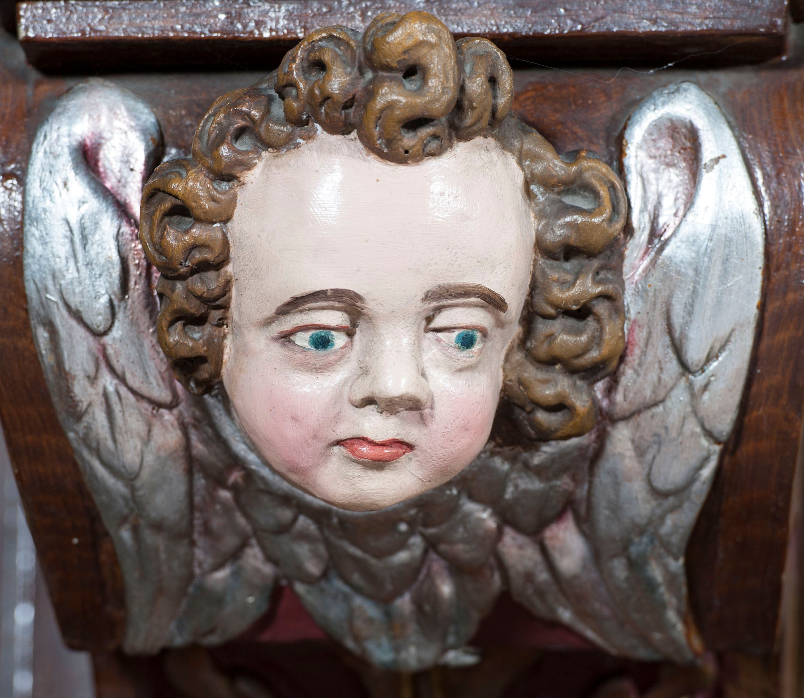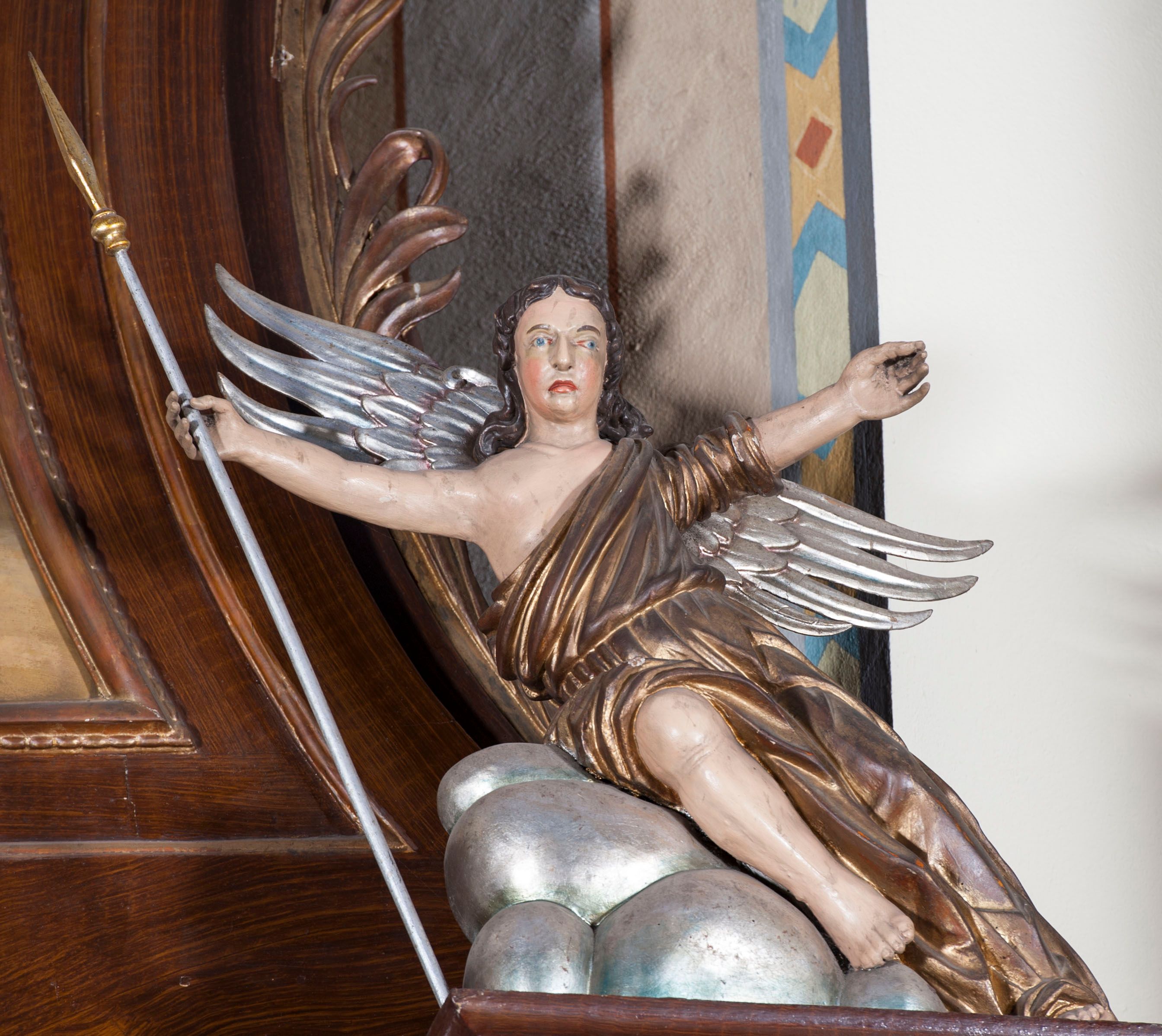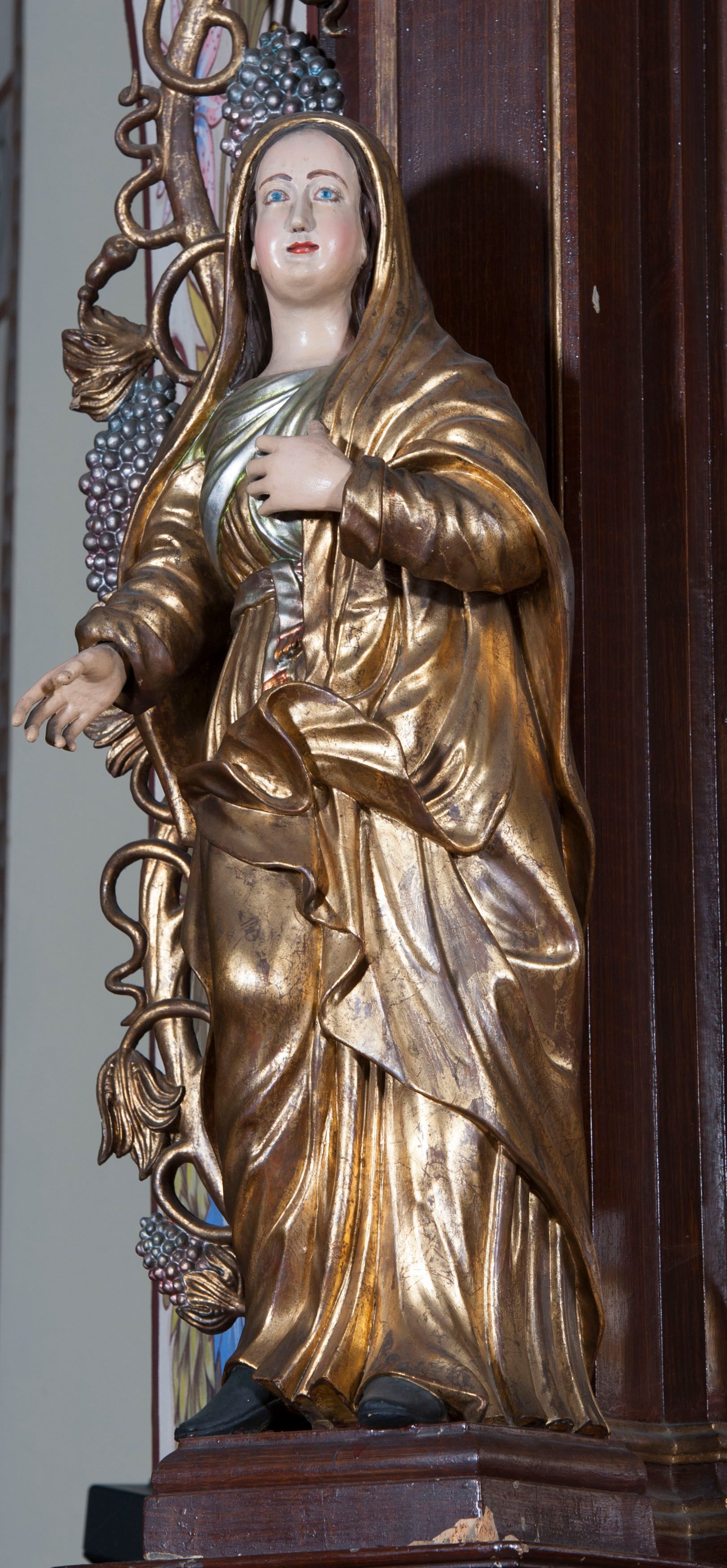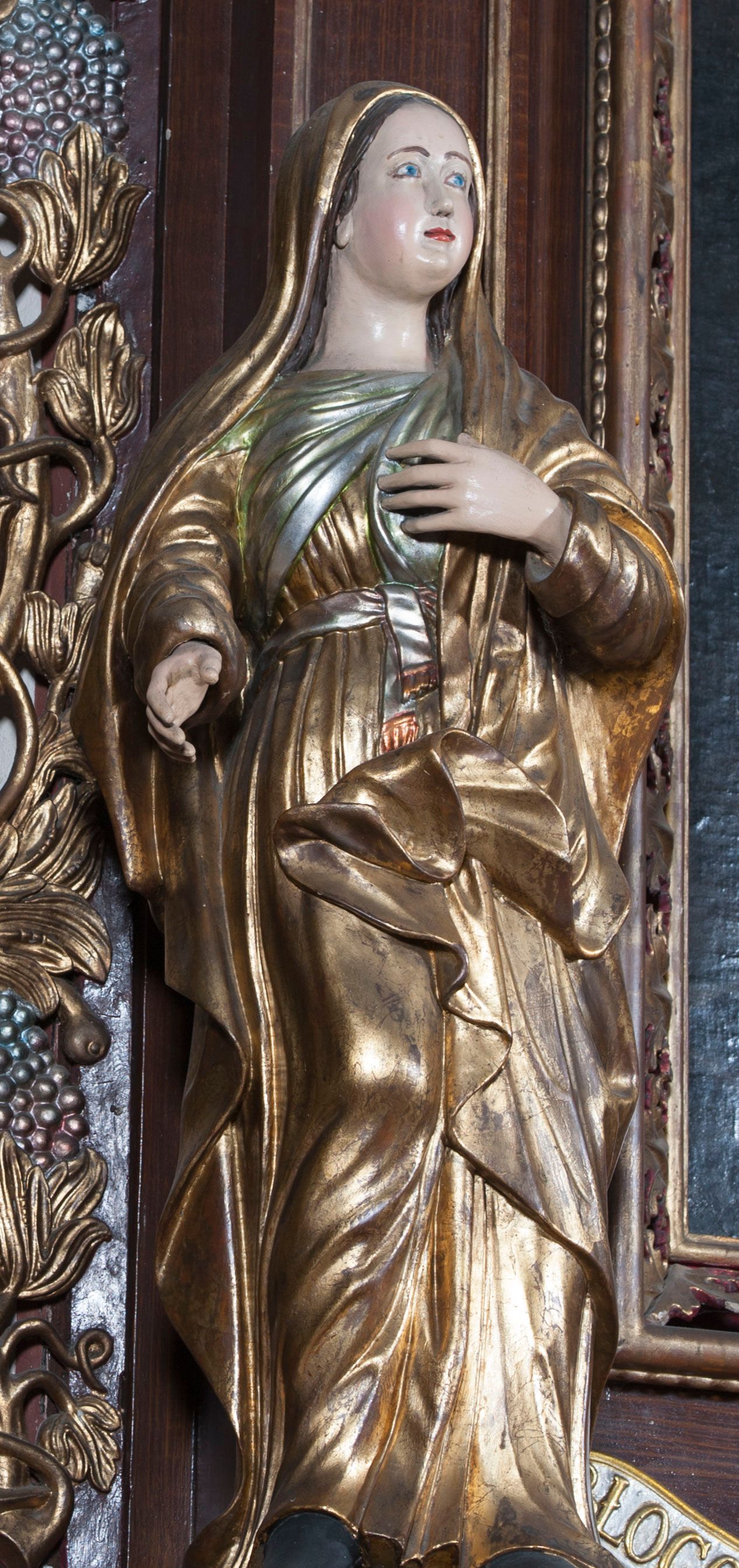 Ołtarz sprawiony w miejsce starszego, z wykorzystaniem starszego obrazu ołtarzowego.
