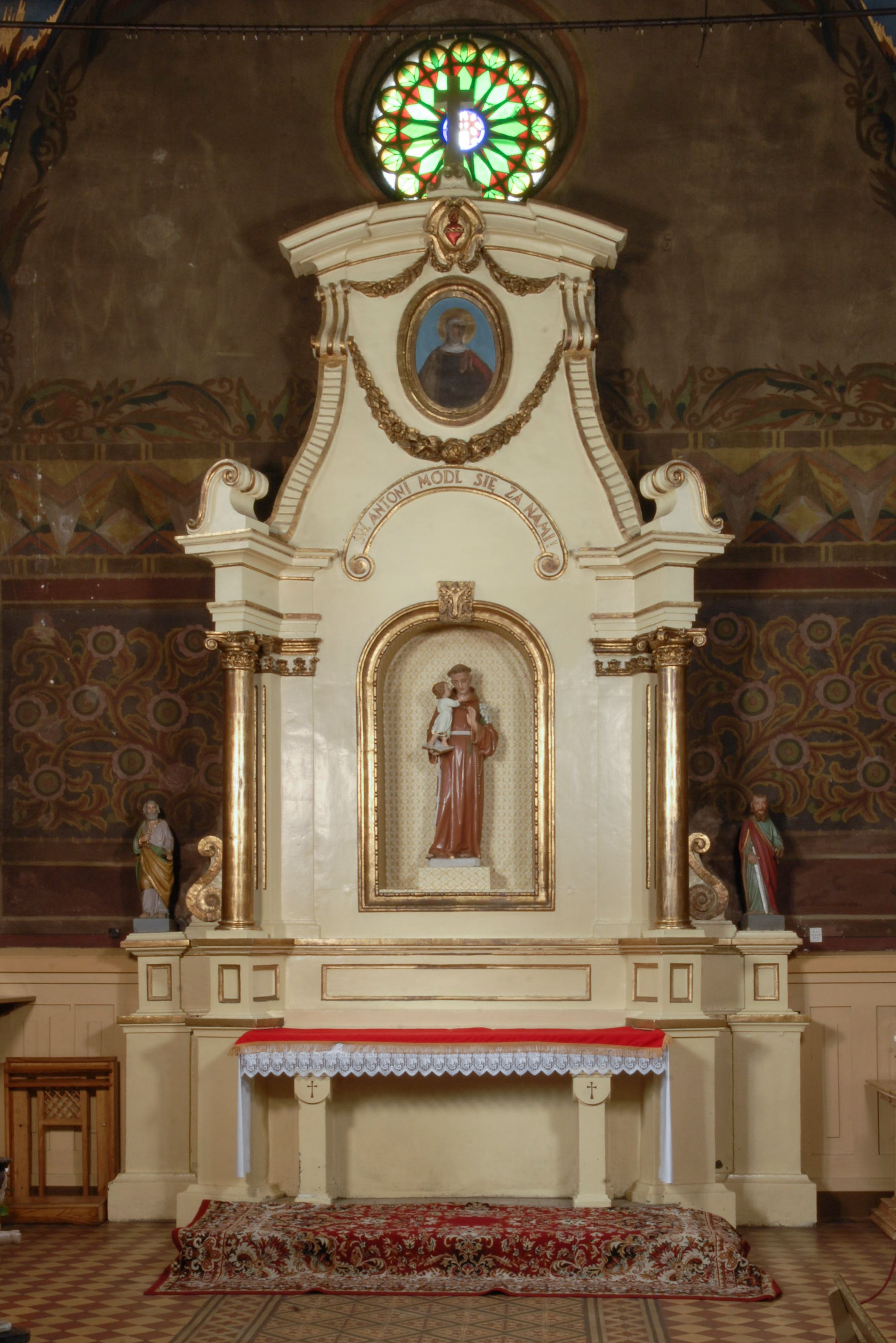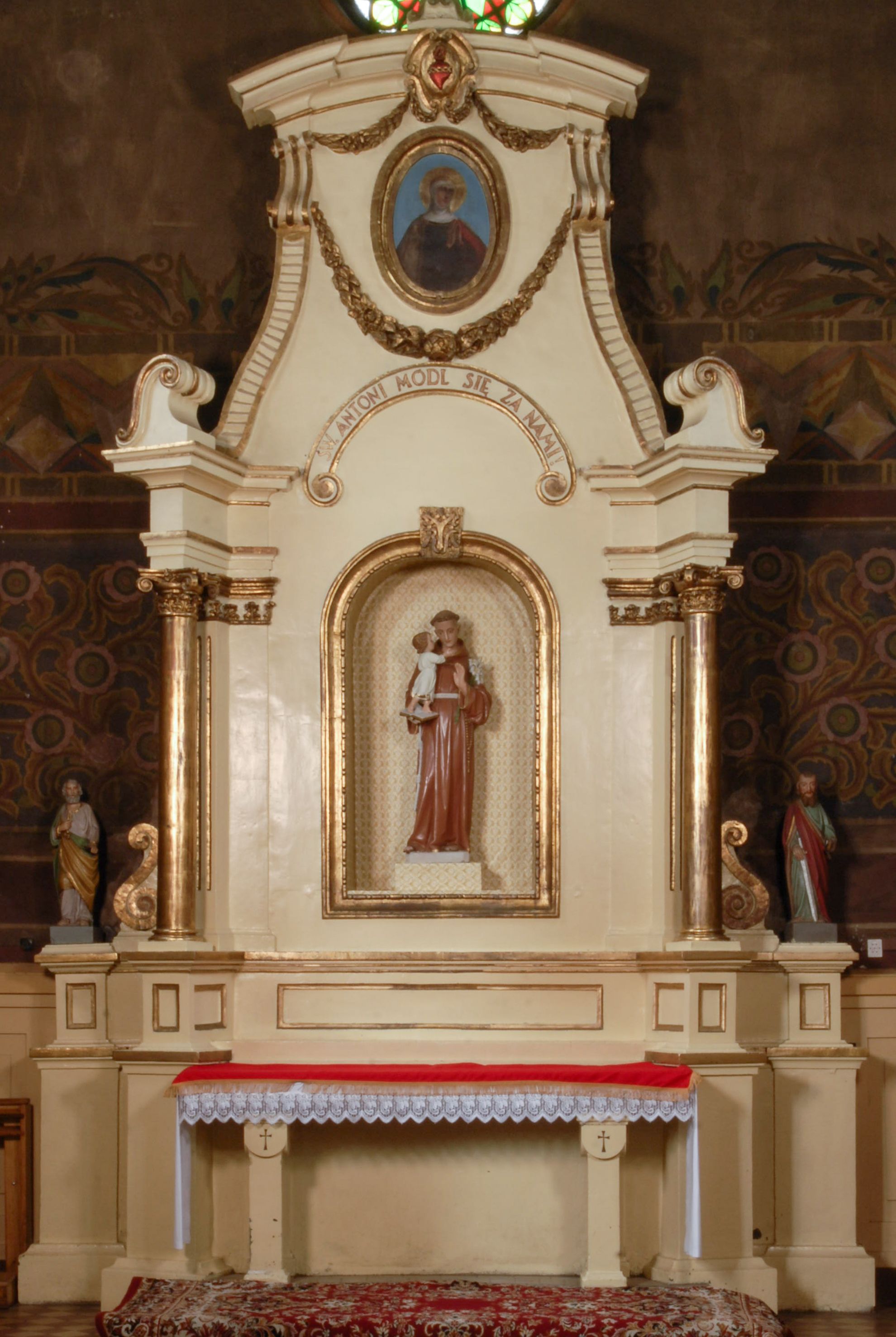 Łączące w sobie elementy stylistyki neobaroku i neoklasycyzmu retabulum św. Antoniego Padewskiego stanowi przykład dziewiętnastowiecznej struktury ołtarzowej.