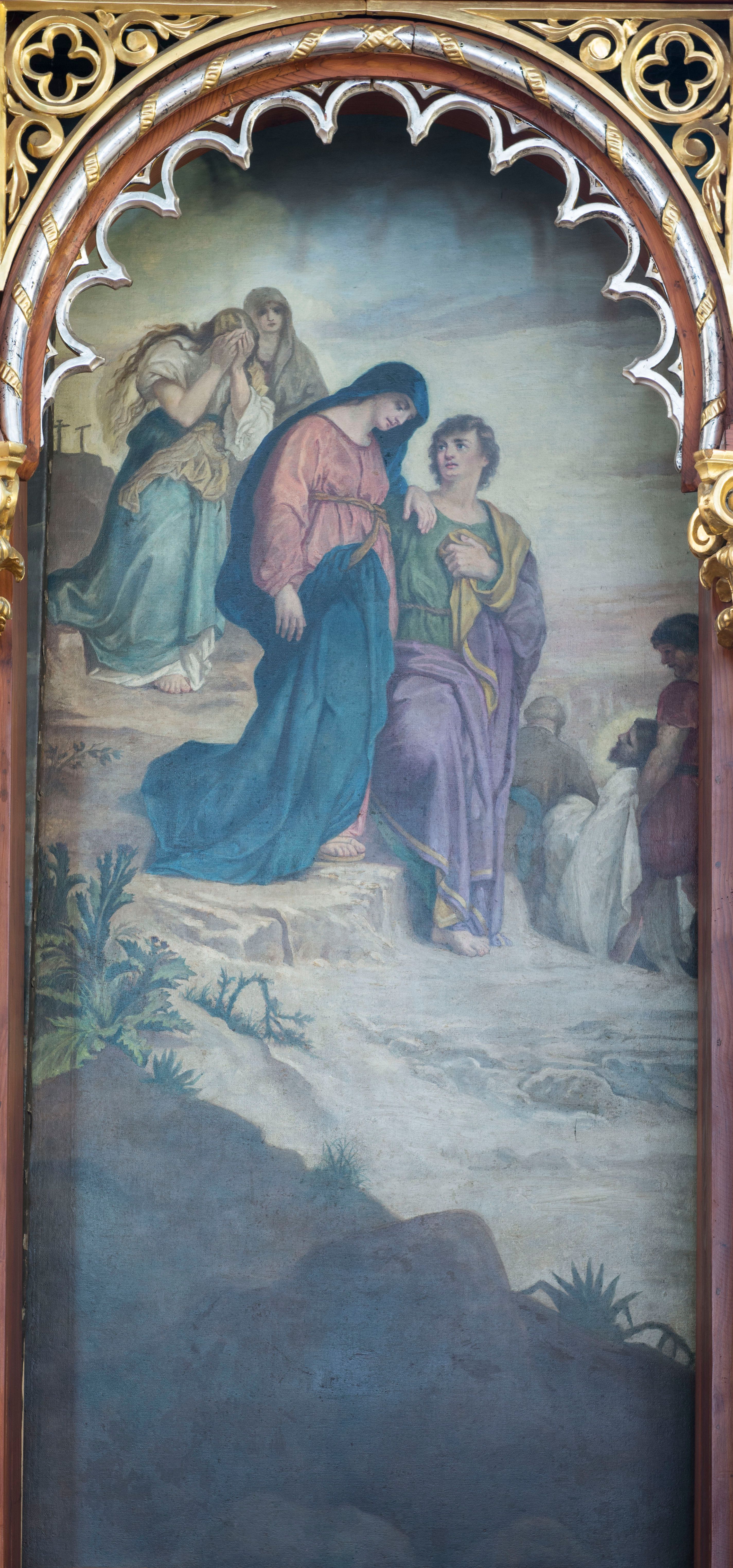 Nastawę z drewna modrzewiowego wykonał Wit Wisz w 1888 roku. Jej kształt, podobnie jak ołtarz główny, inspirowany jest bez wątpienia retabulami renesansowymi, np. przeniesionym do Bodzentyna dawnym ołtarzem głównym z katedry krakowskiej z lat 1545-1546.