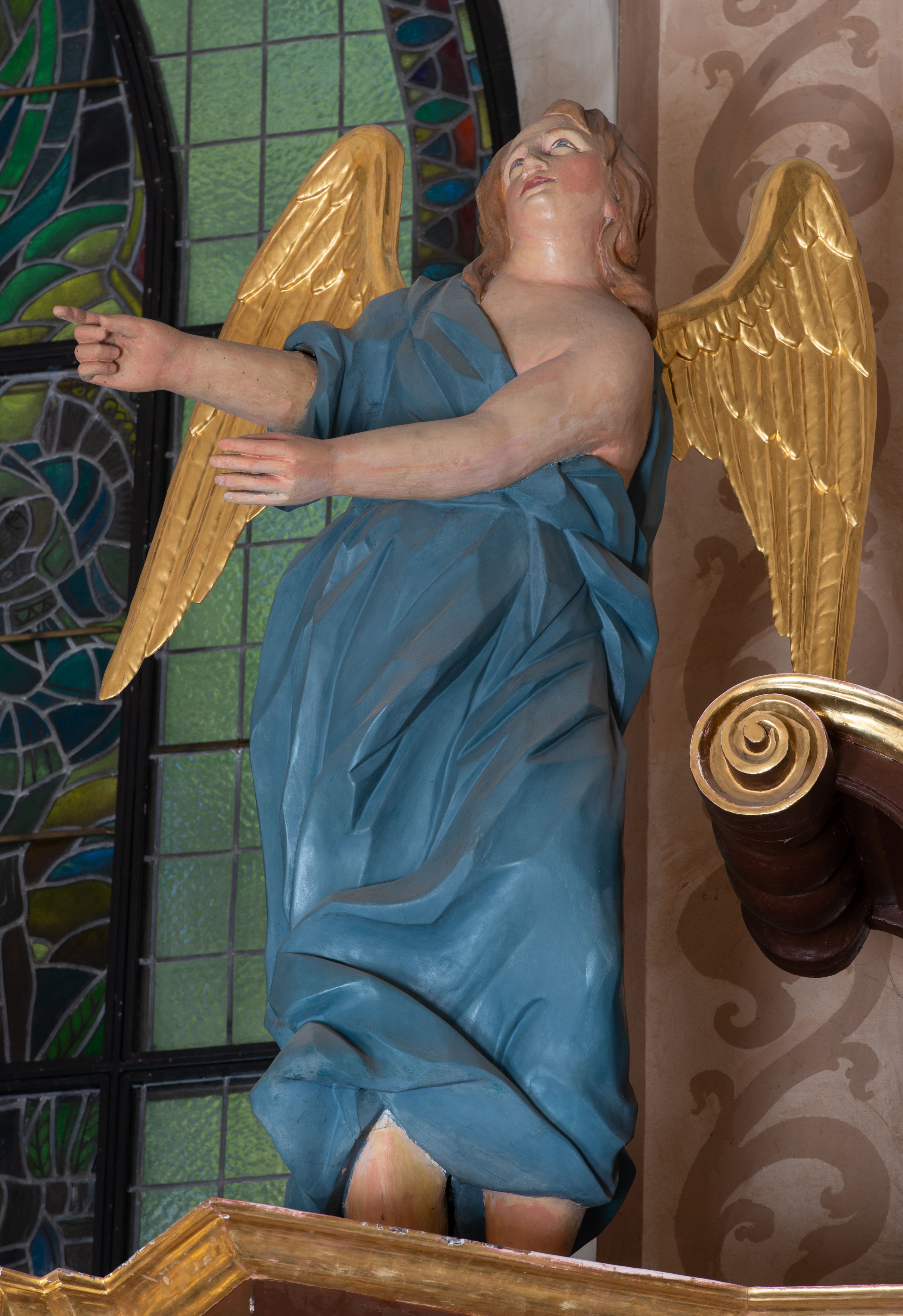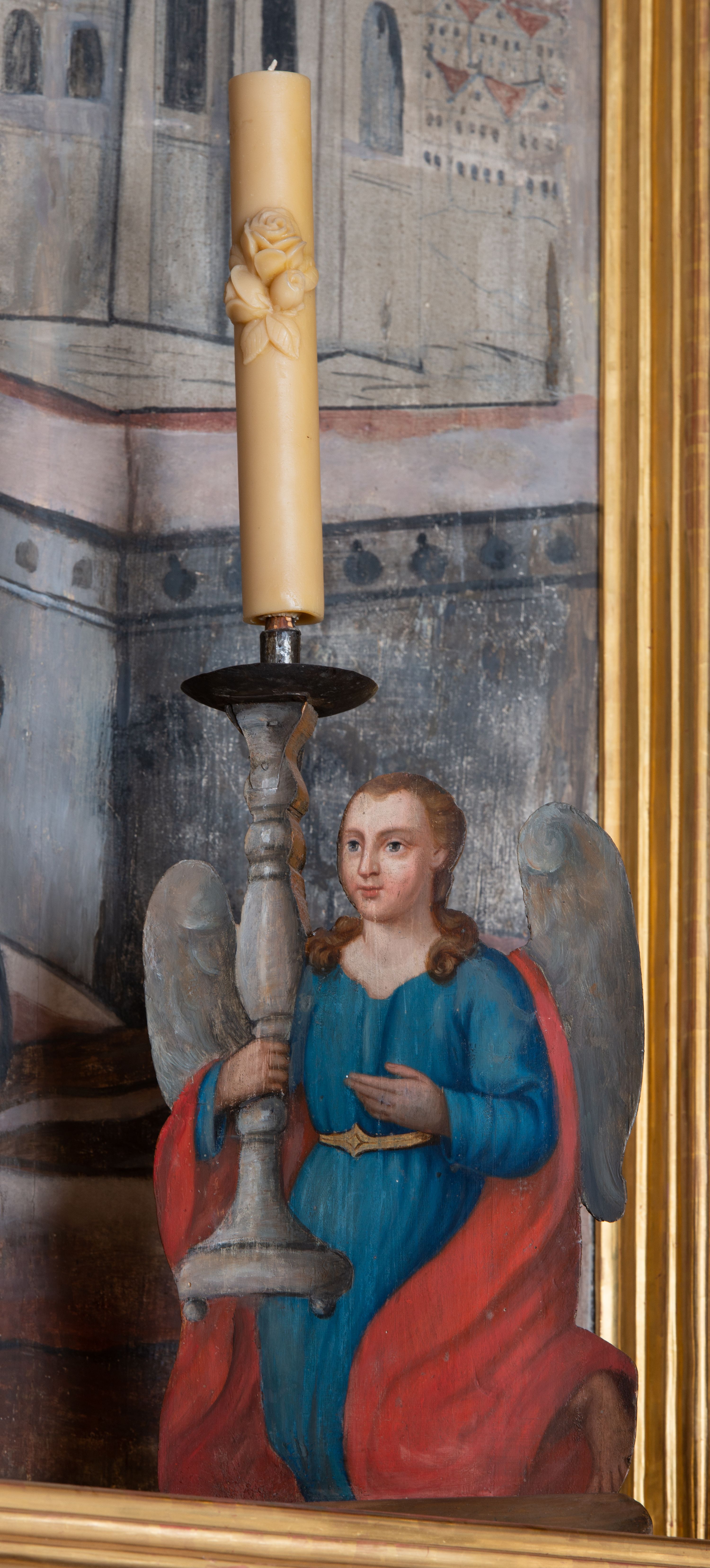 Jednym z osiemnastowiecznych snycerzy krakowskich był Michał Dobkowski (ok. 1721- przed 1772). W latach trzydziestych XVIII wieku kształcił się w pracowni Antoniego Frączkiewicza, po śmierci rzeźbiarza na mocy testamentu przejął jego warsztat wraz z częścią narzędzi oraz wszystkimi projektami i modelami. Ponad trzy dekady trwała samodzielna działalność artystyczna Dobkowskiego. Niekompletna dokumentacja dorobku artysty pozwala jedynie na jego częściową rekonstrukcję. W jej świetle Dobkowski był autorem m.in. ołtarza w kościele w Tuchowie (1741), dekoracji siedmiu ołtarzy do kościoła reformatów w Krakowie (1745), retabulum św. Zofii w kościele św. Marka w Krakowie (1751), dekoracji ołtarza bocznego w kościele parafialnym w Spytkowicach (1754) i ołtarza głównego w kościele bernardynów w Krakowie (1758) czy nastawy do kościoła Imielnie (1764). Para figur aniołów flankująca zwieńczenie ołtarza bocznego z wizerunkiem Ukrzyżowania w kościele parafialnym w Myślenicach wykazuje pewne podobieństwa z dziełami rzeźbiarskimi Michała Dobkowskiego. Sylwetki aniołów charakteryzuje łagodne, taneczne przegięcie i typowy dla wielu łączonych z Dobkowskim realizacji układ lekko zgiętych w łokciach rąk uniesionych na wysokości bioder i skierowanych w jedną stronę bądź ujętych w kolistych ruchach. Twarze cechują owalny obrys, wypukłe brody oraz melancholijny wyraz. Zarówno w dziełach Frączkiewicza, jak i Dobkowskiego uwagę zwraca także sposób opracowania skrzydeł aniołów – dużych, o wyraźnie zaznaczonych, sporych rozmiarów piórach. Analogiczny wydaje się być także sposób opracowania szat przylegających do sylwetki, gęsto drapowanych, o stosunkowo ostrych łamaniach. Przykłady modelowanych w powyższy sposób i łączonych z Dobkowskim figur zdobią m.in. retabula w kościołach w Tuchowie, kamedułów na Bielanach czy w katedrze w Kielcach.