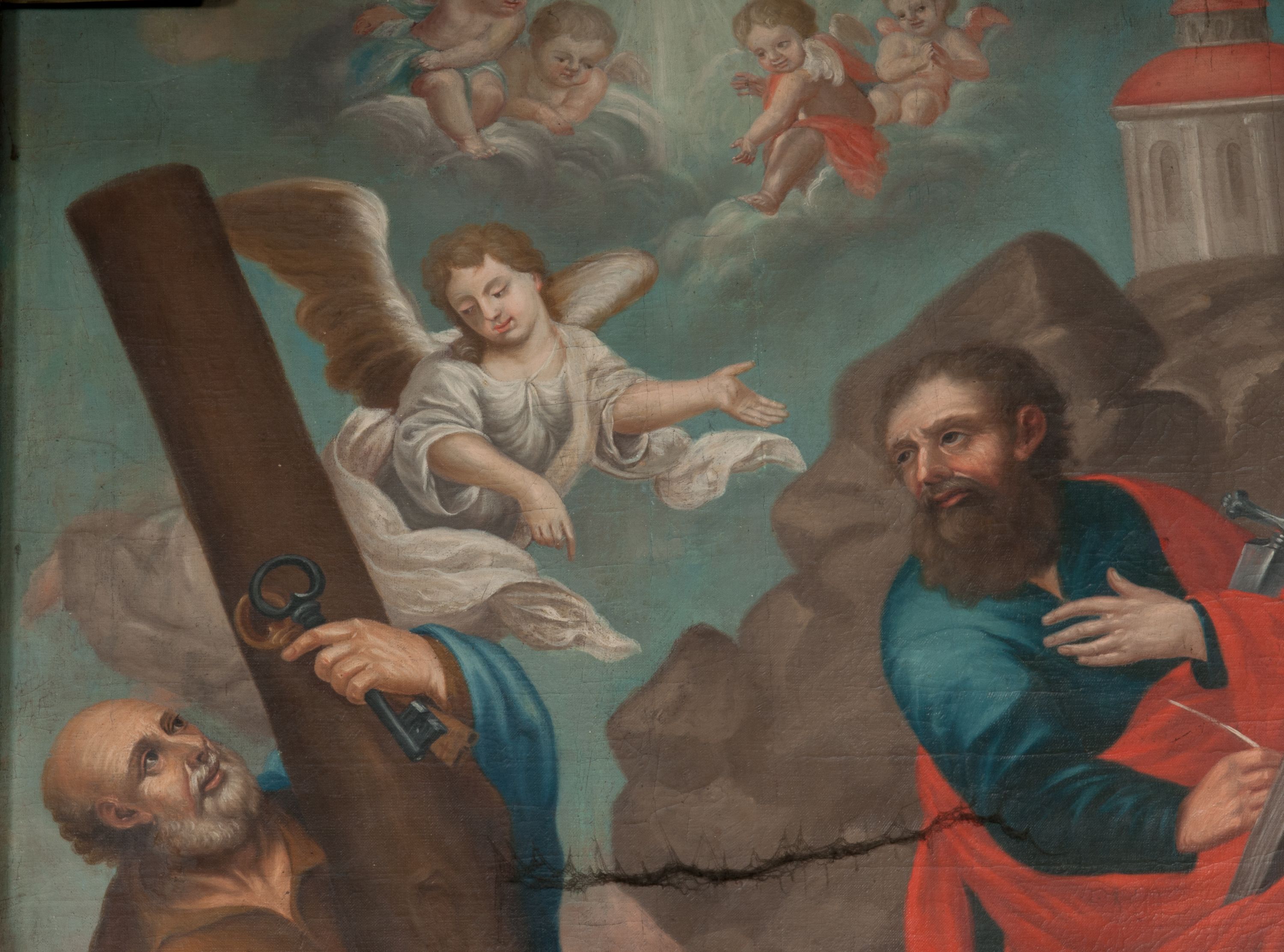 Wszystkie elementy opisywanego dzieła są spójne: struktura, sposób kształtowania postaci oraz dekoracje wskazują jednoznacznie na XVIII wiek. Jedynie umieszczony w centralnym polu obraz „Oblicze Chrystusa” jest starszy i stylistycznie odwołuje się do malarstwa bizantynizującego. Świadczy o tym brunatna tonacja, charakterystyczny sposób ukazania twarzy złożonej jakby z prostych, geometrycznych elementów, dający efekt odrealnienia.
