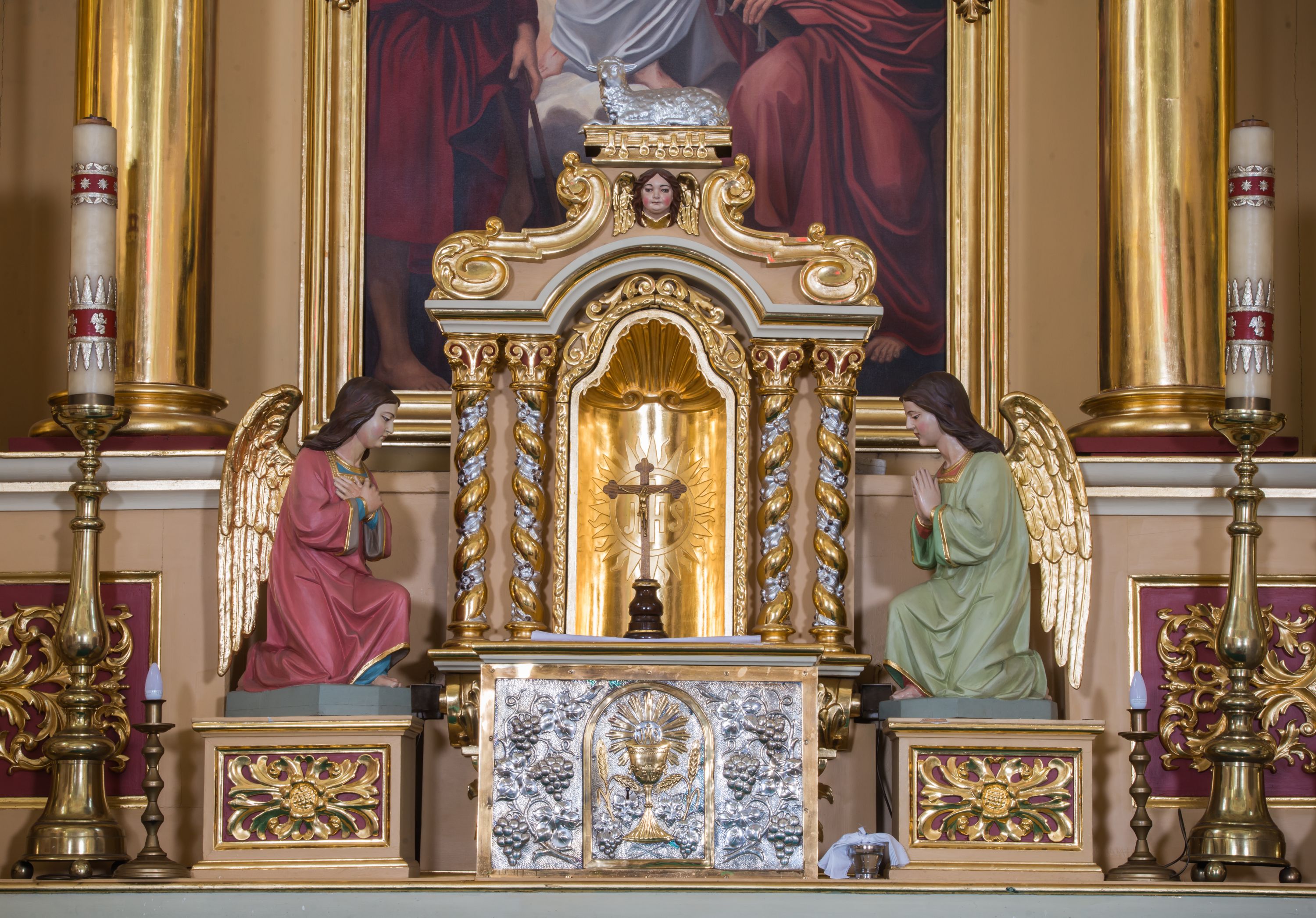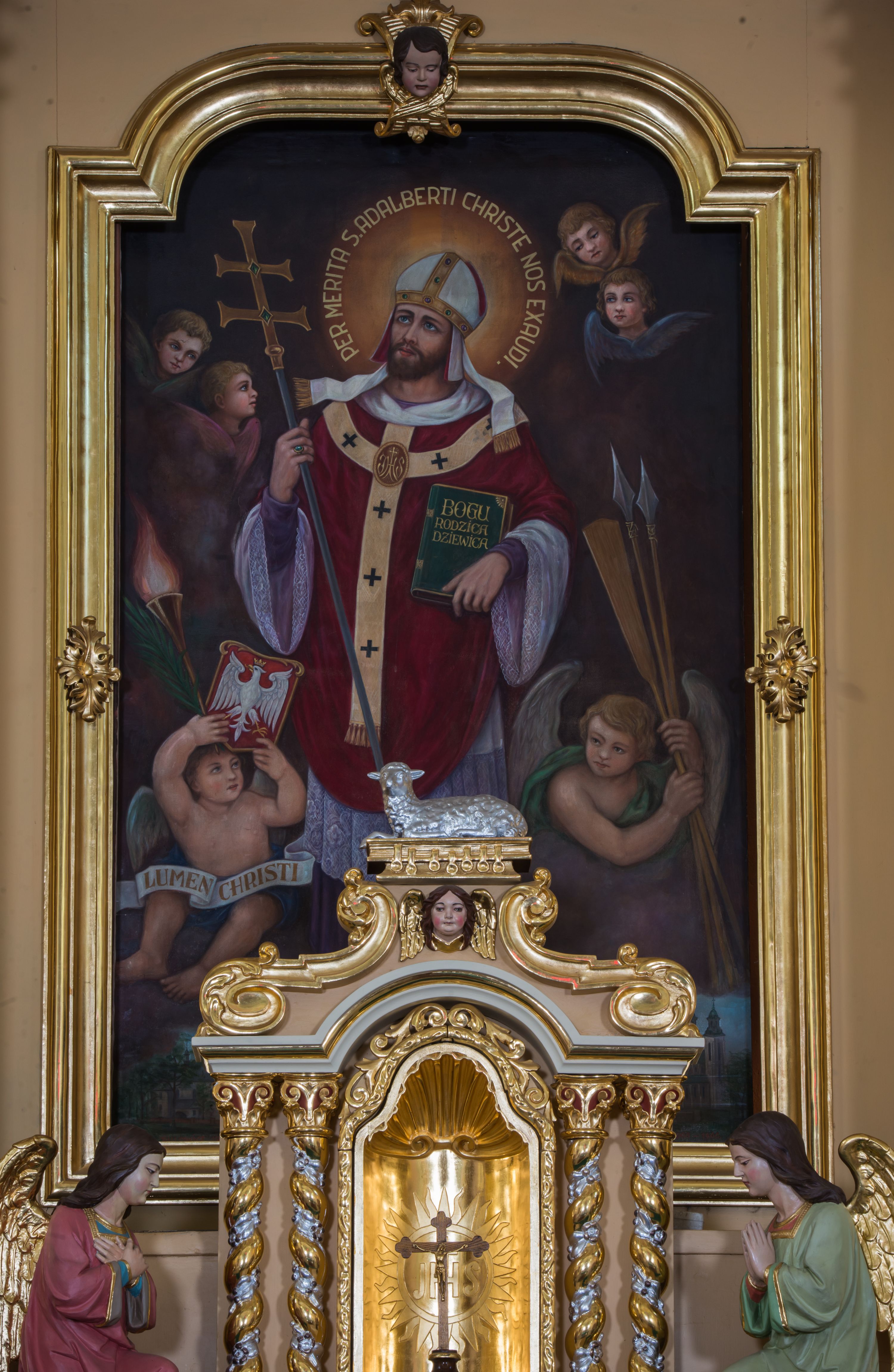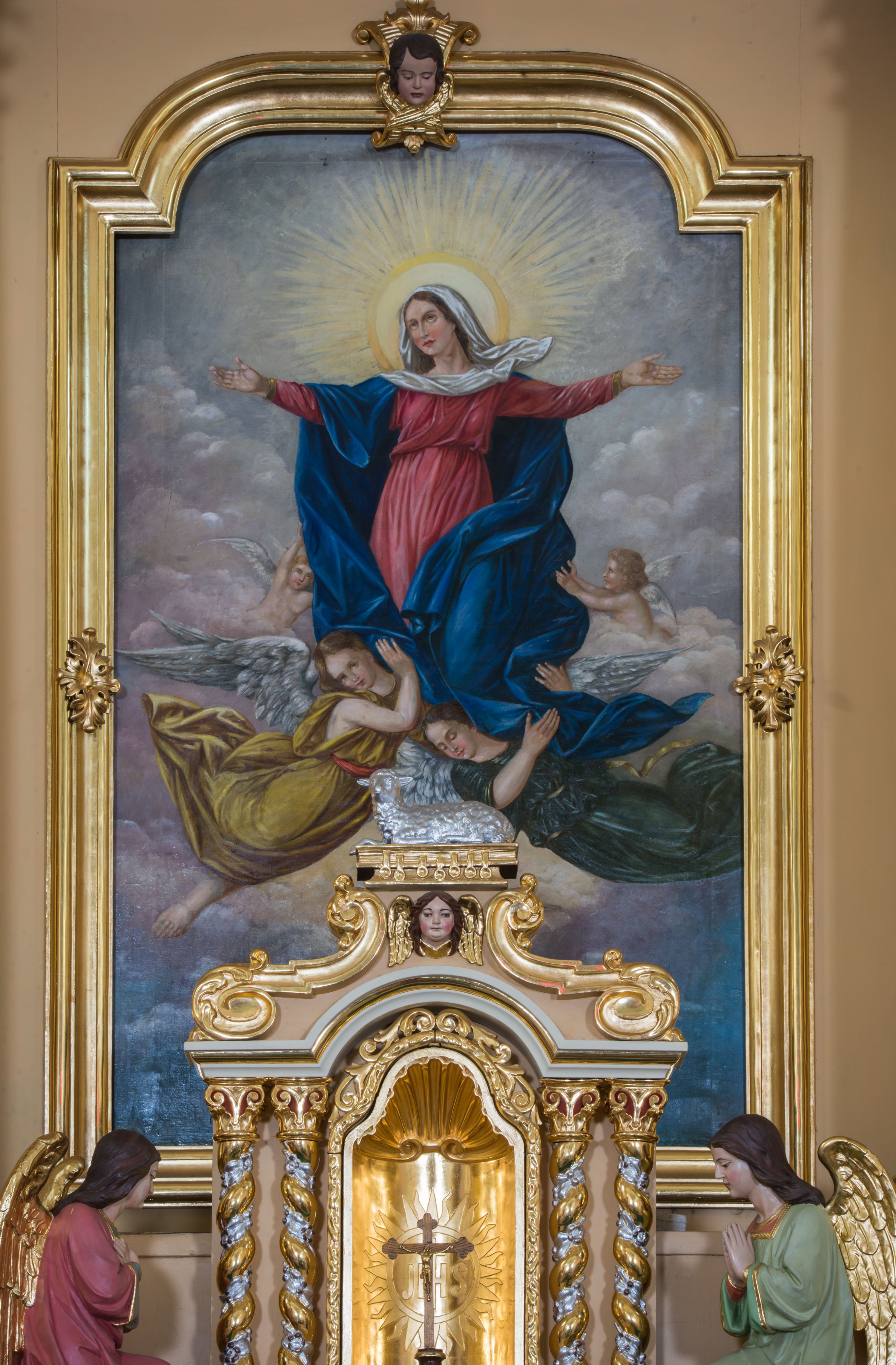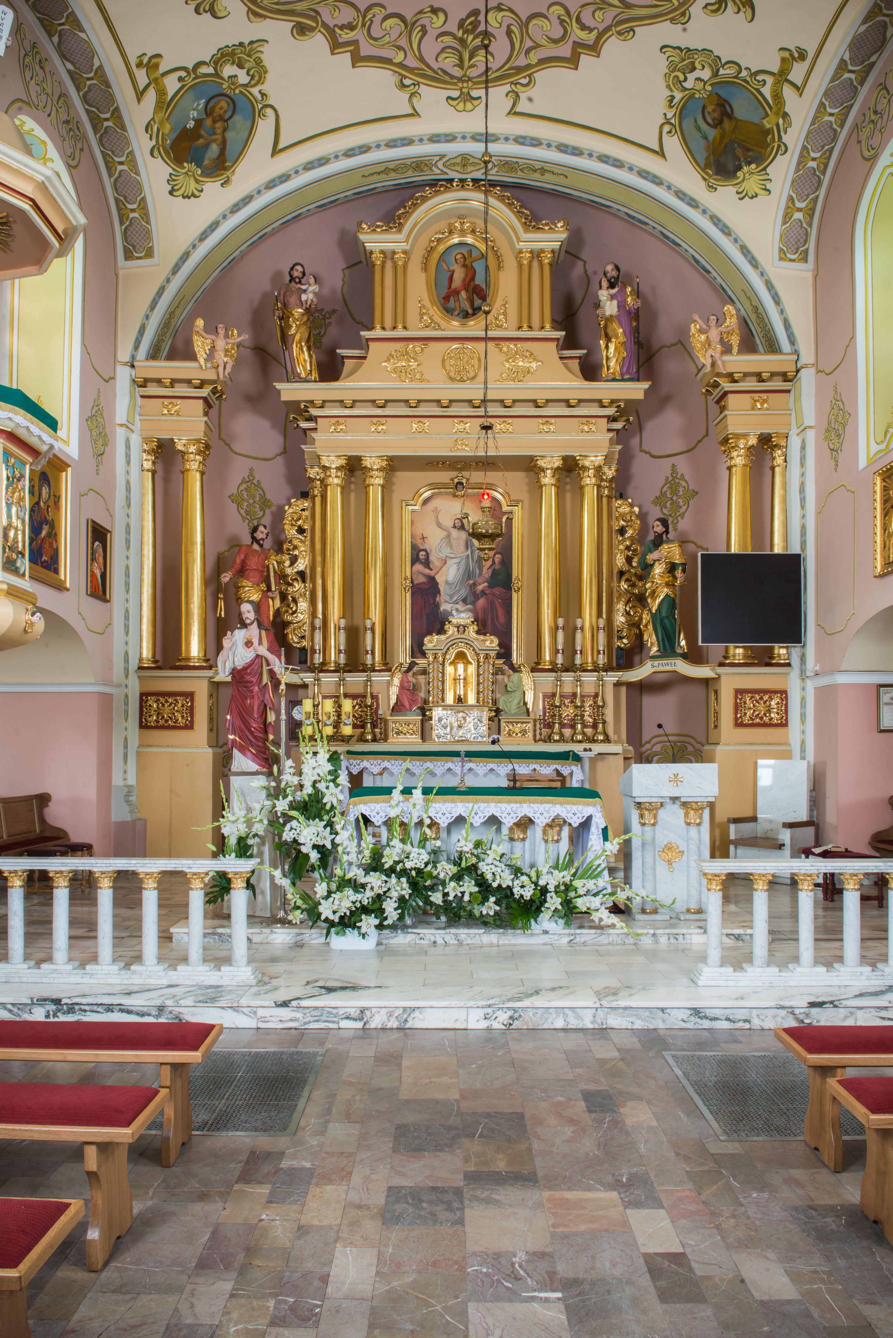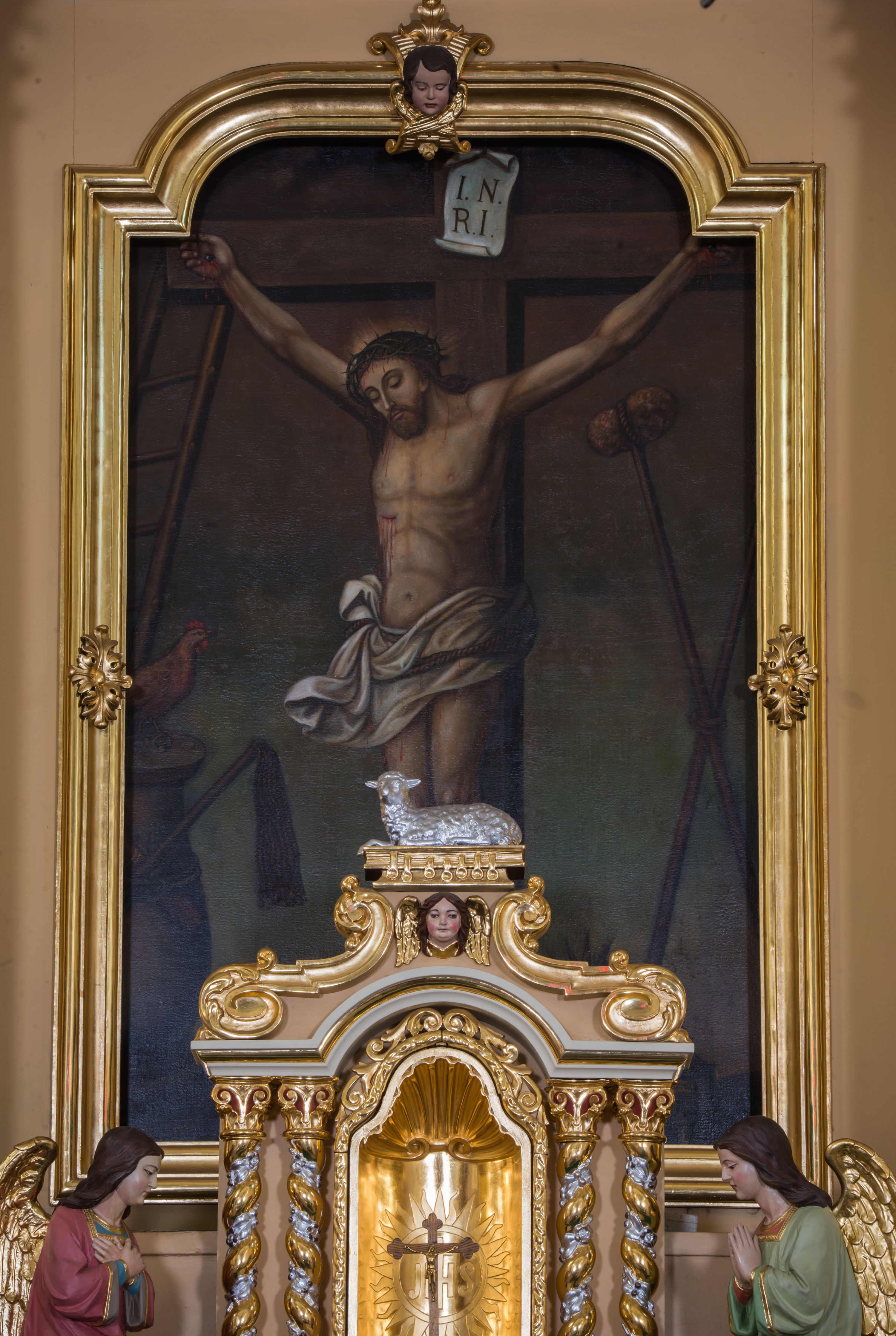 Obecny ołtarz wykonano w latach 1925-1926, gdyż poprzedni z ok. 1850 roku spłonął. Zachowały się z niego figury św. Piotra i św. Pawła, które wtórnie zostały wykorzystane nad bramkami obecnej nastawy.