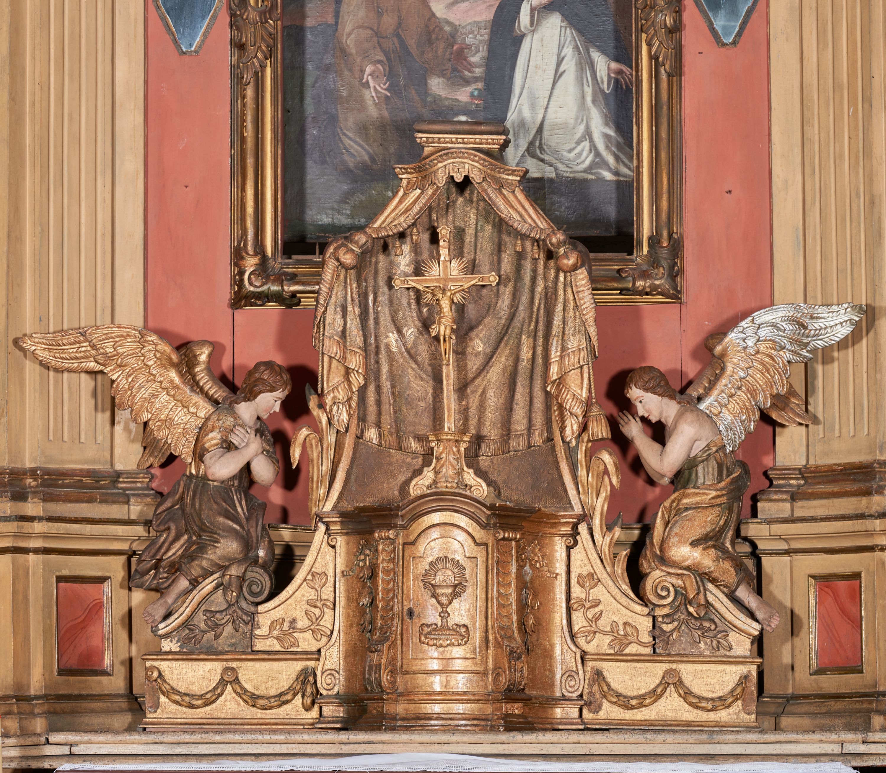 Nastawa najpewniej powstała w czwartej ćwierci XVIII wieku albo na początku XIX wieku. Posiada zamontowane wtórnie obrazy i figury, które pochodzą z XVII wieku.