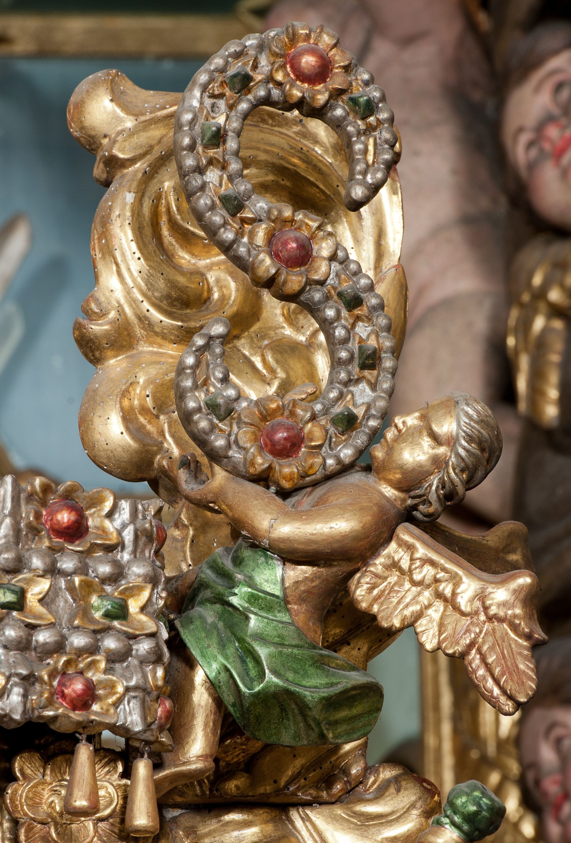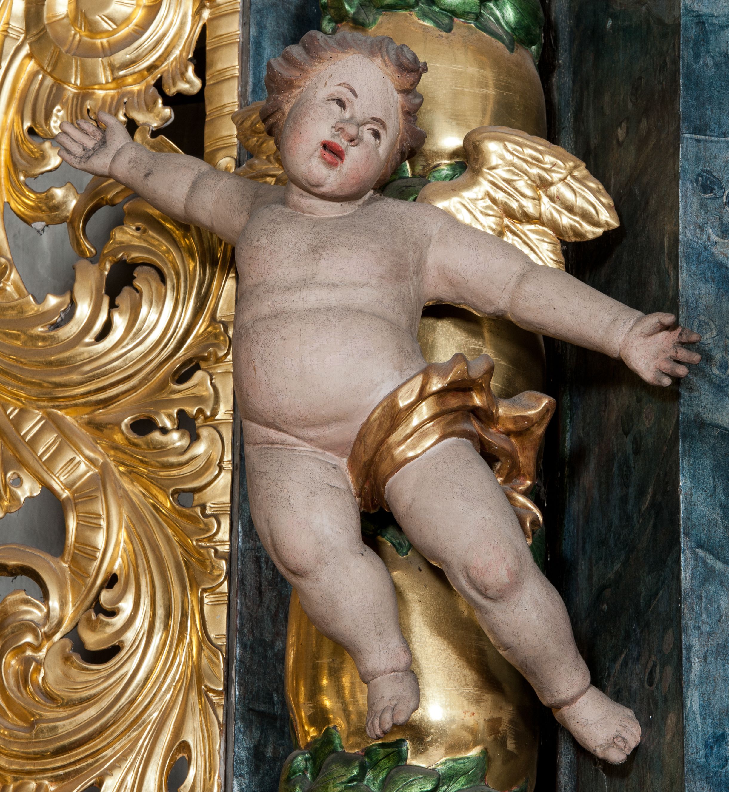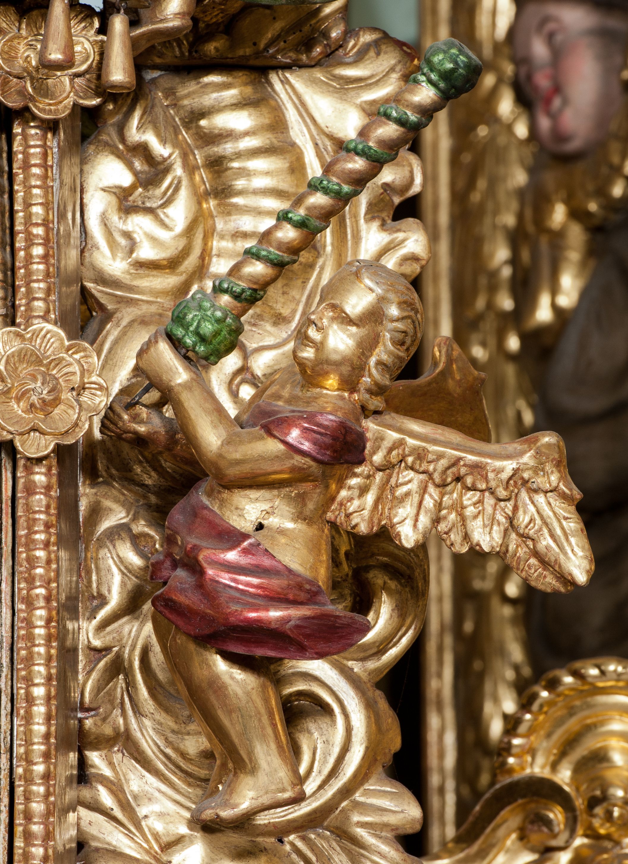 Zabrudzenia; pojedyncze odpryski polichromii i złoceń.