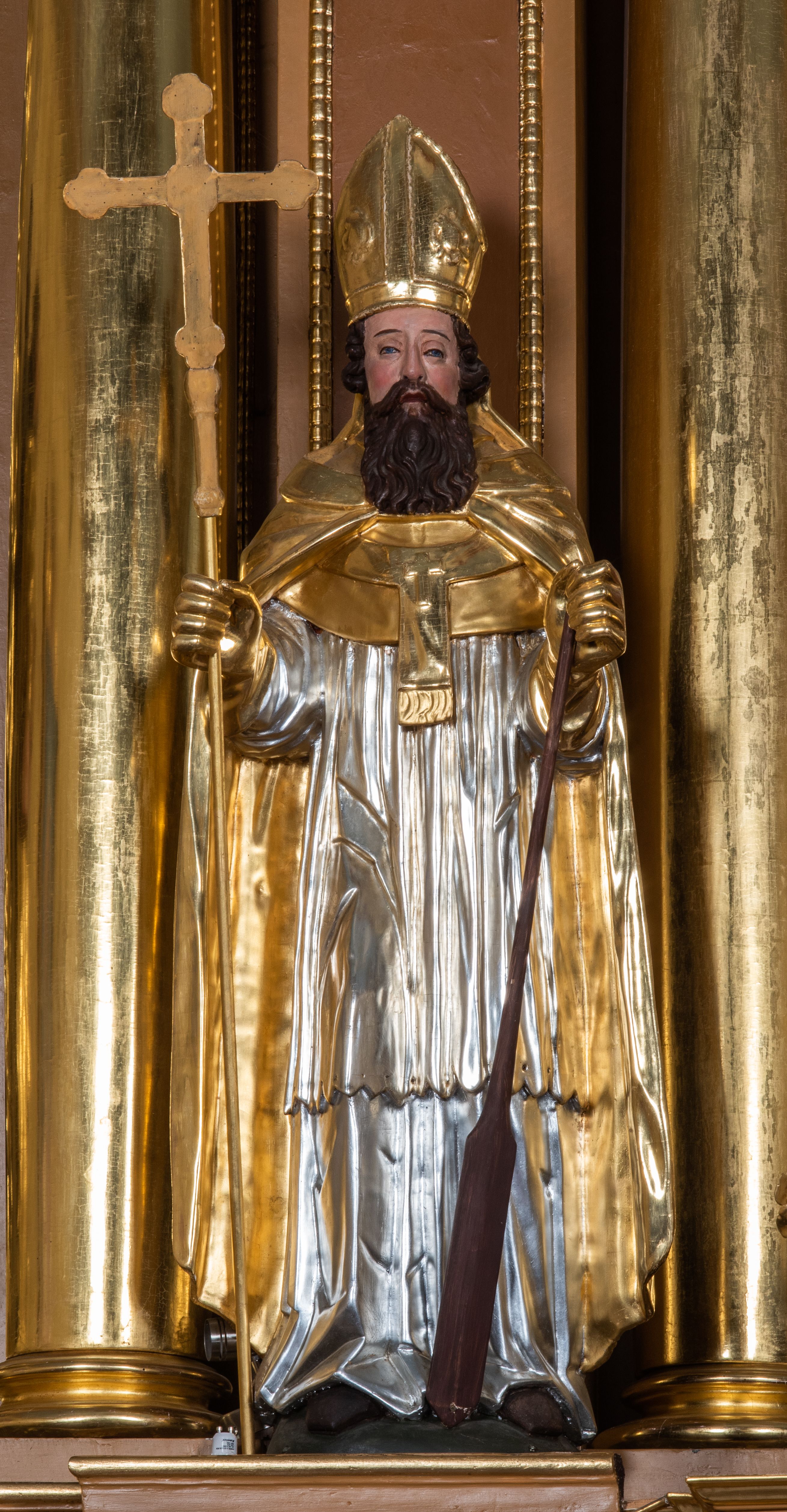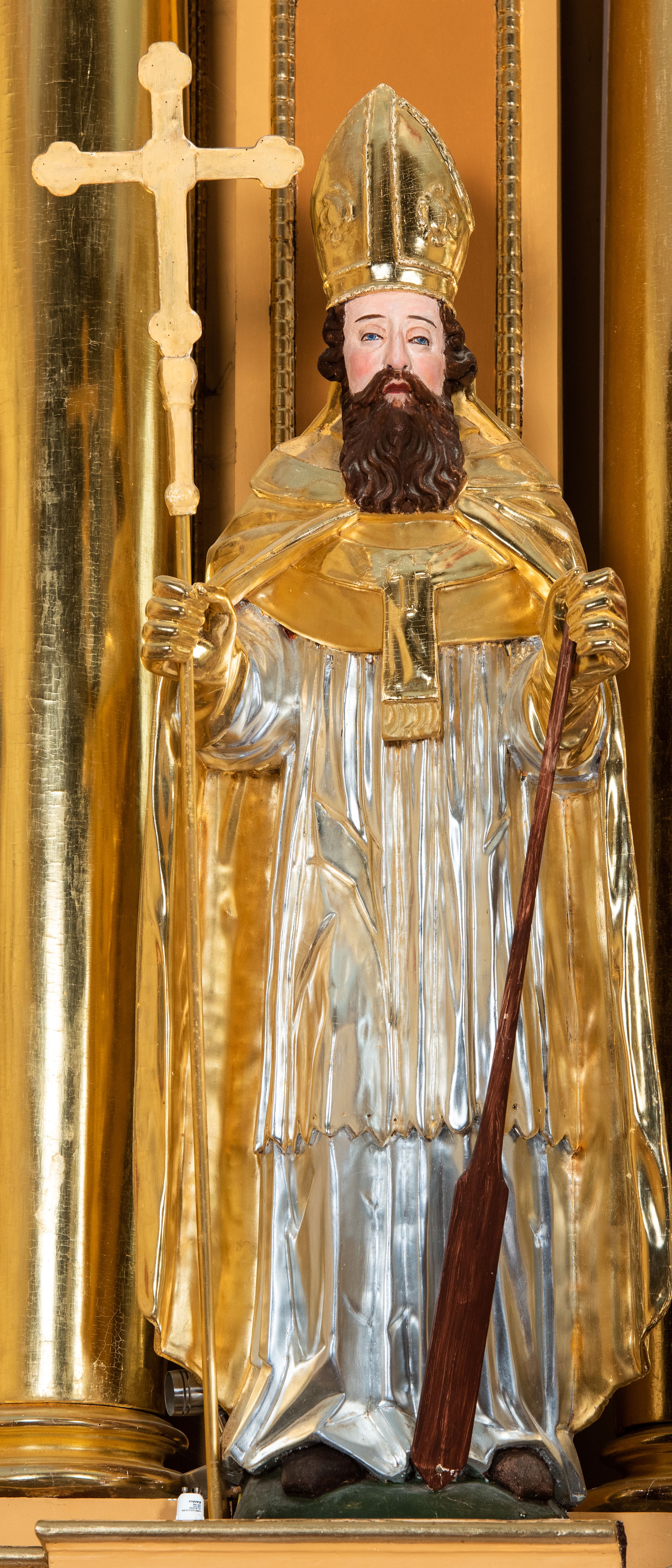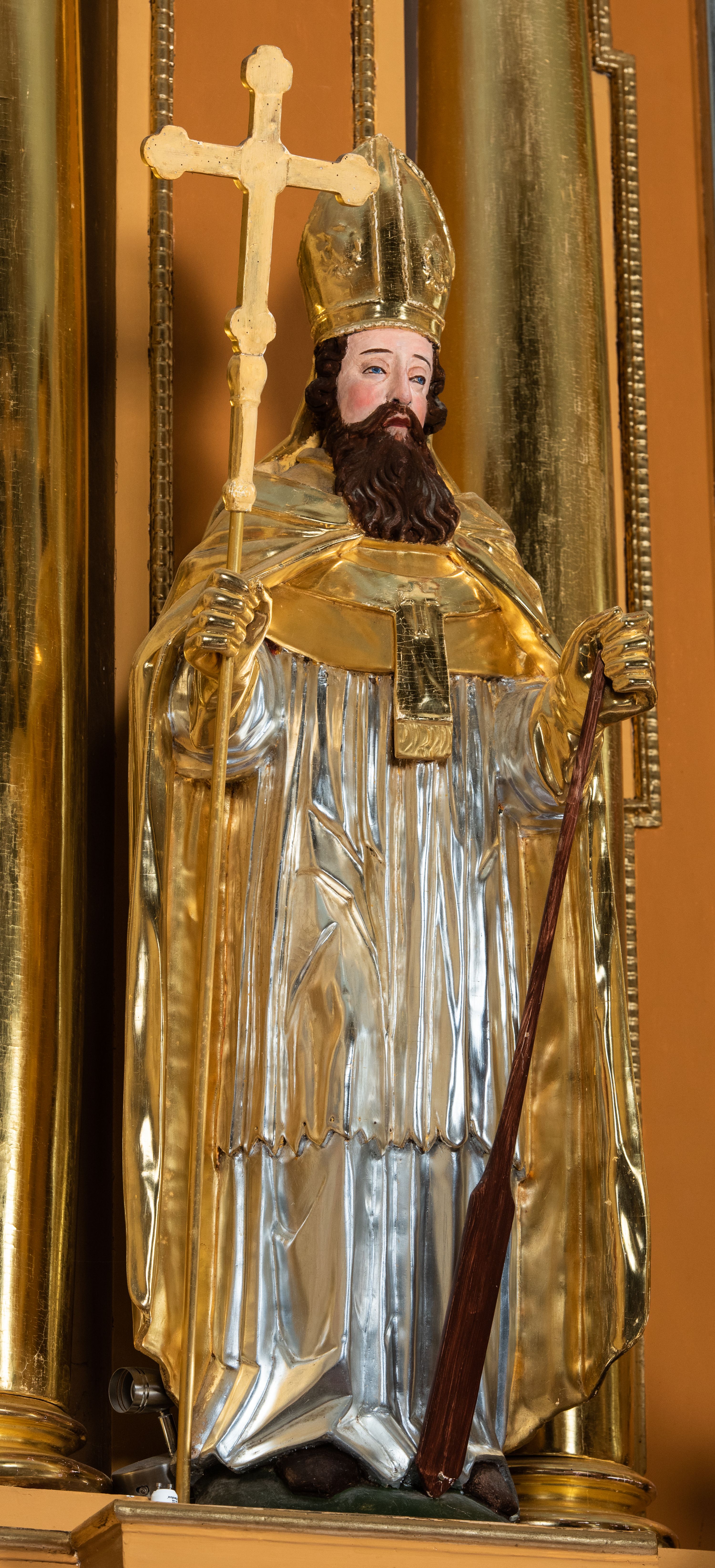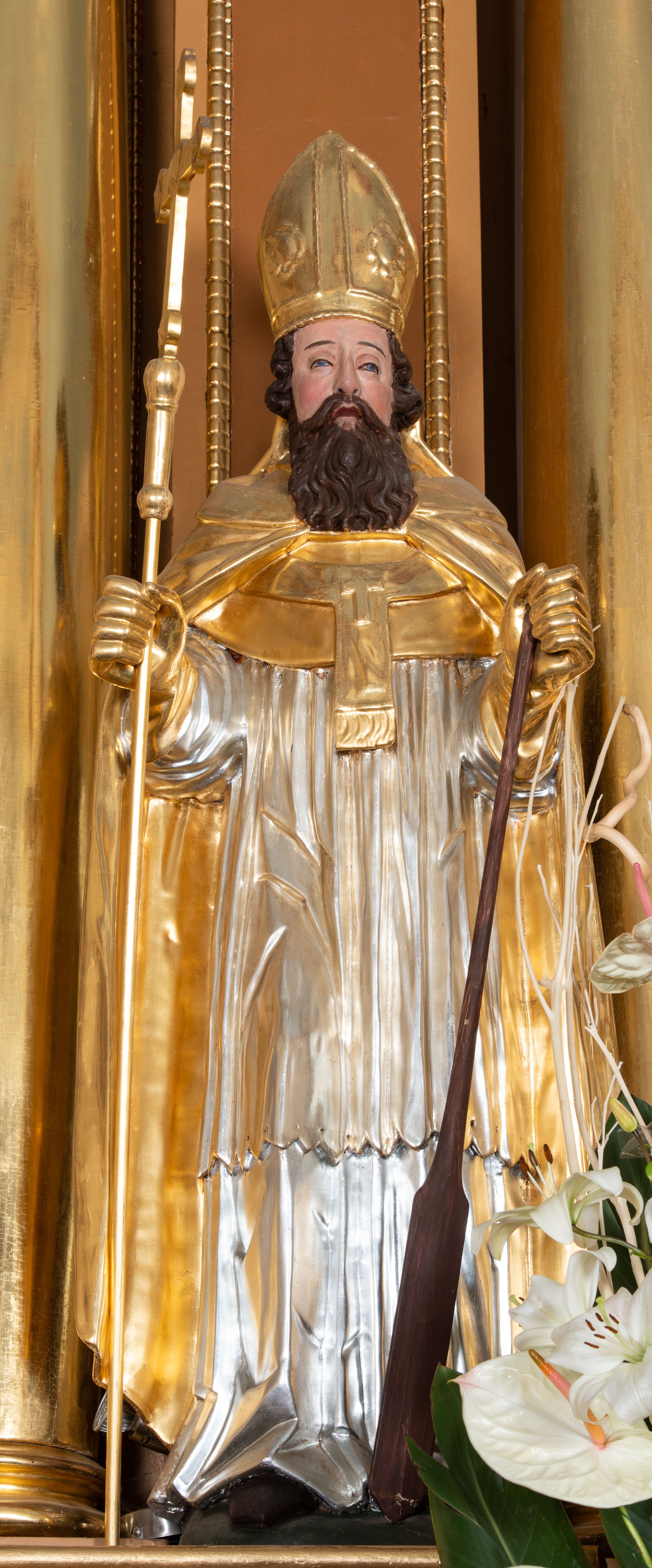 Całość ołtarza oprócz tabernakulum dekorowana jest ornamentem małżowinowo-chrząstkowym. Uszy flankujące kondygnację utworzone są również z ornamentu małżowinowo-chrząstkowego. Na zamknięciu zwieńczenia znajdują się dwie uskrzydlone główki anielskie skierowane na wprost z podwieszonymi u szyi chustami. Struktura ołtarza polichromowana jest w kolorze brązowym ze złoconymi kolumnami, ornamentyką i profilami, detale srebrzone.