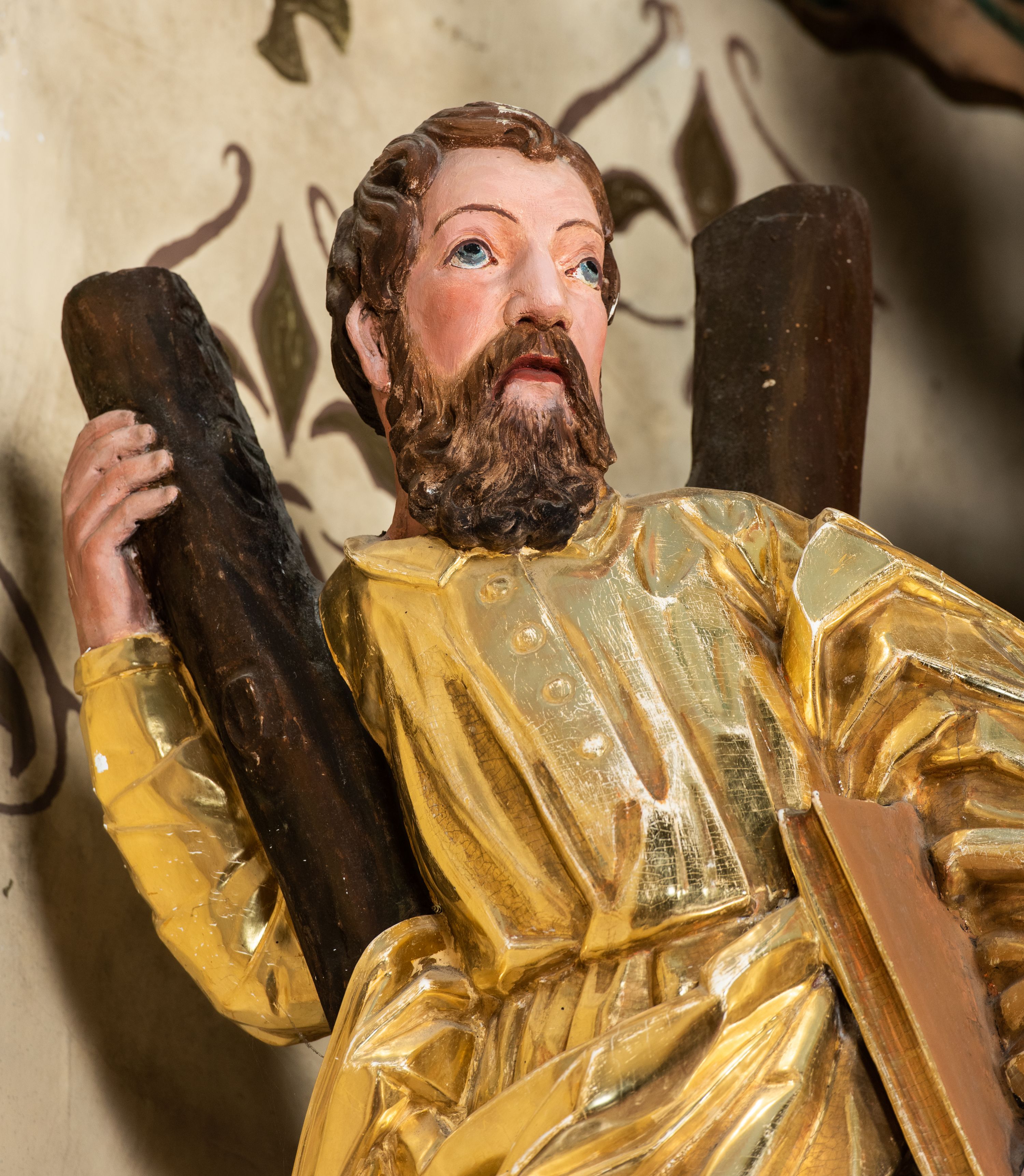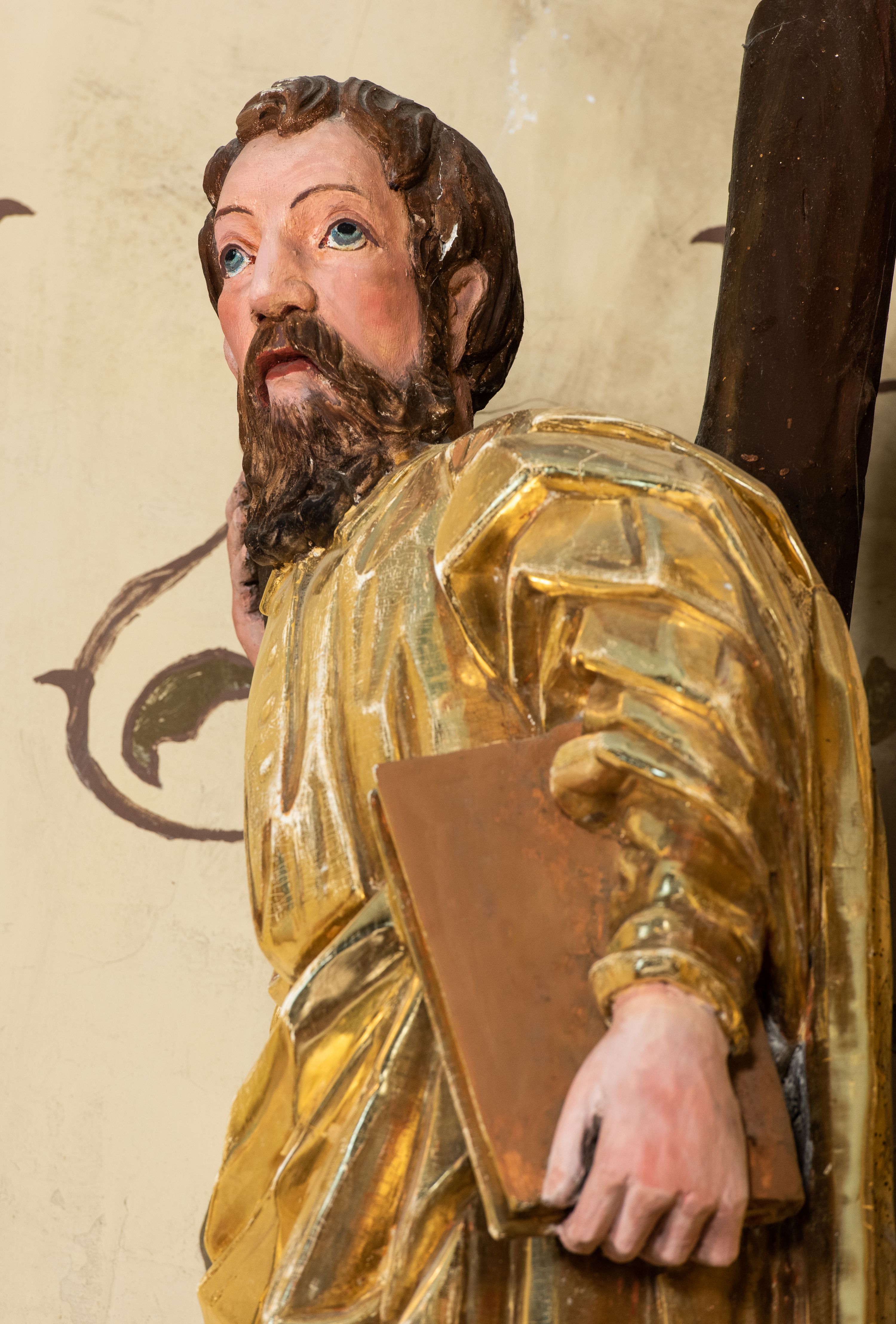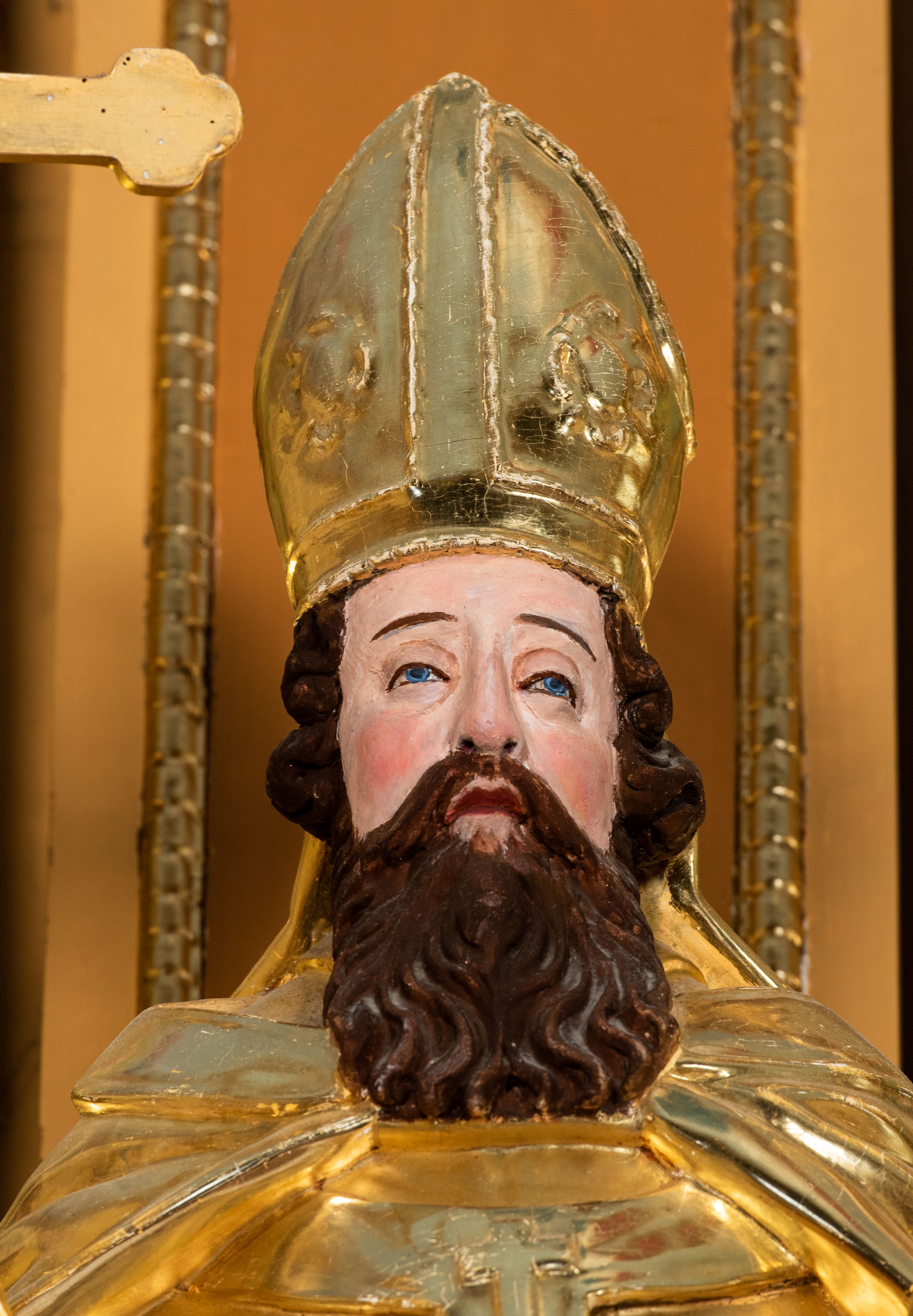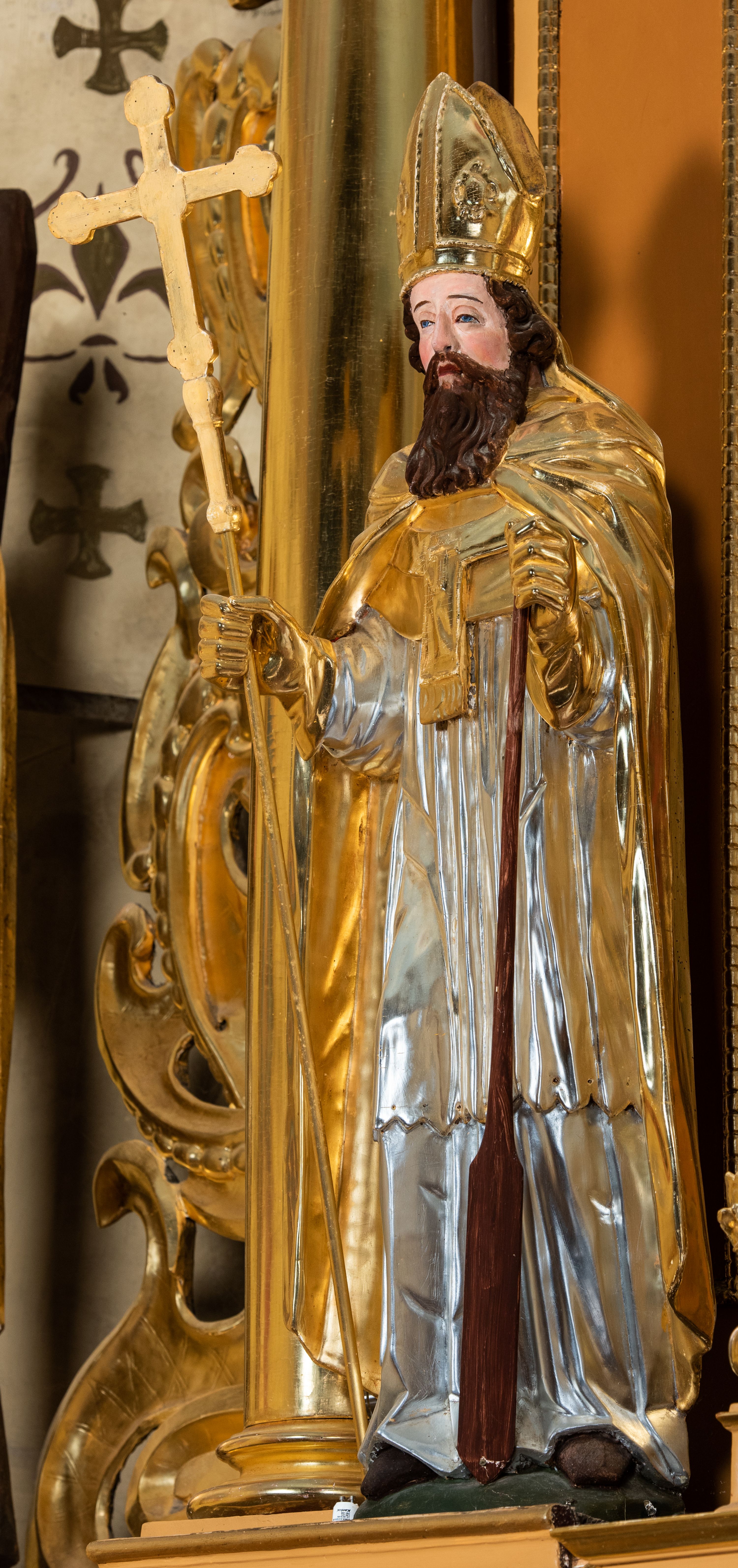 Całość ołtarza oprócz tabernakulum dekorowana jest ornamentem małżowinowo-chrząstkowym. Uszy flankujące kondygnację utworzone są również z ornamentu małżowinowo-chrząstkowego. Na zamknięciu zwieńczenia znajdują się dwie uskrzydlone główki anielskie skierowane na wprost z podwieszonymi u szyi chustami. Struktura ołtarza polichromowana jest w kolorze brązowym ze złoconymi kolumnami, ornamentyką i profilami, detale srebrzone.