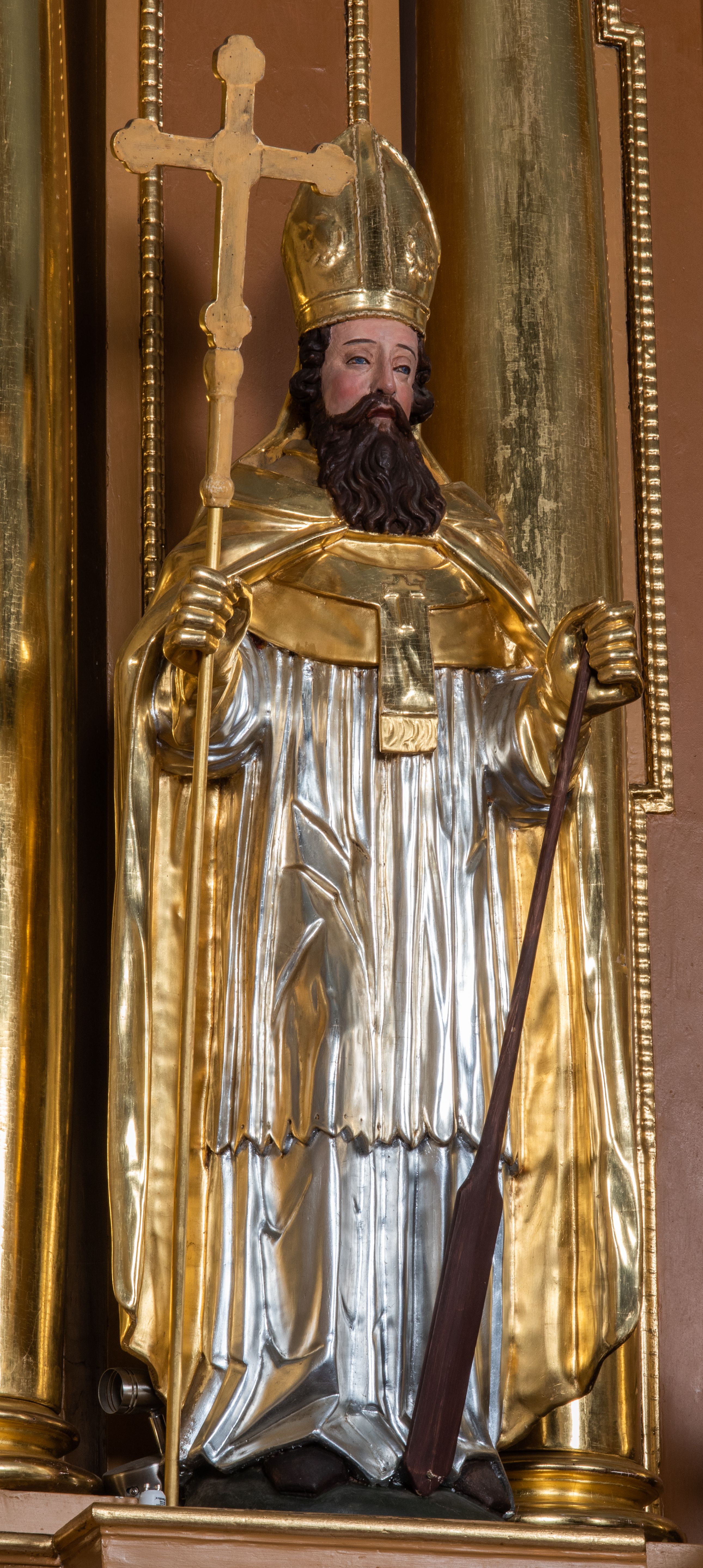 Bramki po bokach ołtarza ustawione są na wysokości cokołu nastawy; przejścia ujęte są parą kanelowanych pilastrów, zamknięte łukiem utworzonym z dwóch przeciwstawnych wolut wspierających wieńczące cokoły. Przejścia w formie wydłużonego stojącego prostokąta zamkniętego łukiem półkolistym nadwieszonym.