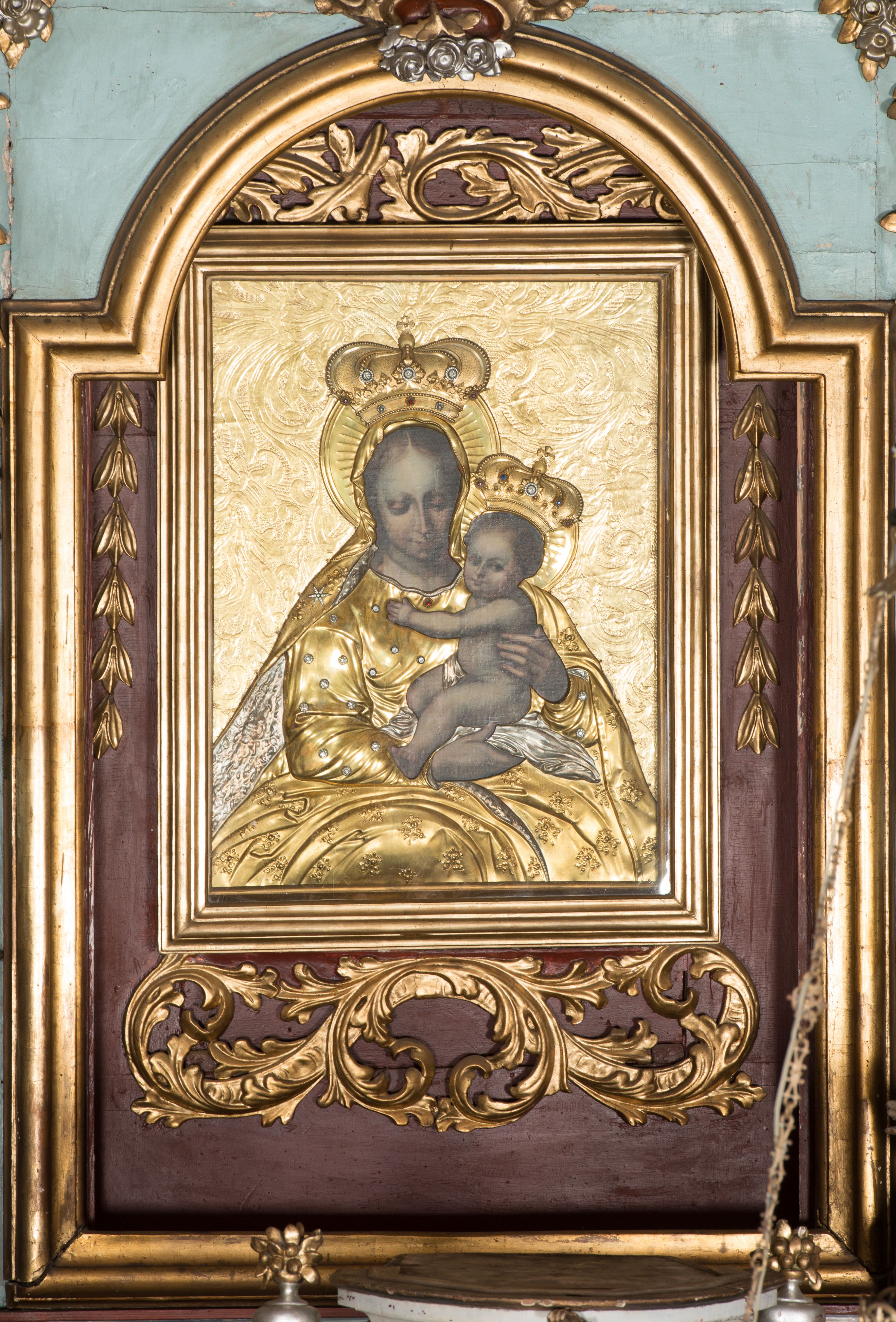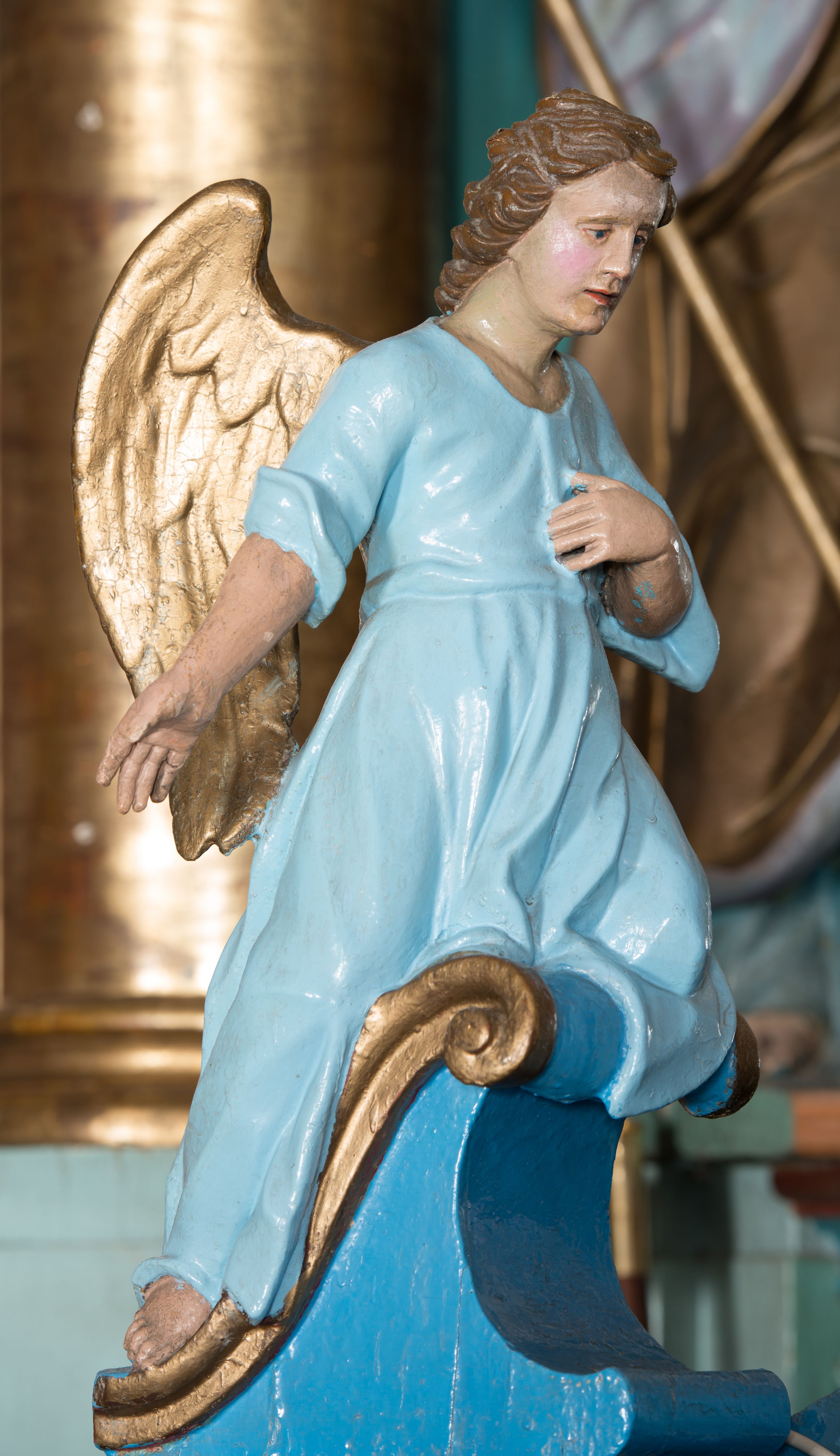 Przetarcia, ubytki, spękania i złuszczenia polichromii, złoceń i srebrzeń, zabrudzenia nastawy.
