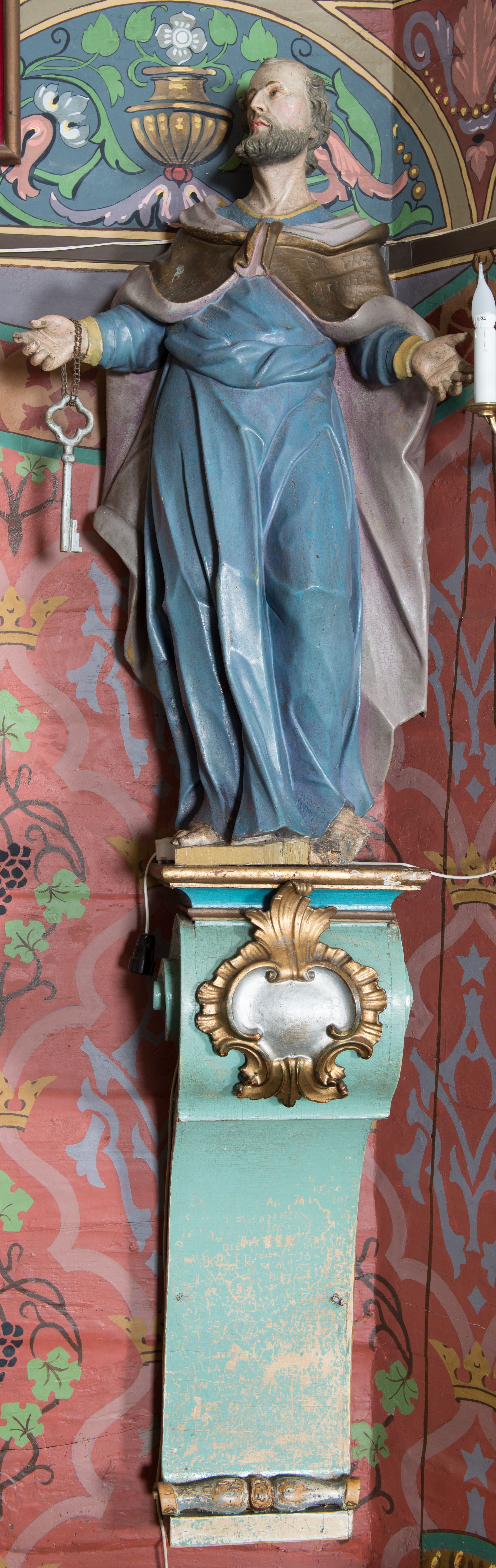 Ołtarz główny razem z figurami świętych najpewniej wykonali bracia Korneccy, którzy po rozwiązaniu warsztatu rodzinnego w Gdowie (ok. 1776), w latach osiemdziesiątych XVIII wieku wykonywali razem jeszcze kilka zleceń. Struktura ołtarza oraz cechy formalne figur odpowiadają dziełom tworzonym wcześniej w warsztacie Korneckich, w którym Antoni i Ignacy pracowali razem z ojcem Piotrem oraz krewniakami i współpracownikami.