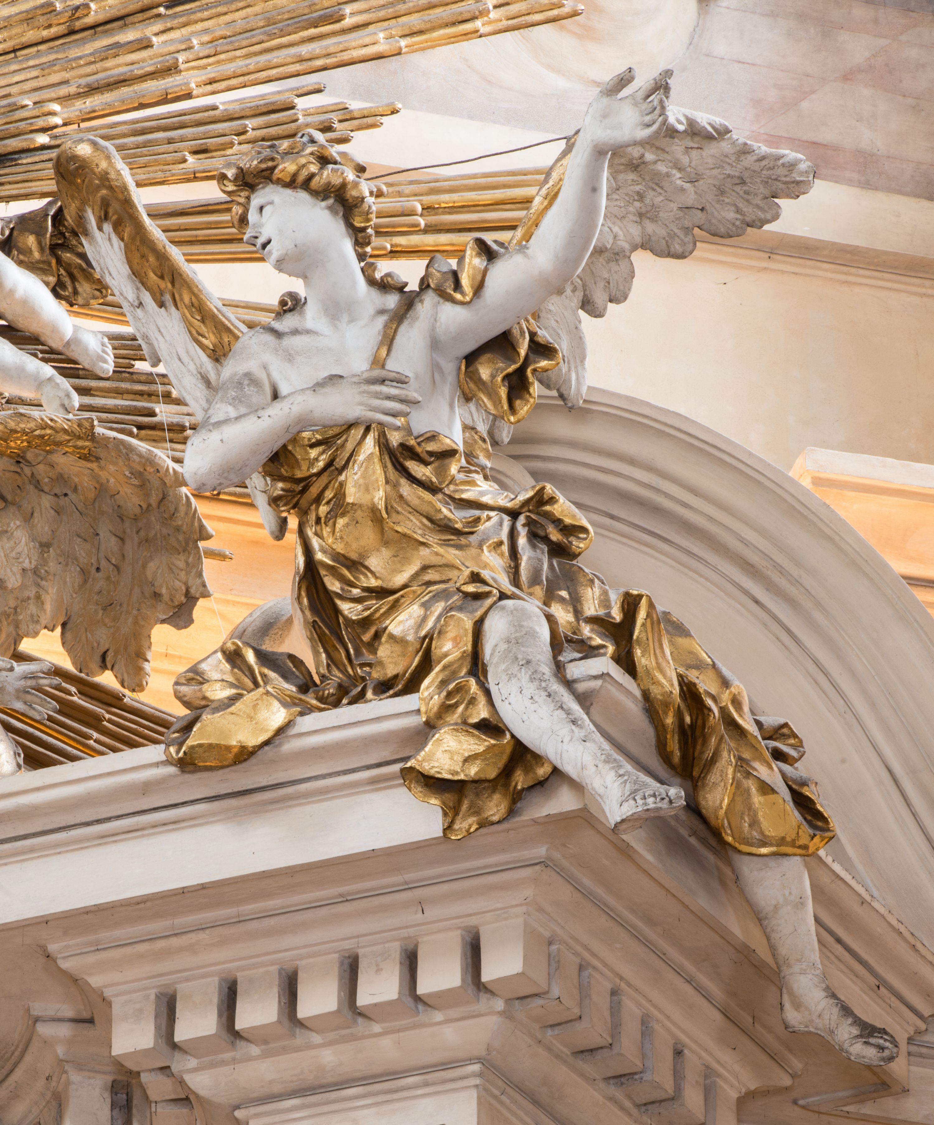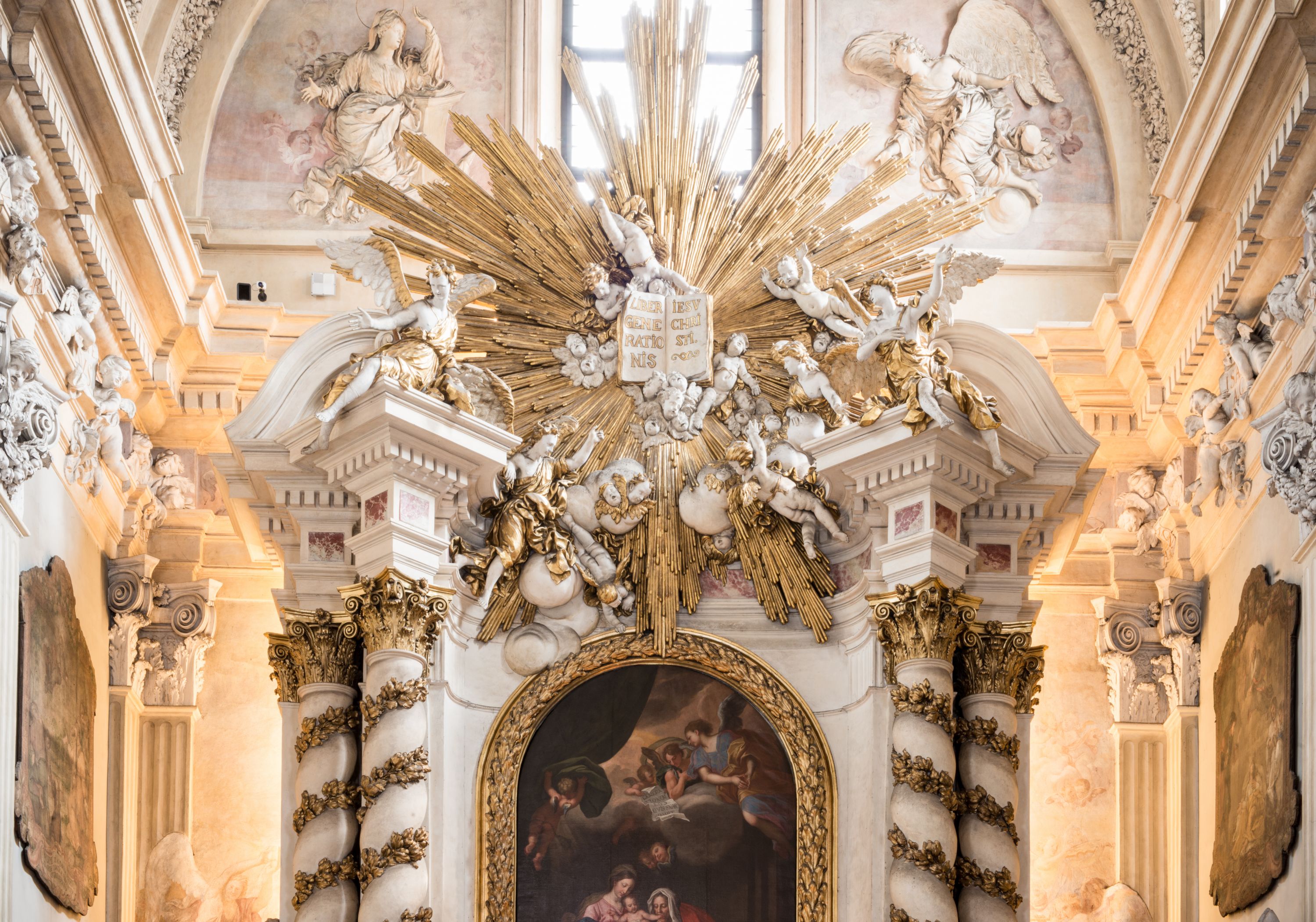 Ołtarz główny w kolegiacie św. Anny w Krakowie jest jednym z najwybitniejszych dzieł małej architektury dojrzałego baroku na ziemiach polskich. Jego geneza z pewnością sięga dzieł włoskich, ale jednego, konkretnego wzoru nie udało się dotychczas wskazać, co świadczy o wysokich umiejętnościach i twórczym podejściu do pracy autora projektu, którym był Baltazar Fontana. Motyw skręconych kolumn zaczerpnął z konfesji św. Piotra w bazylice watykańskiej, a charakterystyczną ogromną glorię w partii zwieńczenia na tle okna z oprawy tronu św. Piotra w tym samym kościele. W rzymskim tronie św. Piotra widoczne są figury czterech ojców Kościoła, które niewątpliwie były źródłem inspiracji dla rzeźb św. Wojciecha i św. Stanisława. Fontana, jak żaden z wcześniej działających w Polsce artystów, potrafił wykorzystać w swoich dziełach światło. W tym przypadku promienie padające z okna w ścianie zamykającej prezbiterium w określonych porach dnia, dopełniają efekt glorii wykonanej ze stiuku i pozłoconej. Krakowski ołtarz stał się dla Fontany punktem wyjścia do wykonania monumentalnego ołtarza św. Benedykta w kościele Cystersów w Velehradzie i ołtarza głównego kościoła Premonstratensów na Świętym Kopcu koło Ołomuńca. Wykorzystał w nich motyw par kolumn, glorii w zwieńczeniu oraz wysokich figury świętych wysuniętych ku przodowi. Motyw glorii w partii zwieńczenia stał się z kolei popularny w Małopolsce w pierwszej połowie XVIII wieku.