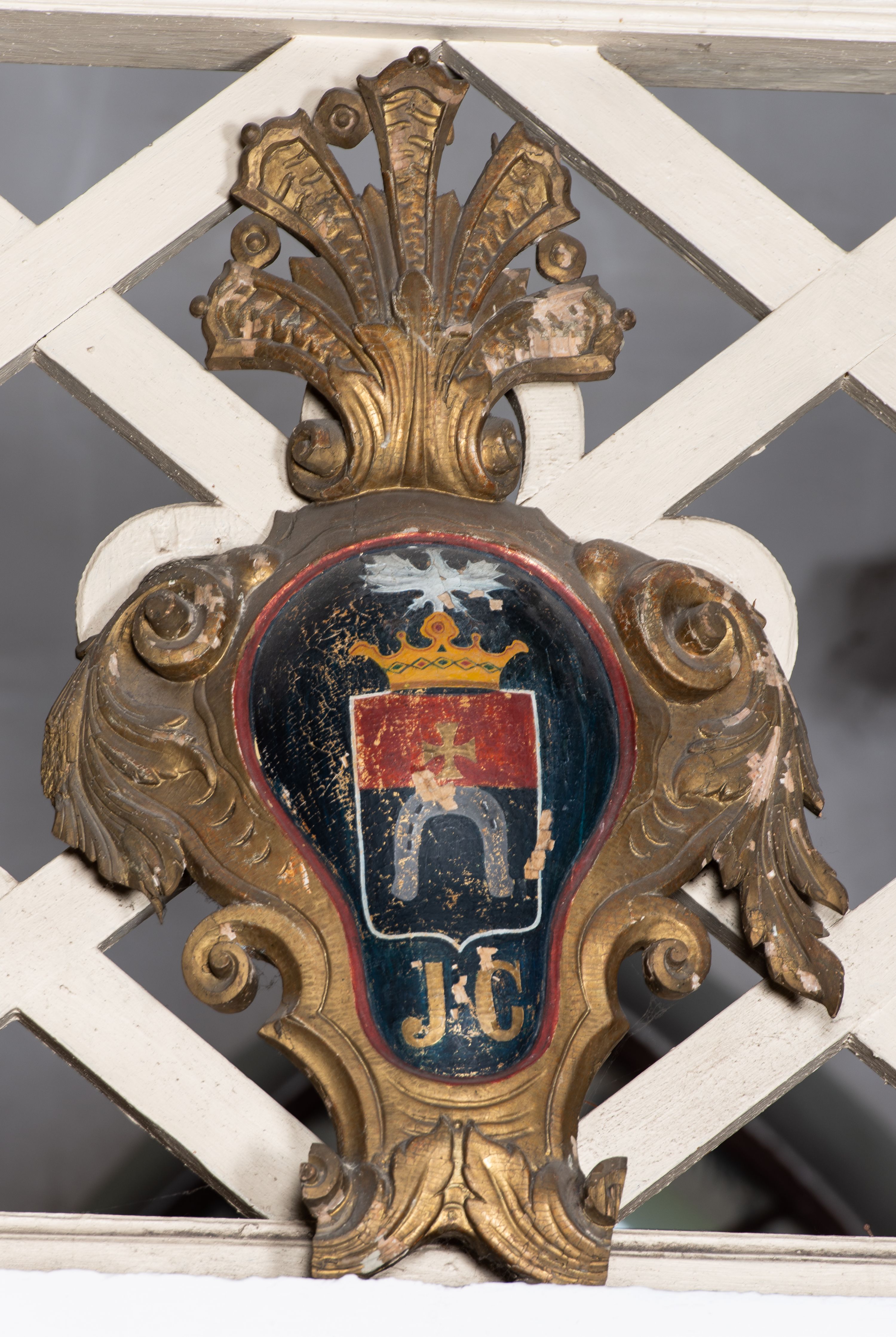 Struktura polichromowana w kolorze jasnozielonym, z brązowymi detalami, czerwonymi kapitelami; kolumny, ornamentyka i profile złocone, gloria i obłoki srebrzone.