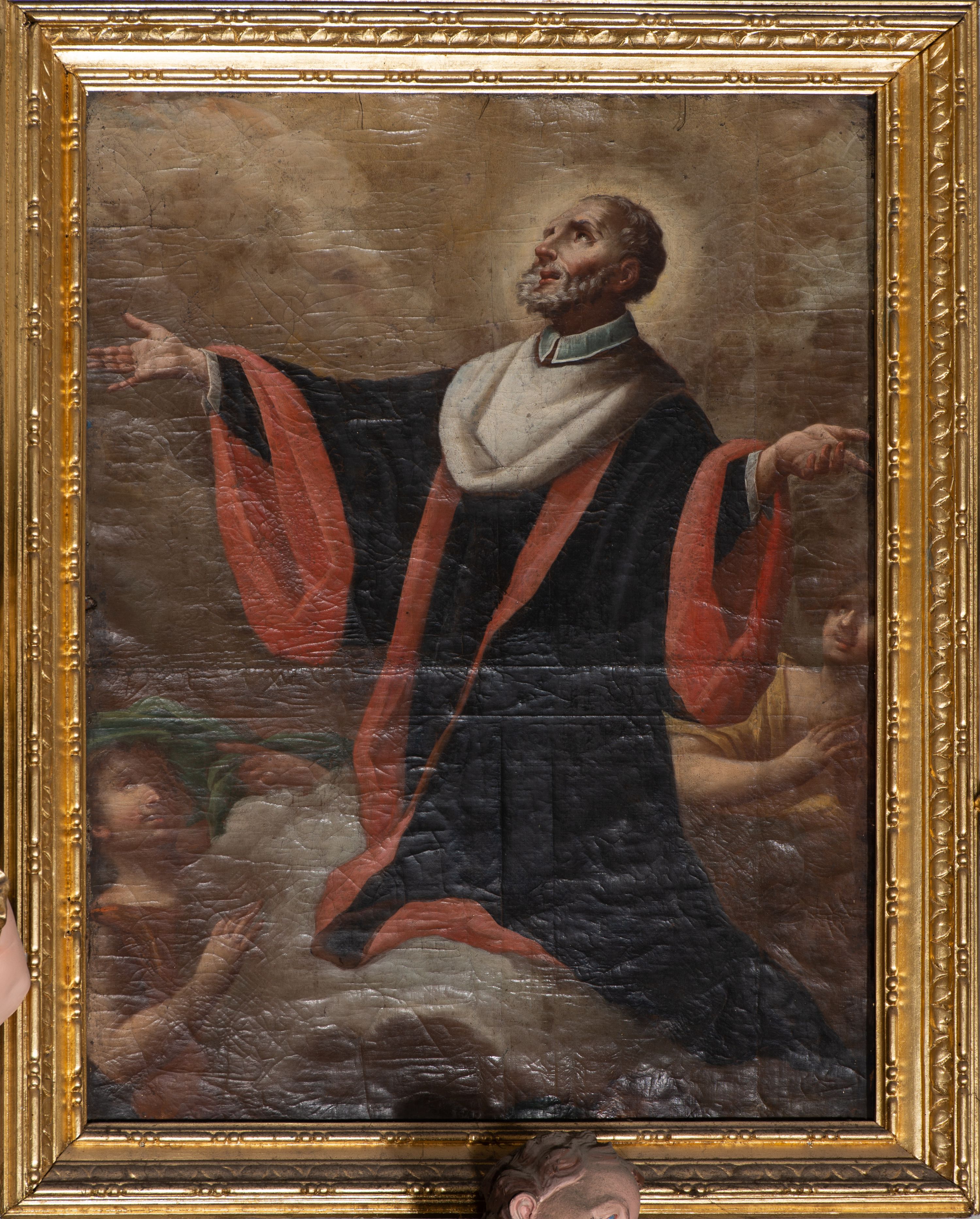 Zwieńczenie w formie stojącego prostokąta, flankowane parą zdwojonych pilastrów, zwróconych na zewnątrz, zamknięte odcinkiem gzymsu dekorowanym lambrekinem, ujęte obłokami z dwiema parami siedzących puttów. Powyżej medalion z okiem Opatrzności, ujętym obłokami i uskrzydlonymi główkami anielskimi, w glorii promienistej. W polu zwieńczenia obraz św. Jana Kantego w formie stojącego prostokąta, ujęty profilowaną ramą.