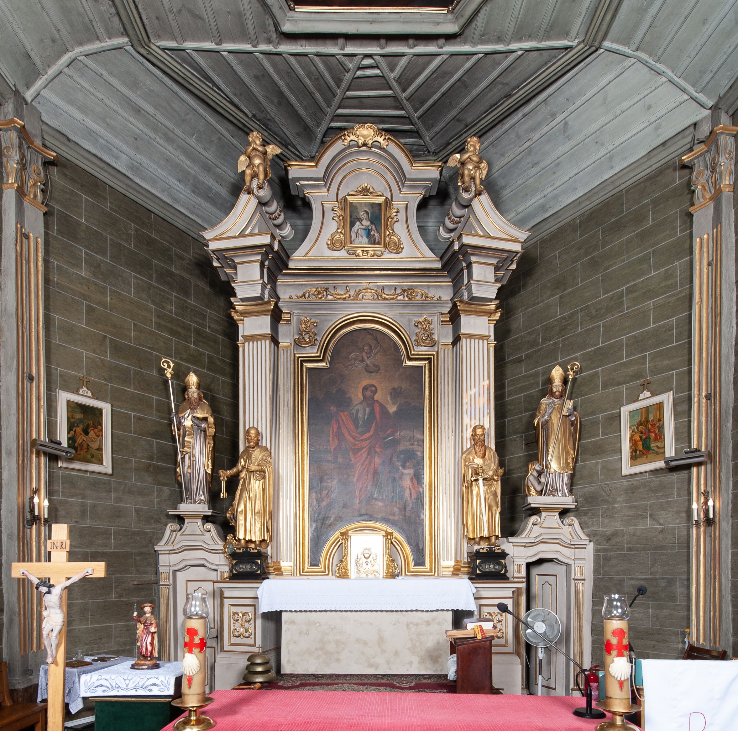 Retabulum ołtarzowe z połowy XVIII wieku, dzieło nieokreślonego warsztatu małopolskiego.