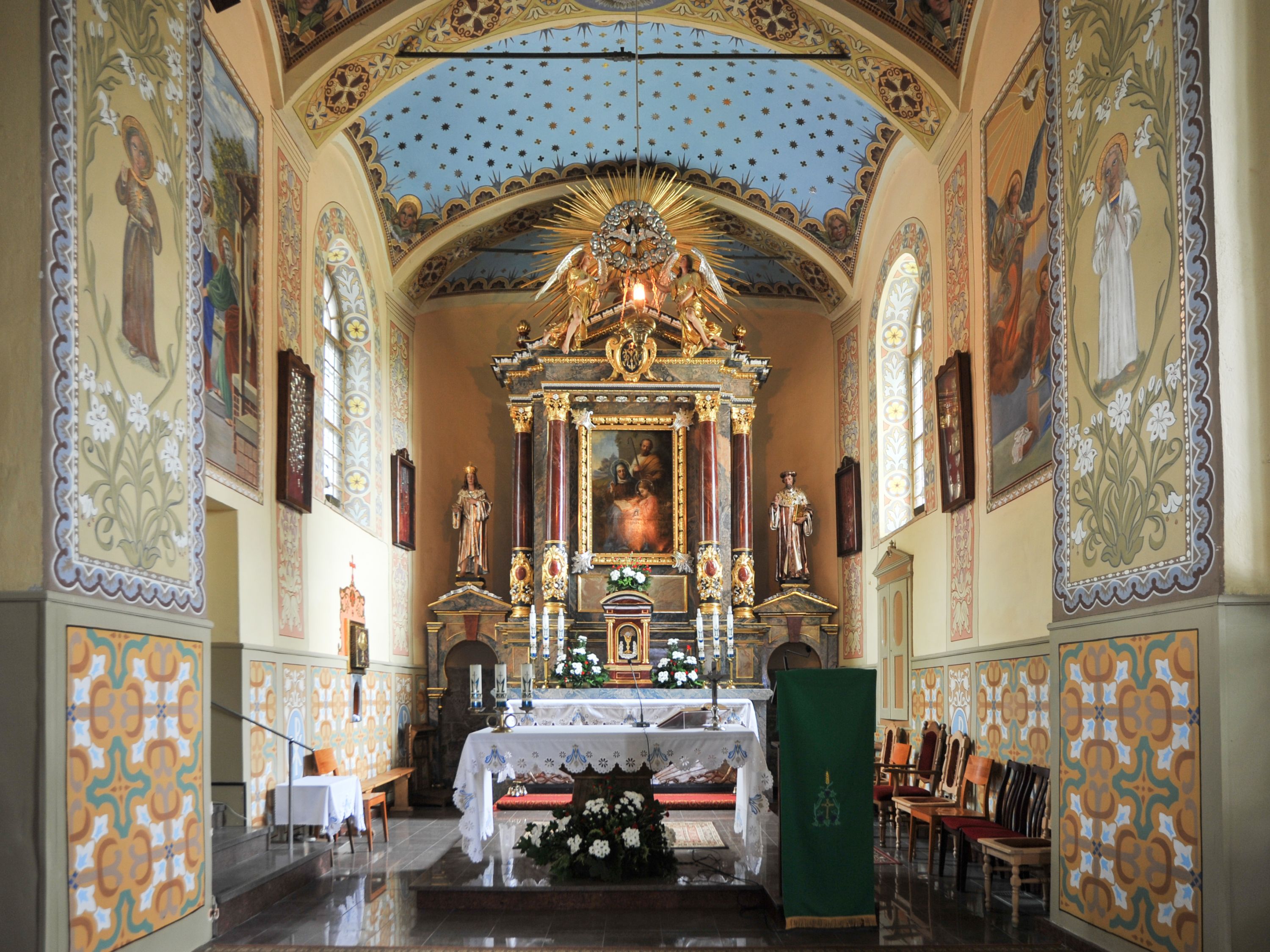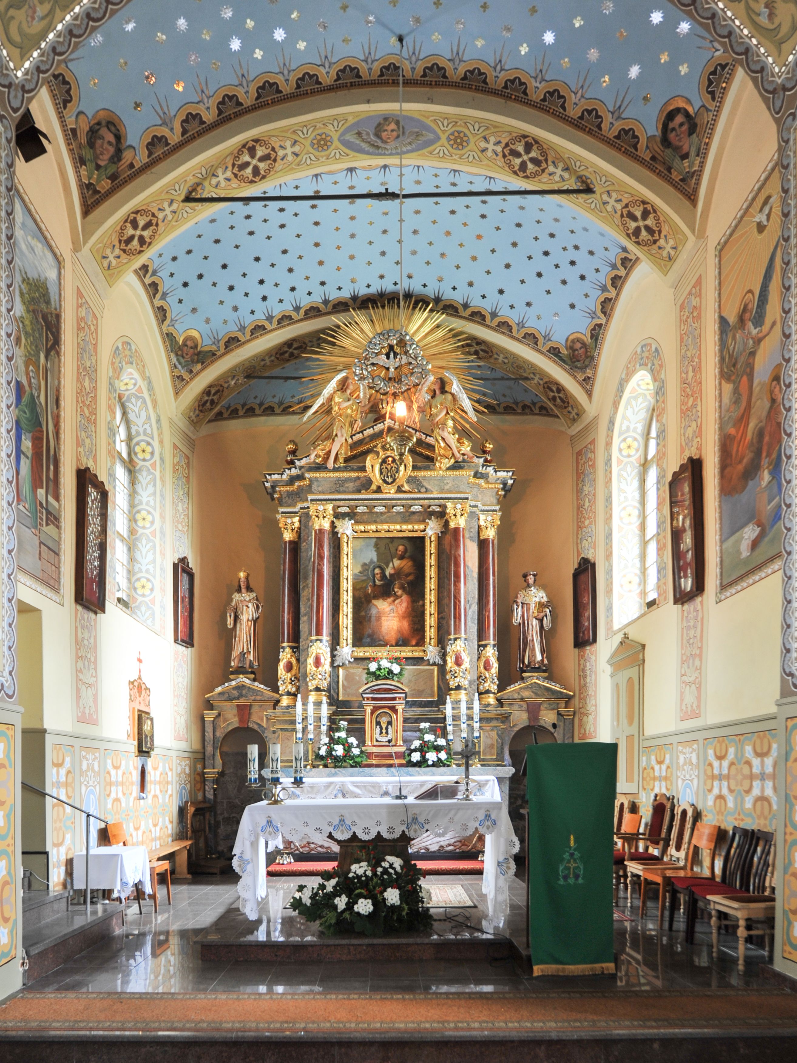 Ołtarz główny powstał podczas budowy kaplicy w latach 1862-1866. Znajduje się w nim słynąca łaskami kopia obrazu Matki Boskiej Częstochowskiej namalowana przez Błażeja Luksa z Częstochowy i ofiarowana w 1868 roku przez Franciszkę Witkowską, zasłaniana obrazem przedstawiającym Marię z rodzicami.