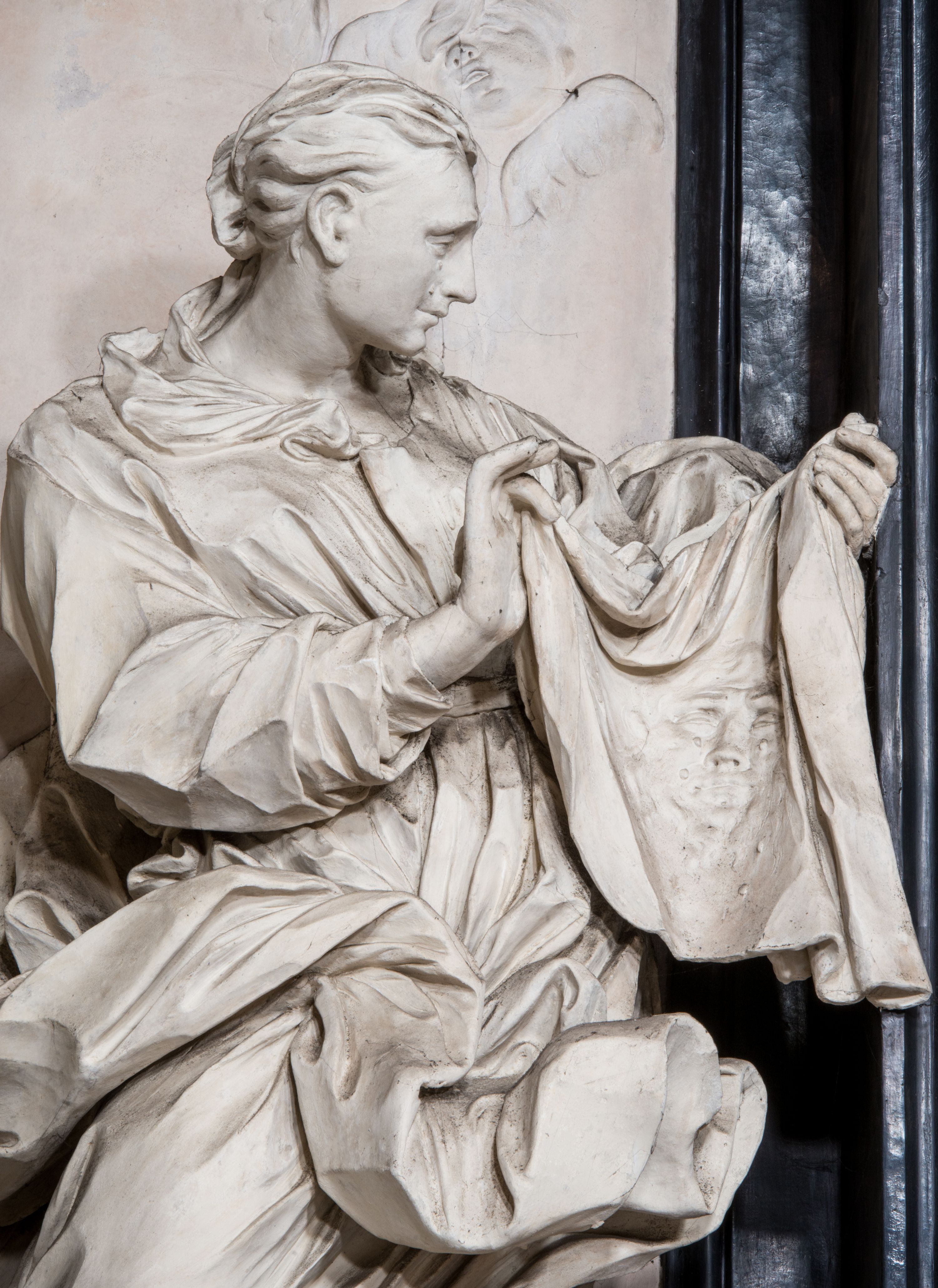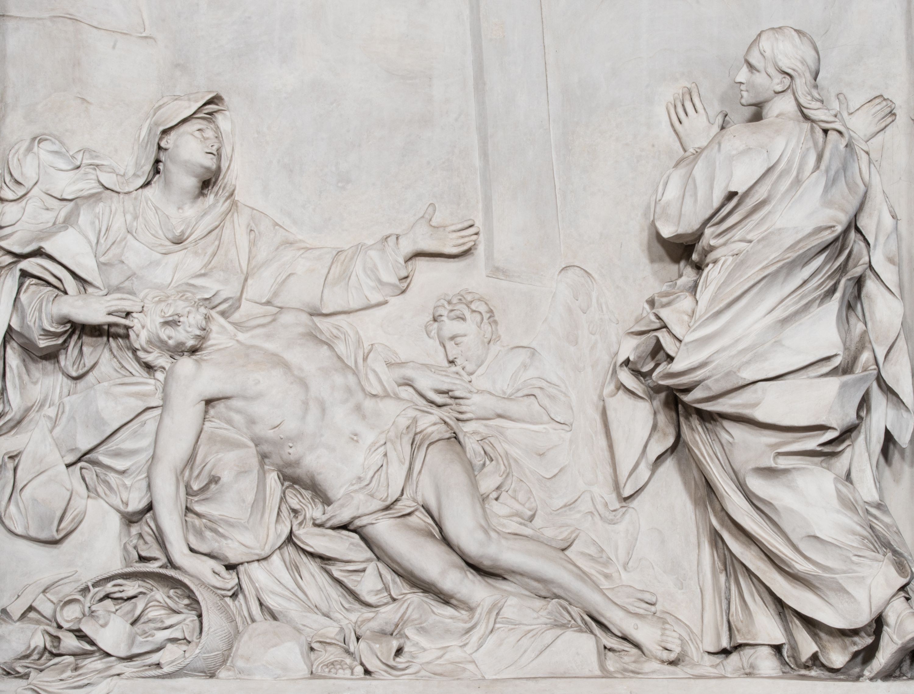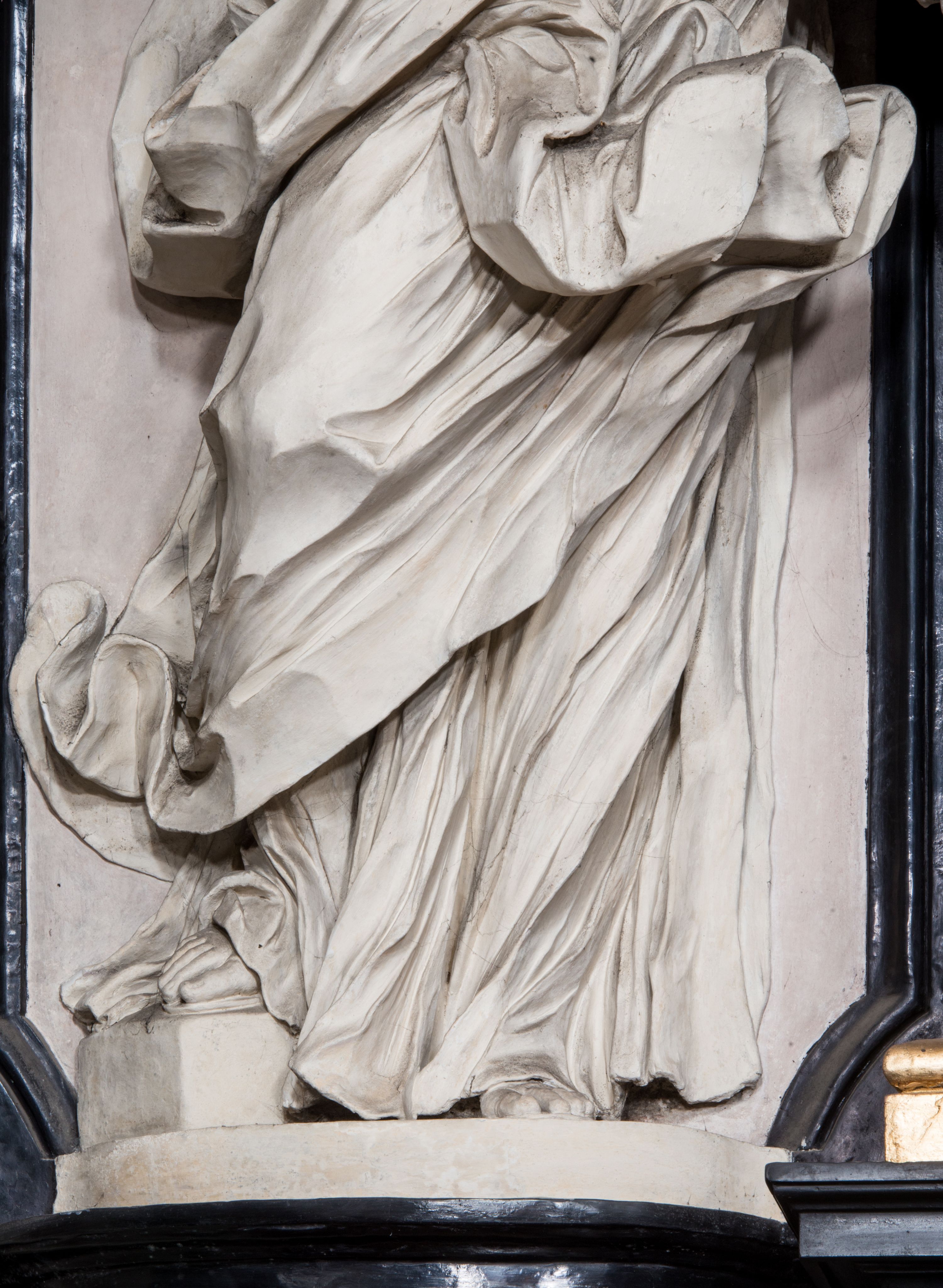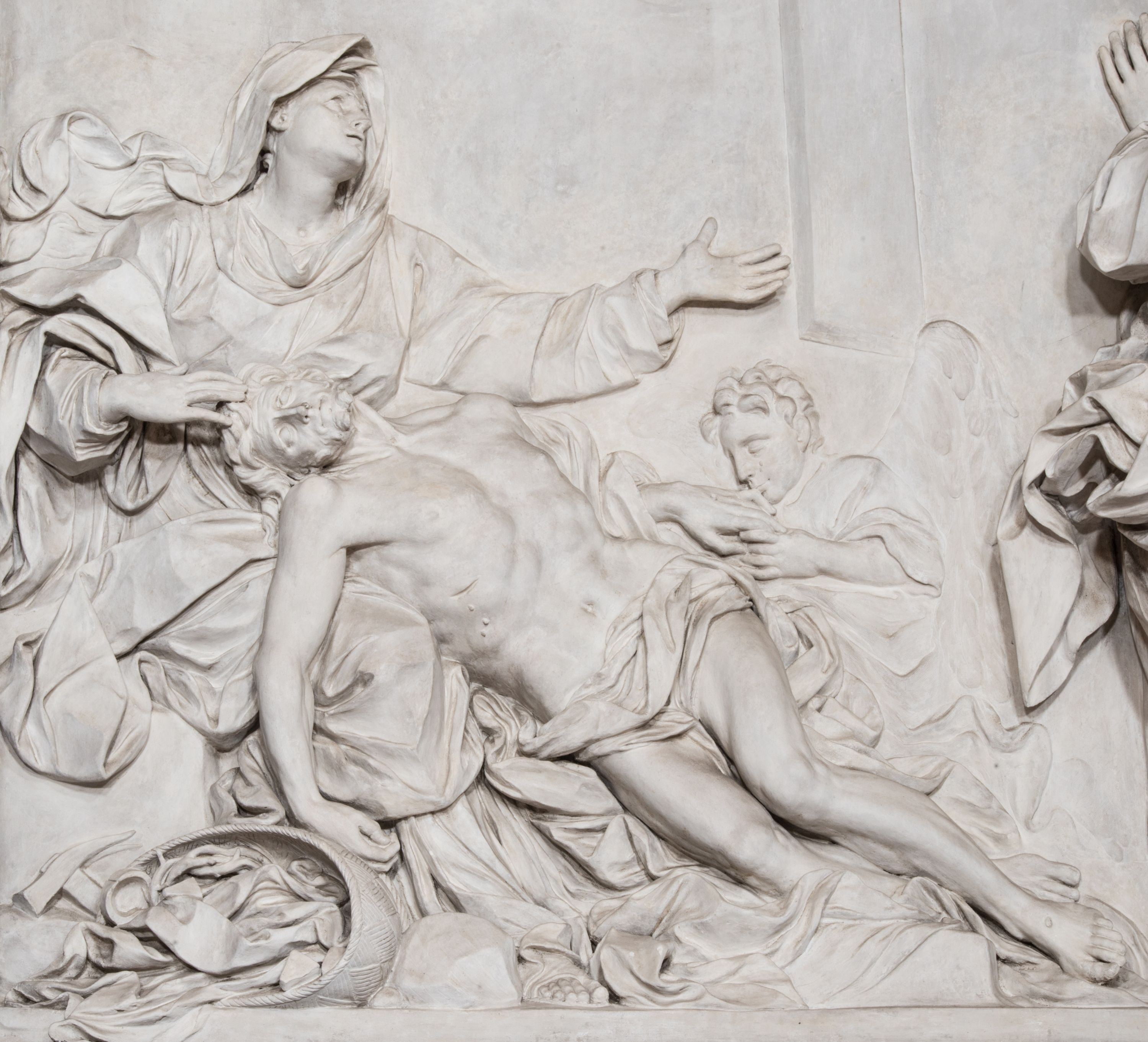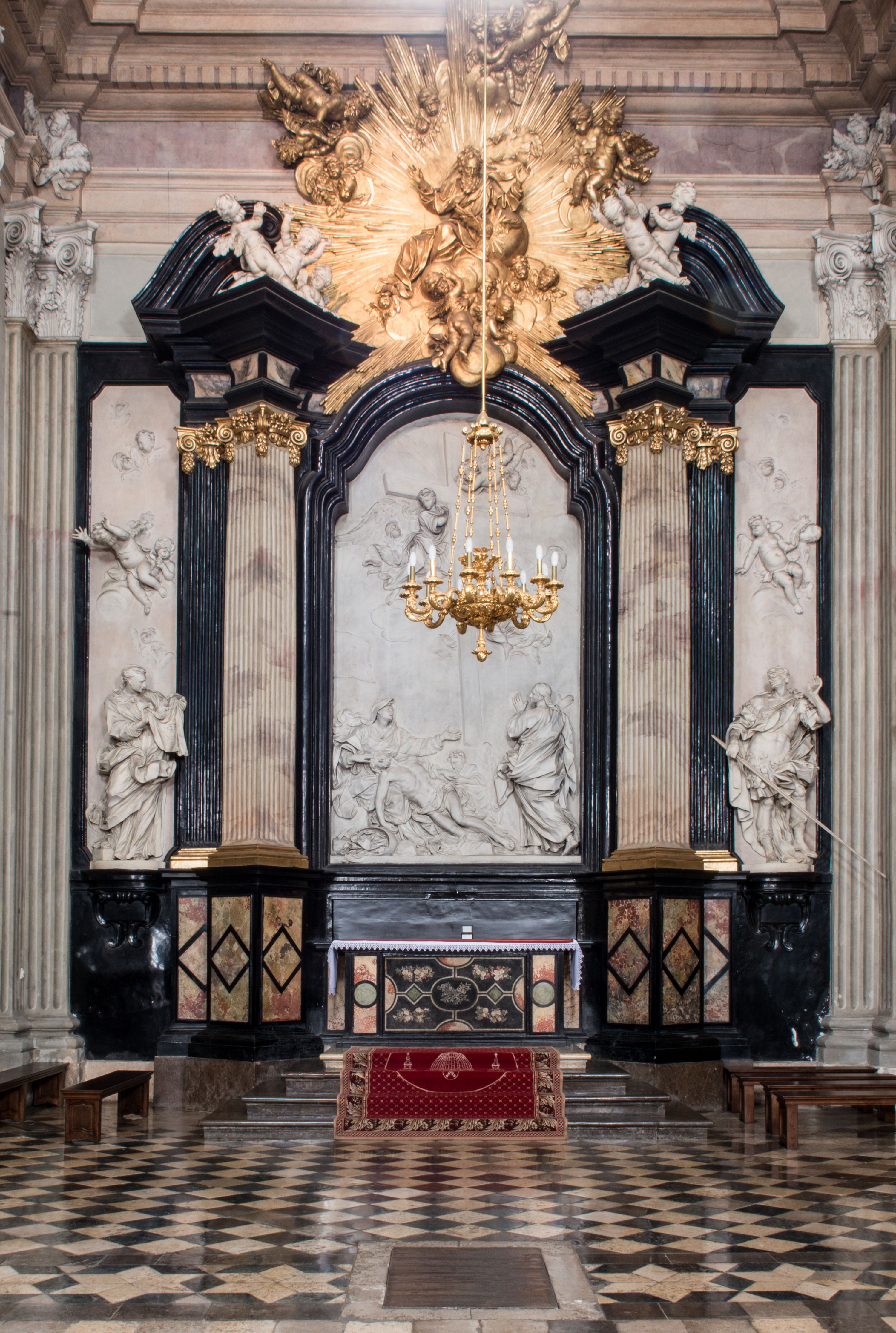 Powstały w latach 1698–1703 ołtarz Krzyża Świętego jest dziełem warsztatu kierowanego przez Baltazara Fontanę. Stanowi przykład recepcji rzymskich dzieł Gian Lorenza Berniniego w zakresie ekspresyjnego traktowania draperii oraz naśladowania rzymskich dzieł. W scenie Chwały Krzyża z Matką Boską i leżącym na jej kolanach martwym Chrystusem oraz unoszonym przez anioły krzyżem artysta zainspirował się dziełem Domenica Guidiego, ołtarzem w kaplicy Palazzo del Monte di Pietà w Rzymie. Sama Pietà przywodzi na myśl obraz innego rzymskiego artysty, malarza Annibale Carracciego. Ołtarz jest jednym z najwybitniejszych dzieł Fontany i jednym z najciekawszych przykładów recepcji rzeźby rzymskiej w Polsce.