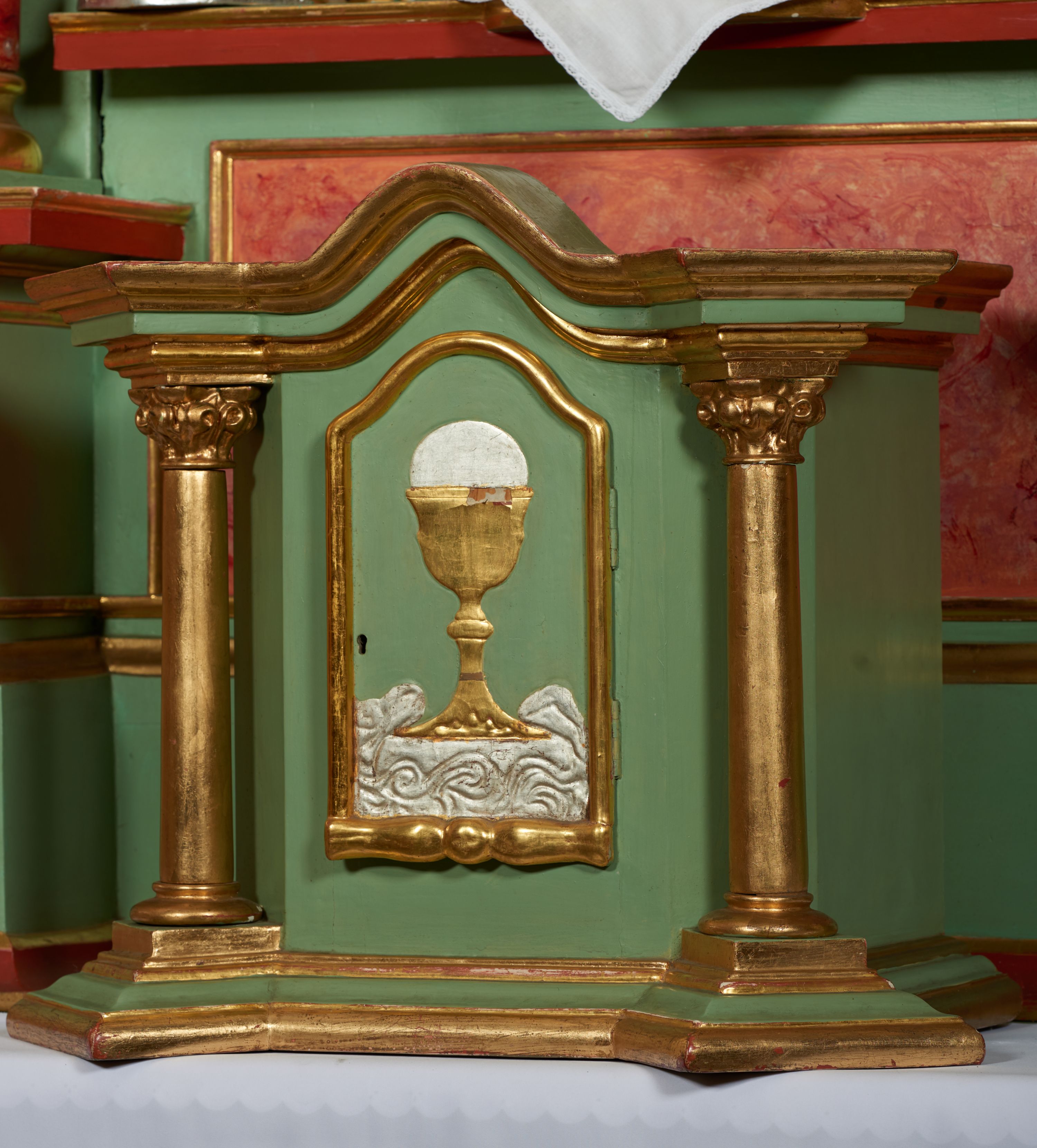 W dokumentach powizytacyjnych z 1748 roku opisywany jest w tym miejscu ołtarz z przedstawieniem św. Józefa. W inwentarzu z początku XX wieku określono go jako ołtarz z obrazem Najświętszego Serca Pana Jezusa. W 1968 roku struktura została przemalowana, a w 1986 roku zdemontowana i złożona w stodole. Nie udało się określić, kiedy ołtarz został odnowiony i wstawiony ponownie do wnętrza kościoła.