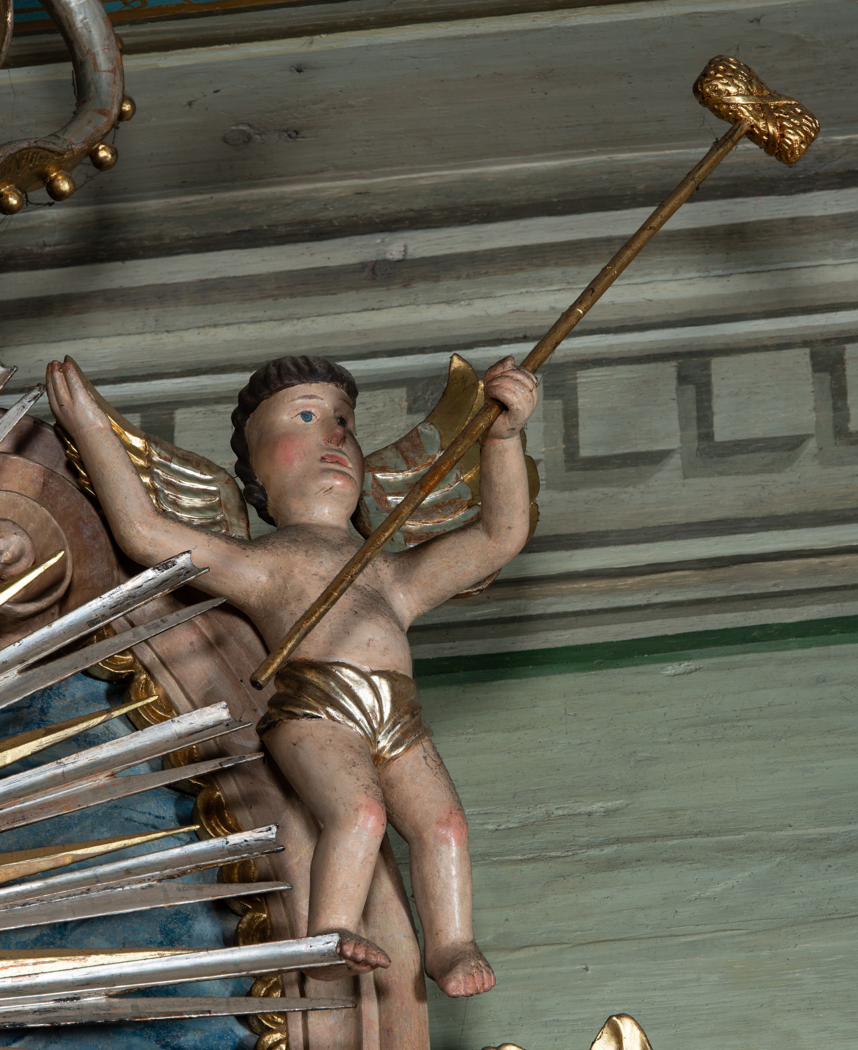 Ołtarz można zatem określić wciąż jako późnobarokowy i wskazać jako przykład sztuki prowincjonalnej, charakteryzującej się długim zapóźnieniem form, aż po początek XIX wieku, czyli około wiek dłużej. W strukturę wpleciono dodatkowo stojące na wyłamanych częściach belkowania wazony będące elementami zaczerpniętymi ze sztuki klasycystycznej oraz detale już stricte dziewiętnastowieczne – np. rozwinięte kwiaty współtworzące uszaki nastawy. Dekorujące zwieńczenie anioły stanowią przykład sztuki ludowej, cechuje je uproszczona budowa ciała, schematyczne ujęcie twarzy oraz sztywna poza.