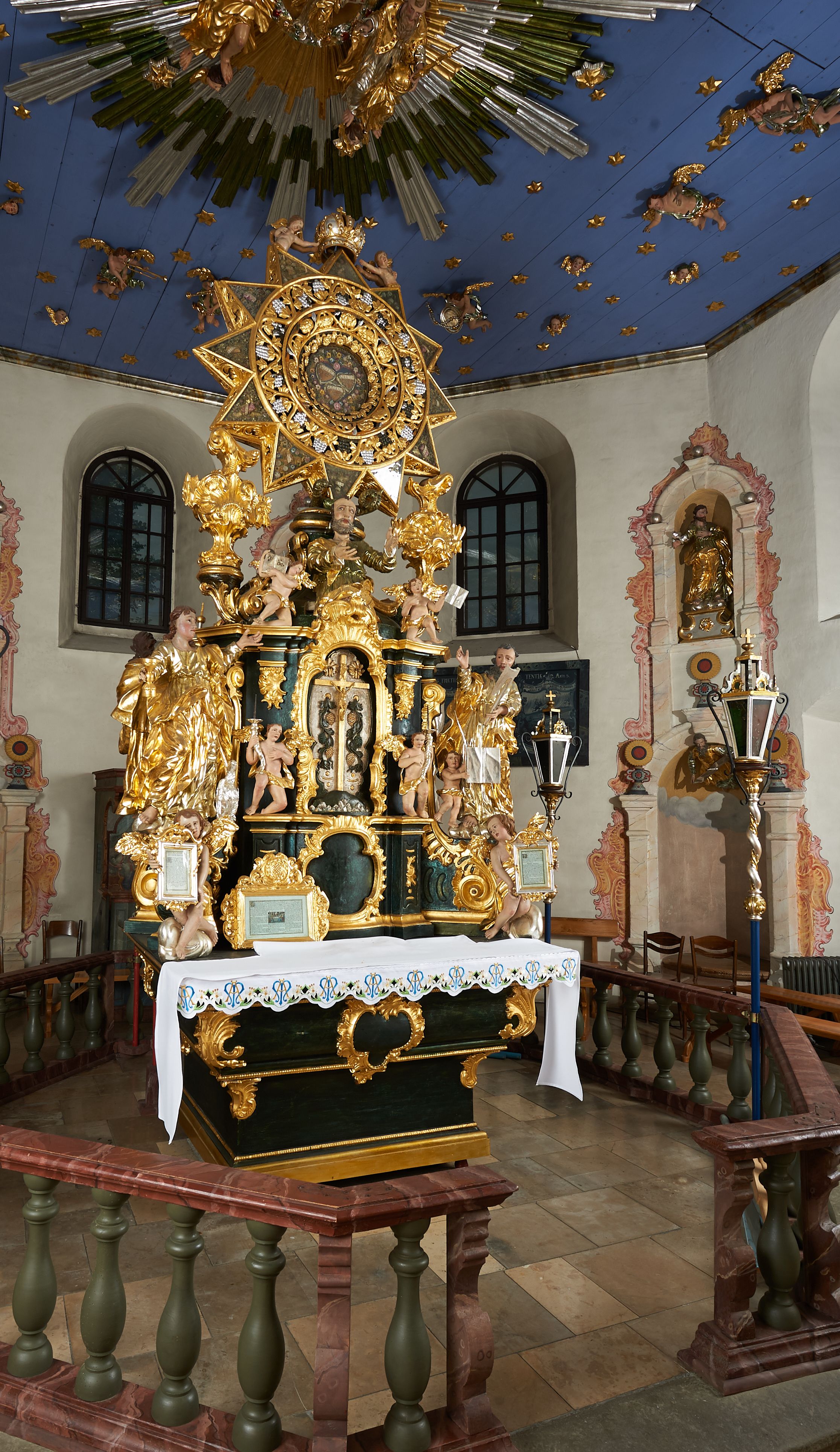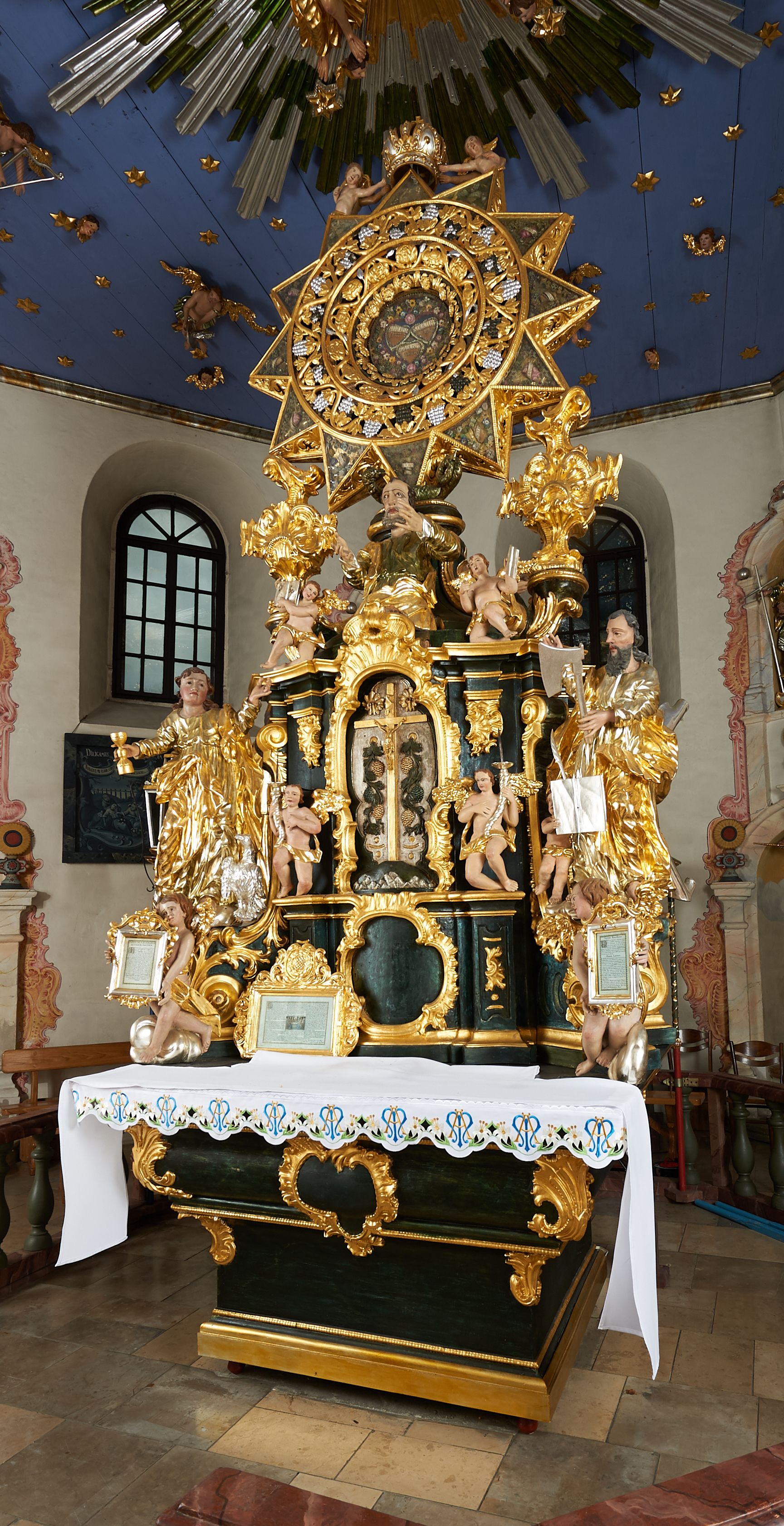 Sama gwiazda wieńcząca ołtarz odnosi się do jednego z najbardziej popularnych imion Marii – Gwiazda Zaranna.