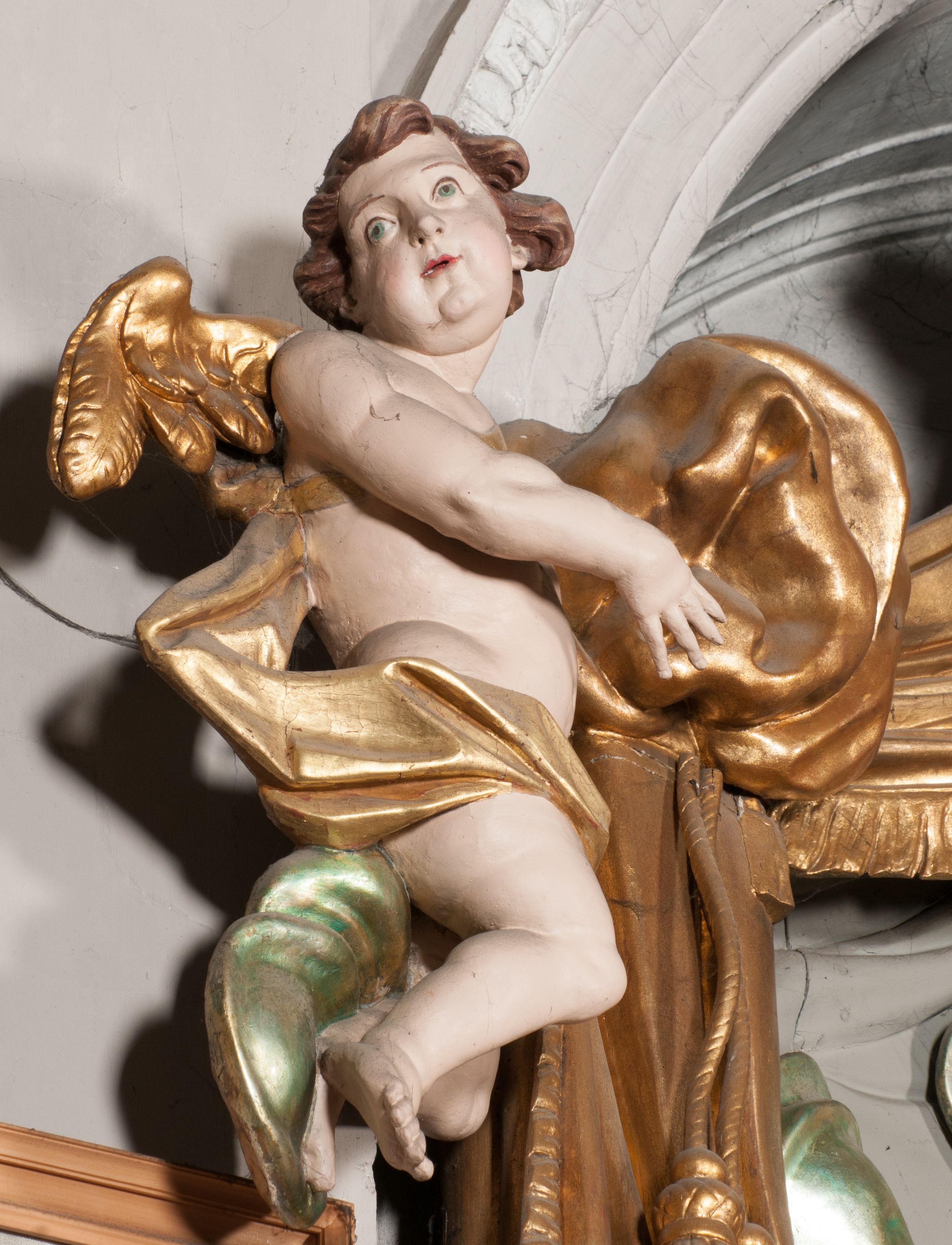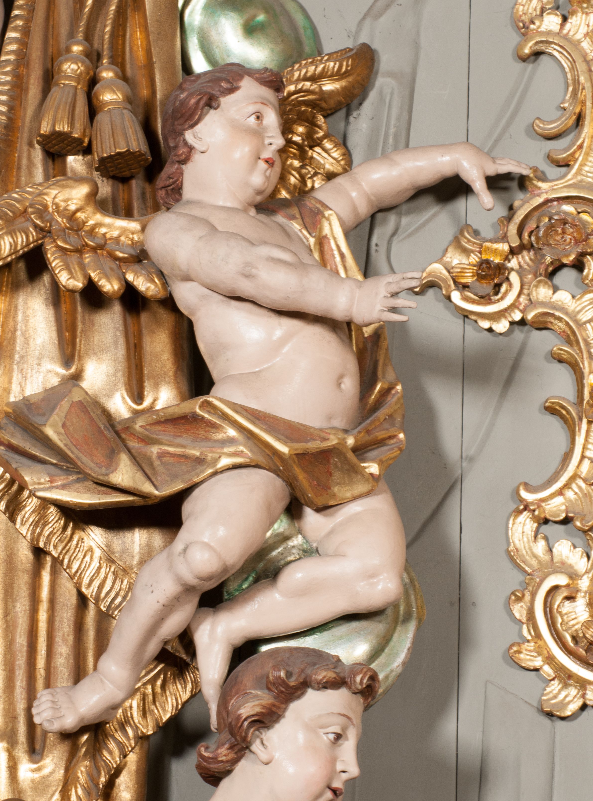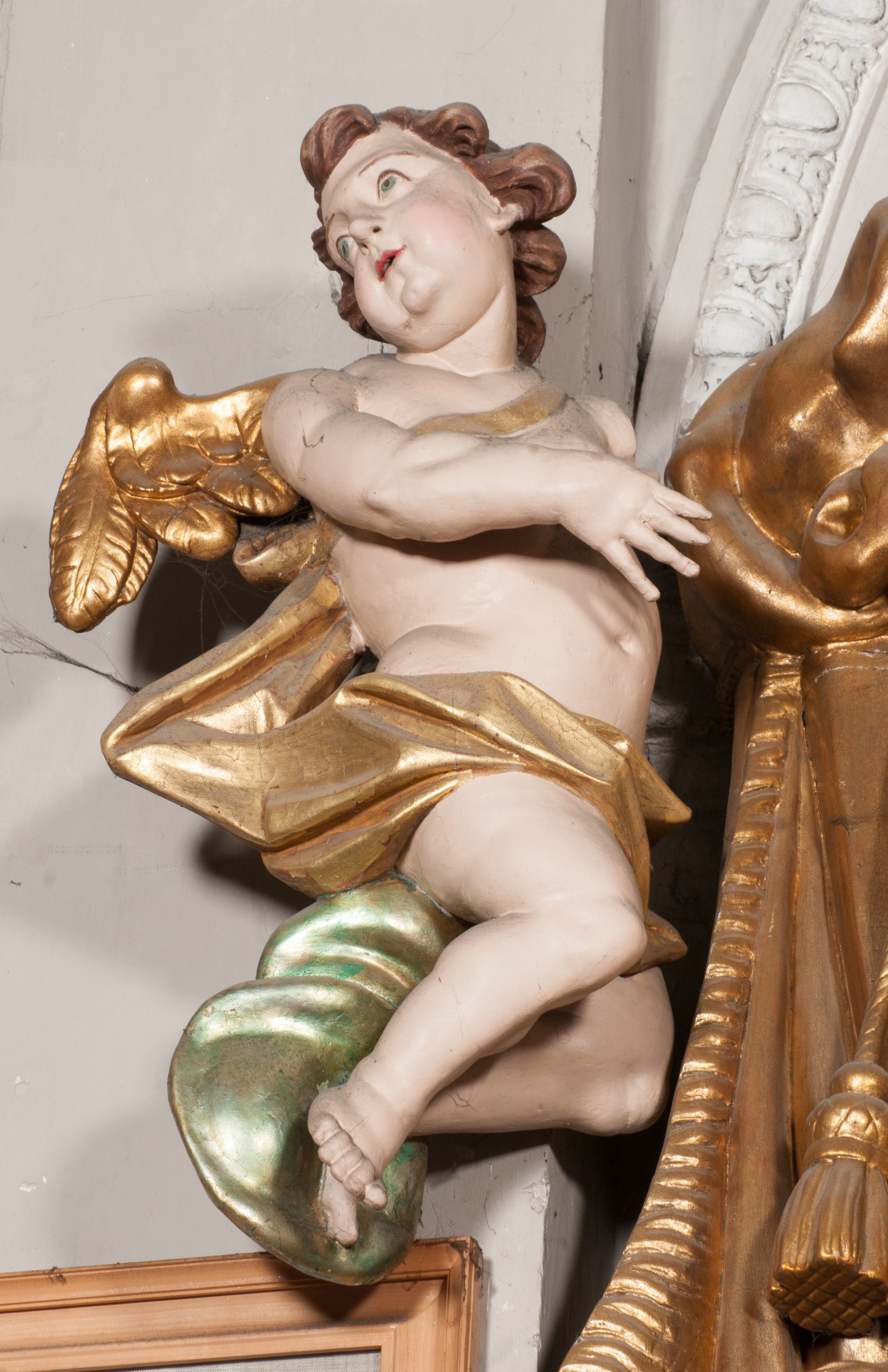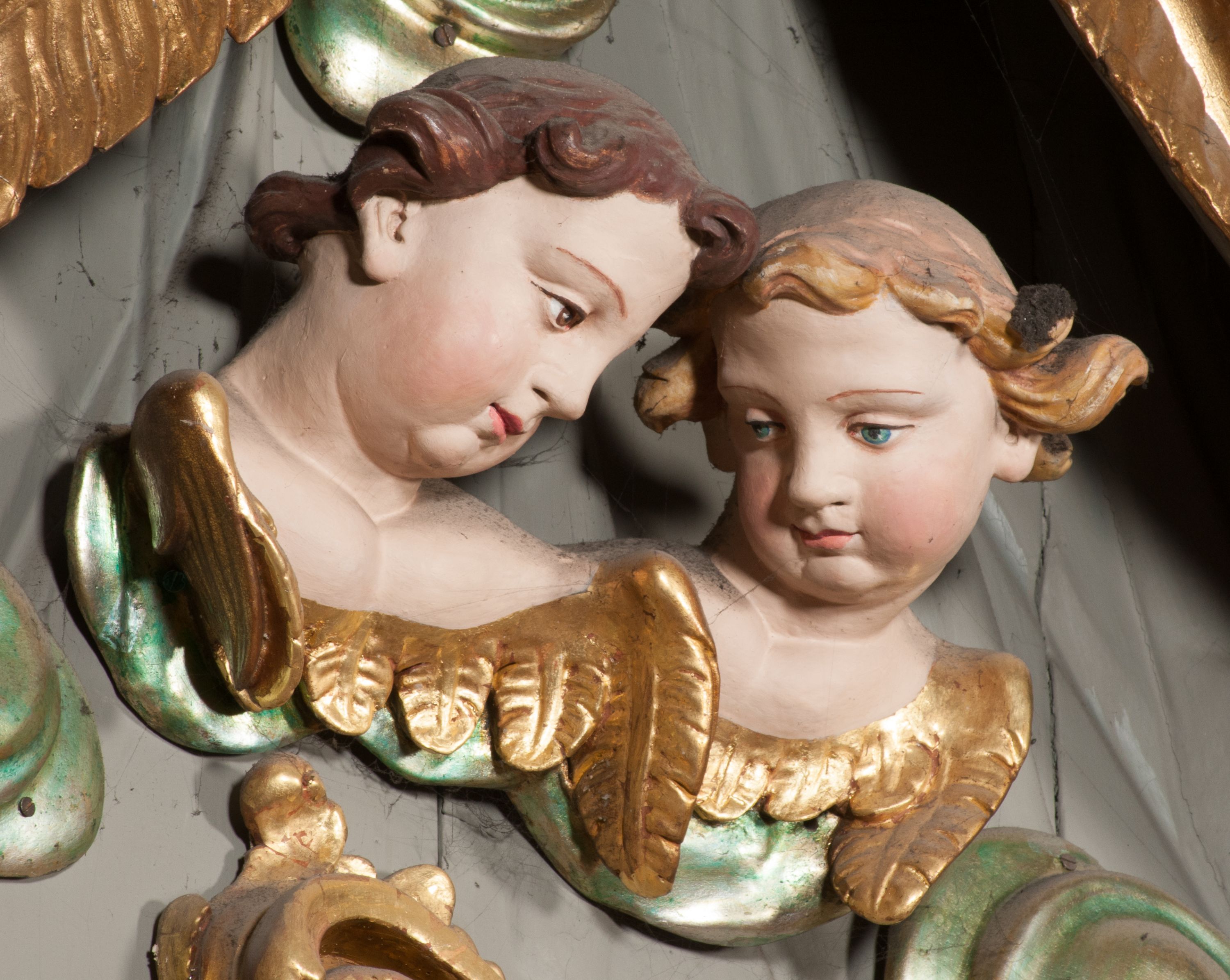 Zabrudzenia ołtarza, drobne przetarcia złoceń.