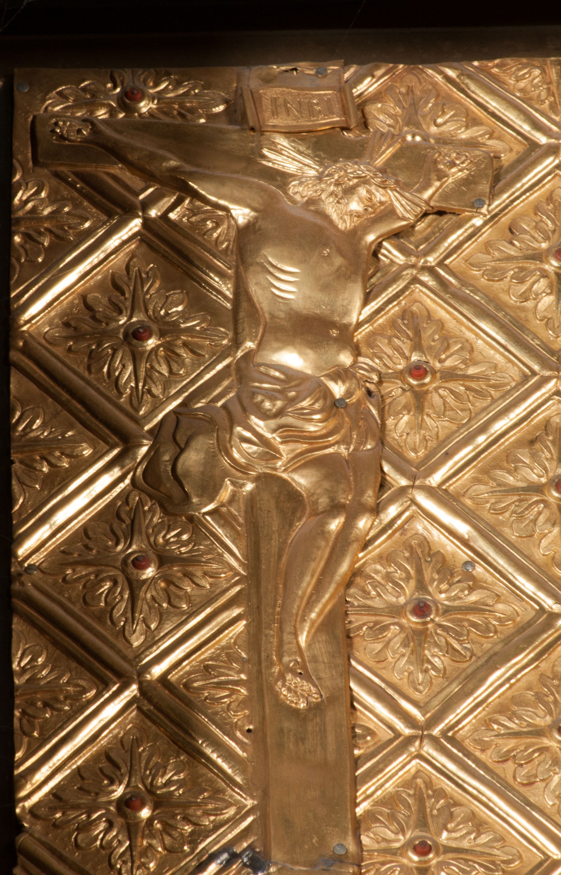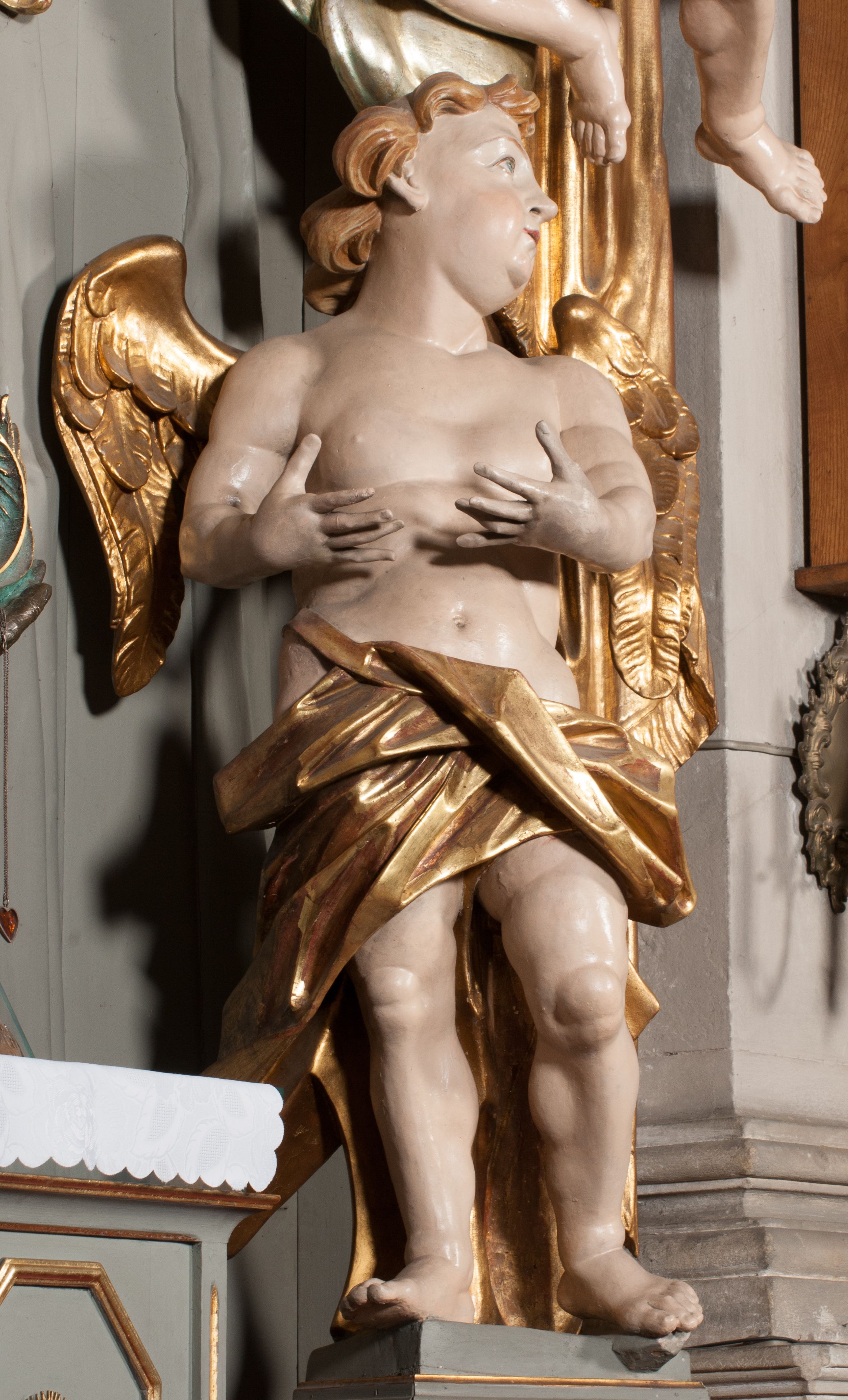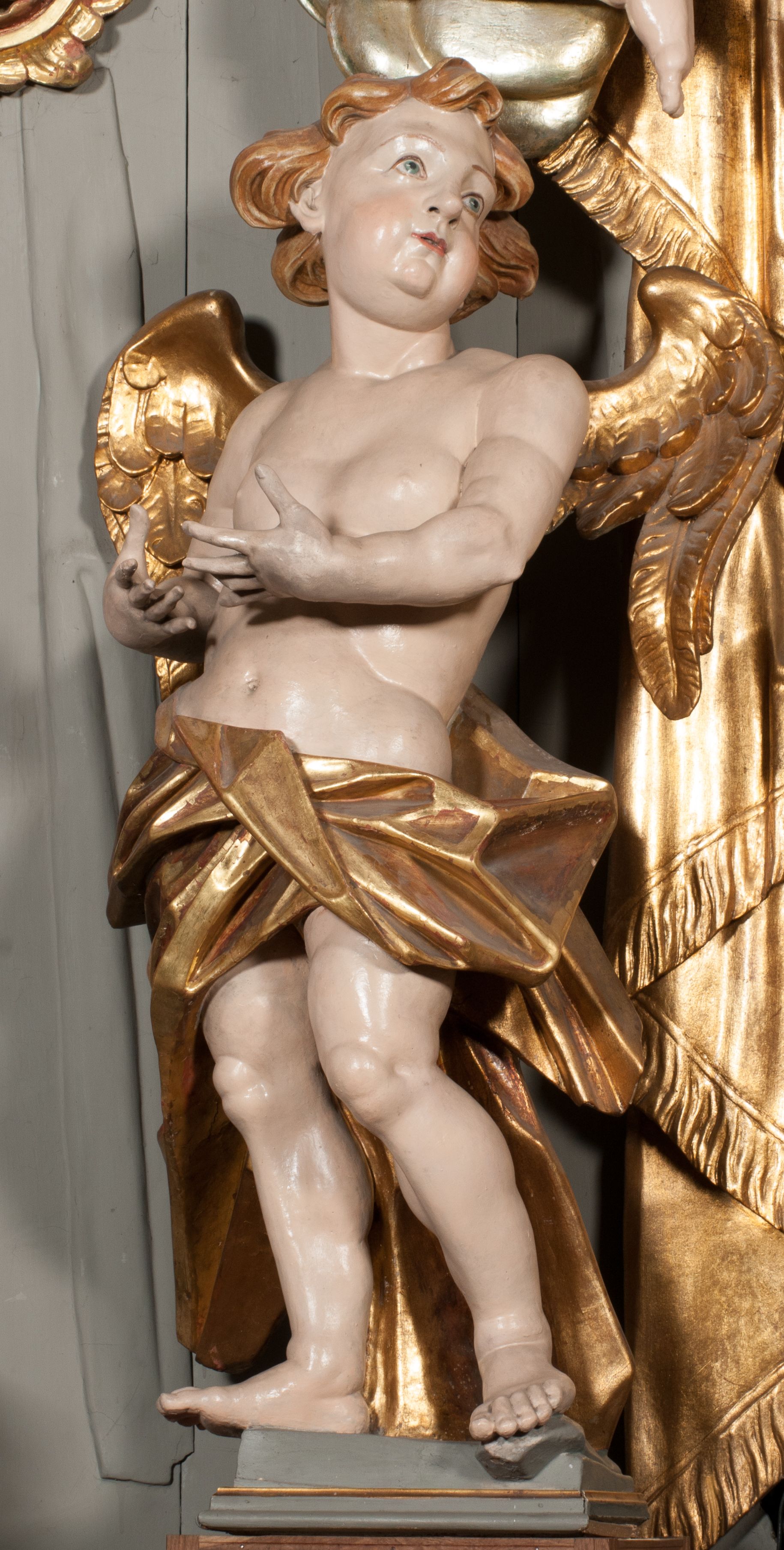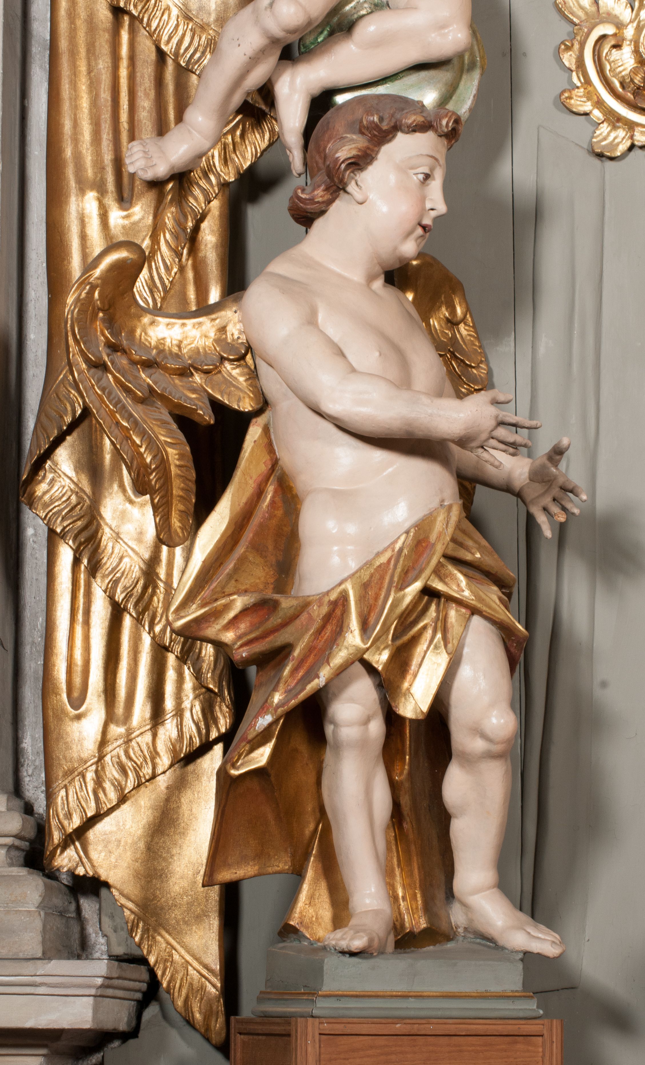 Zabrudzenia ołtarza, drobne przetarcia złoceń.