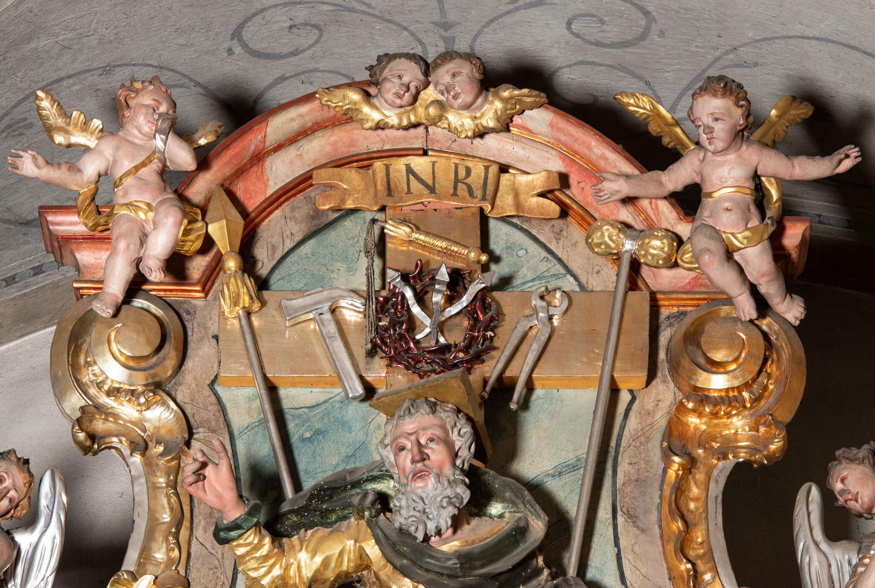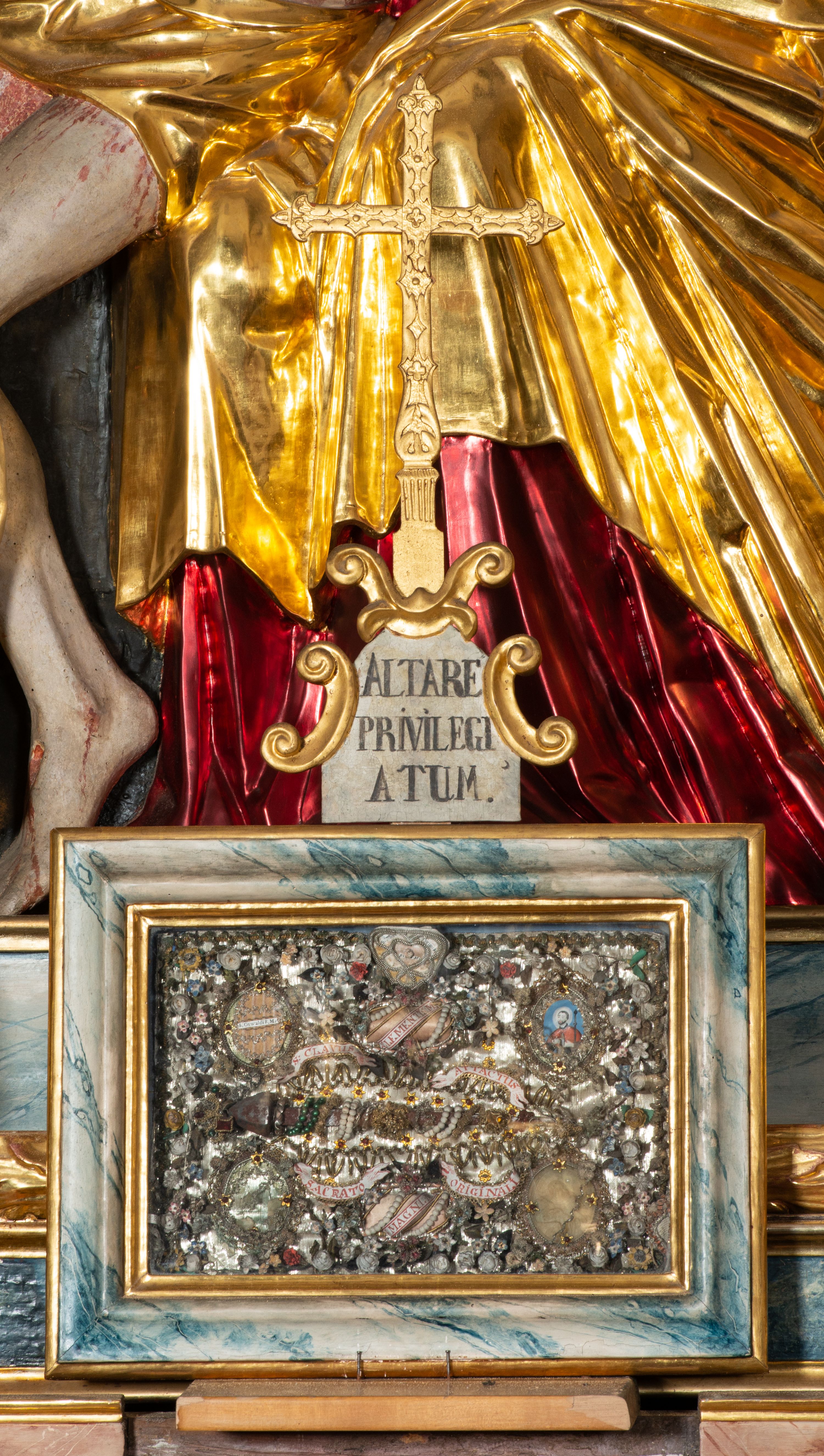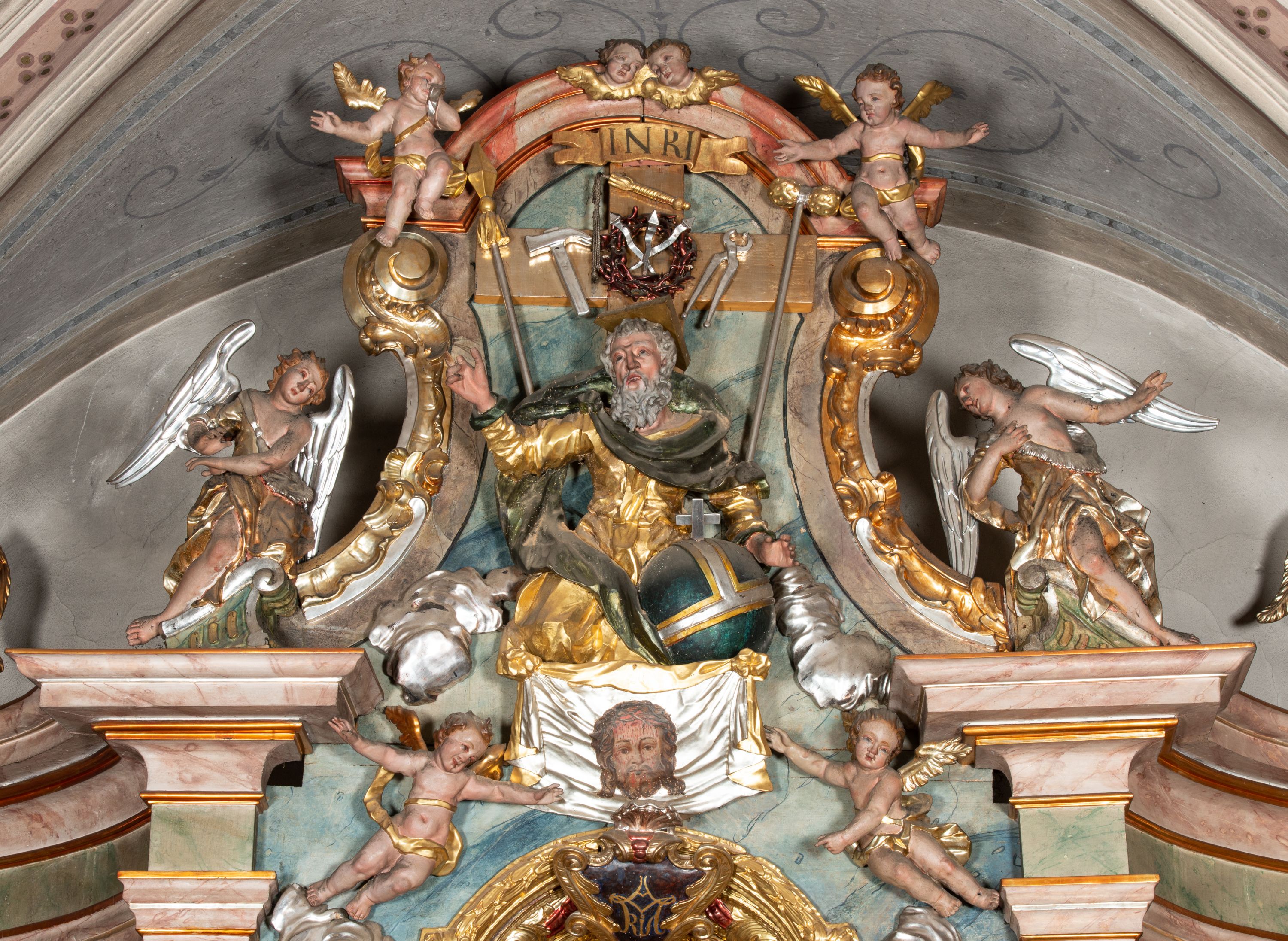 Rokokowy ołtarz zapewne z warsztatu Johannesa Feega z Kiežmarku. Nastawa prezentuje spójny, pasyjny program ikonograficzny.