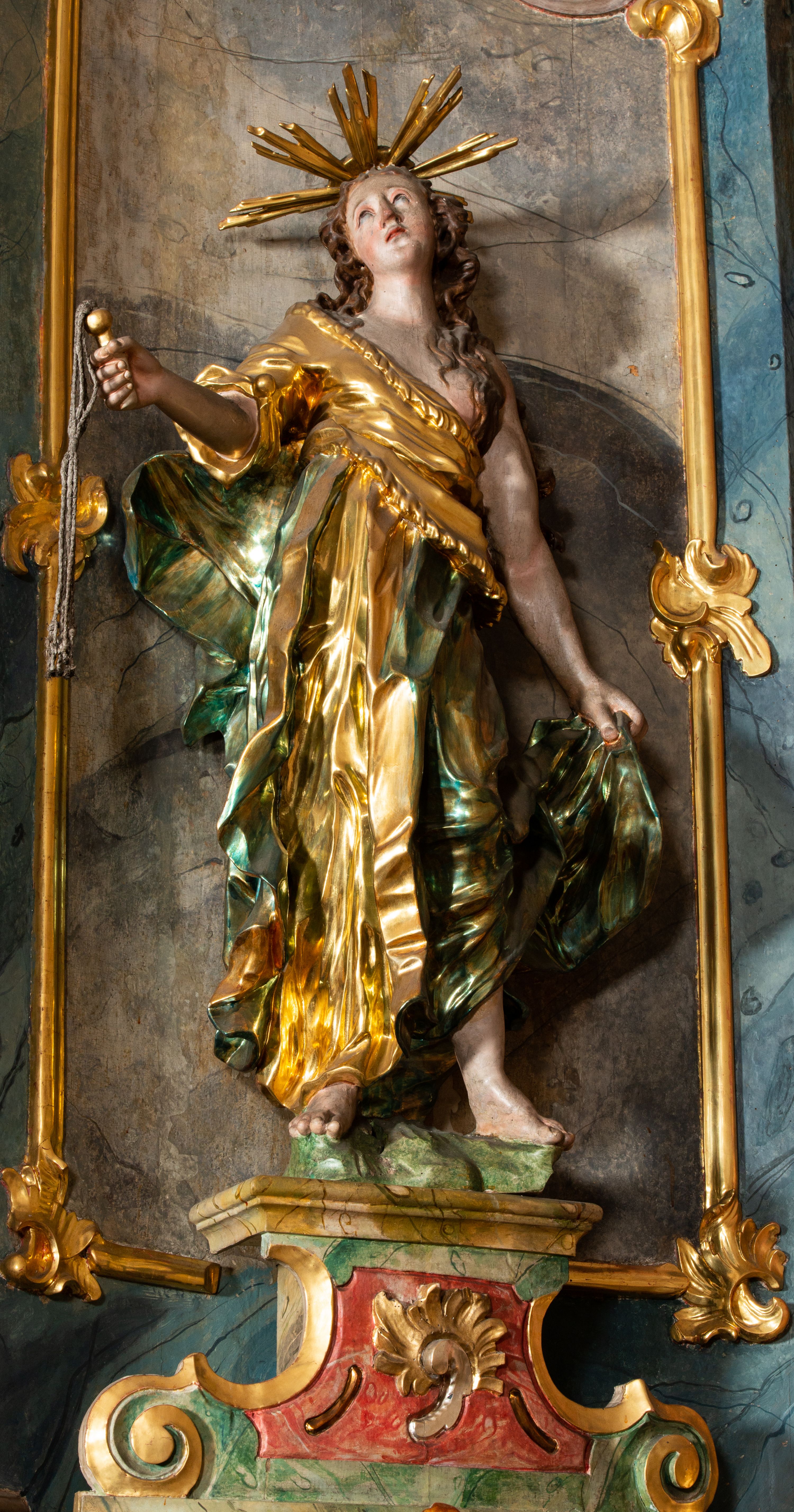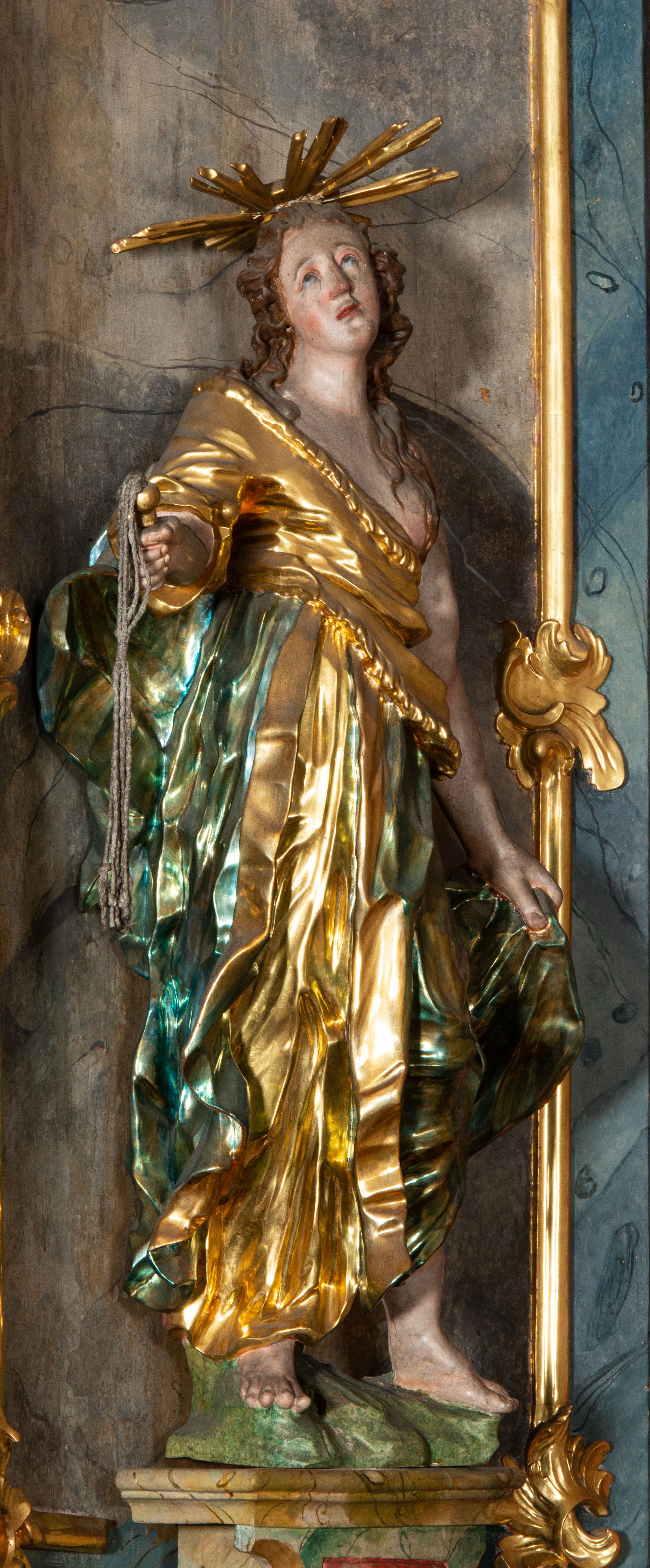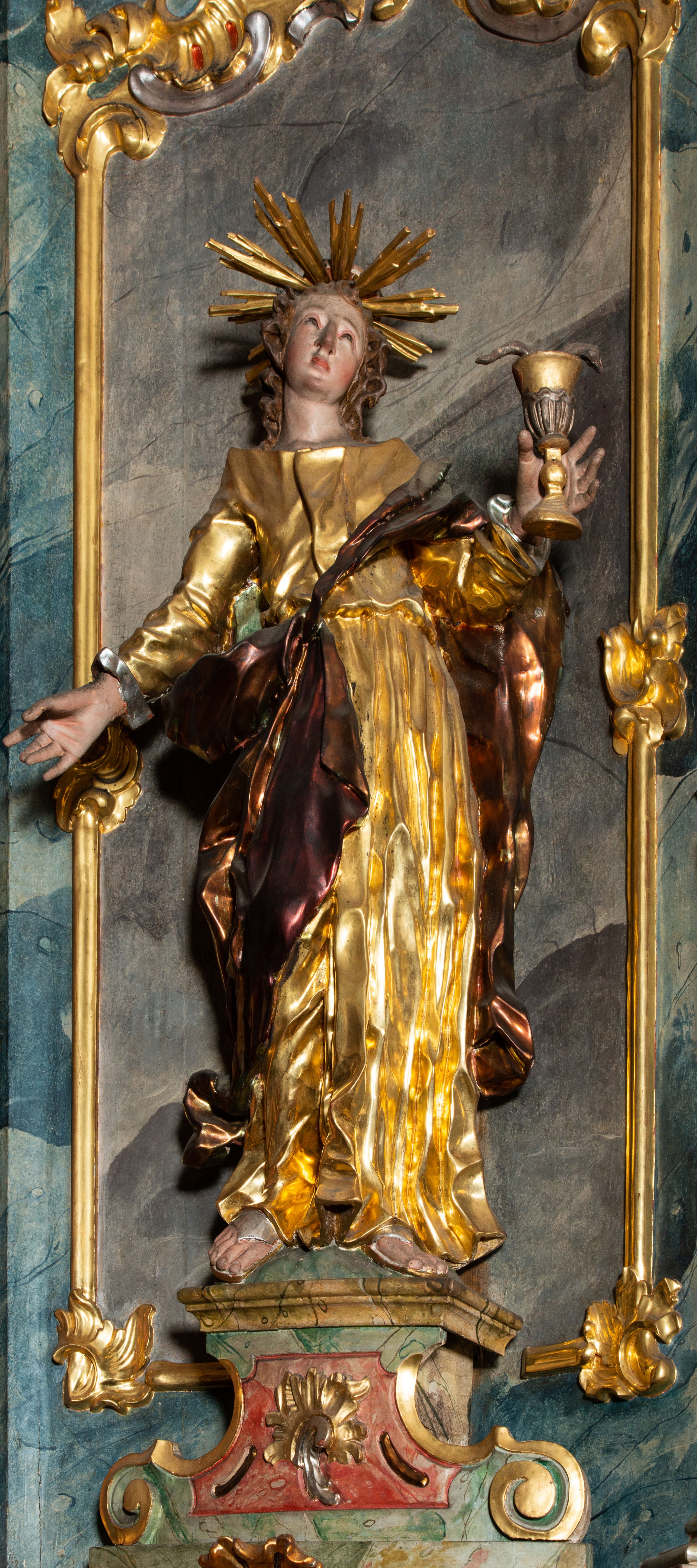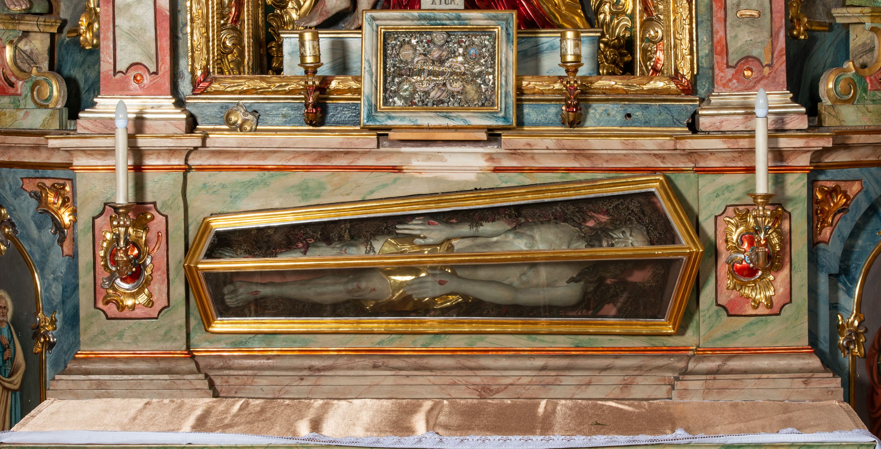 Rokokowy ołtarz zapewne z warsztatu Johannesa Feega z Kiežmarku. Nastawa prezentuje spójny, pasyjny program ikonograficzny.