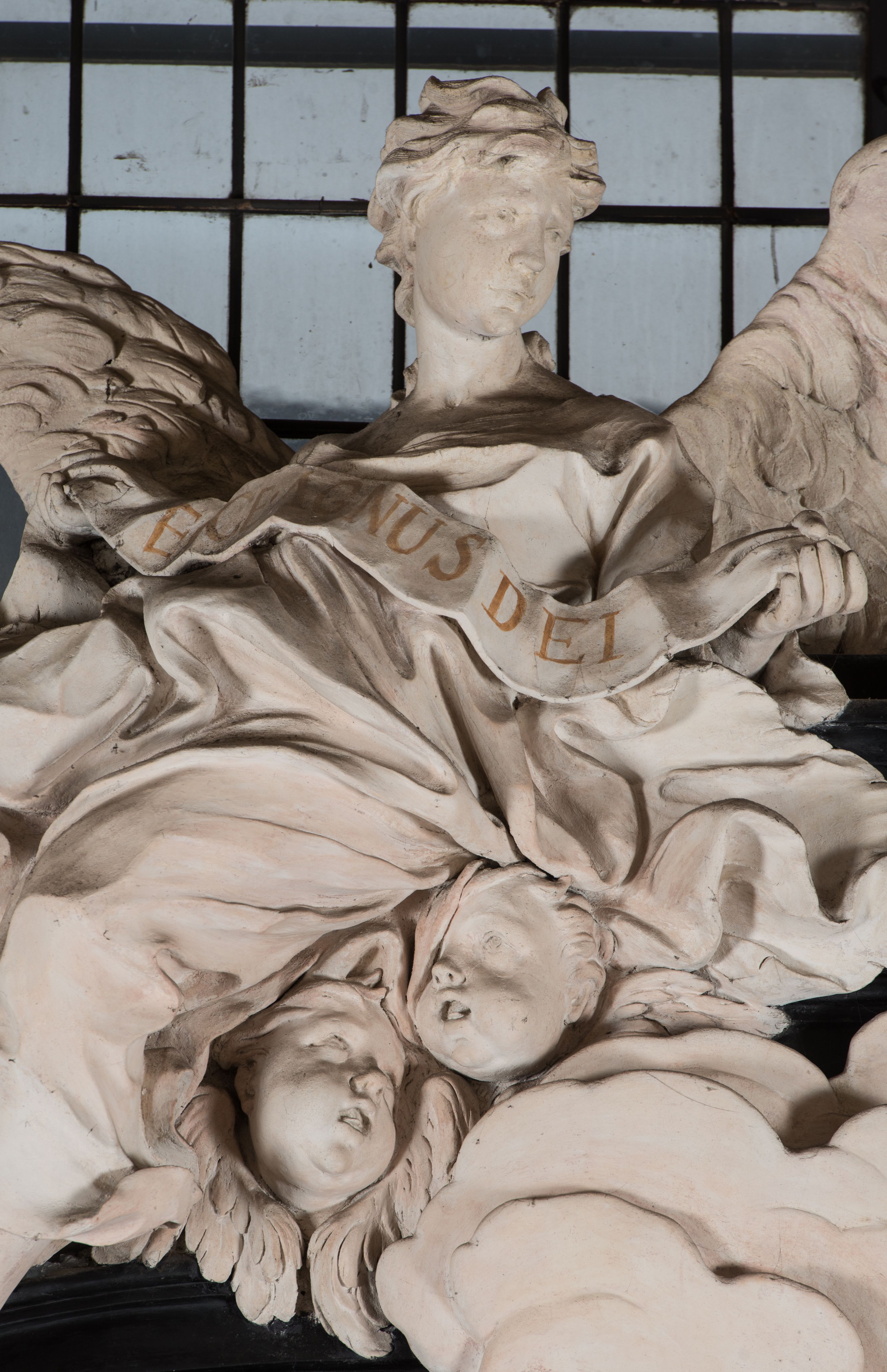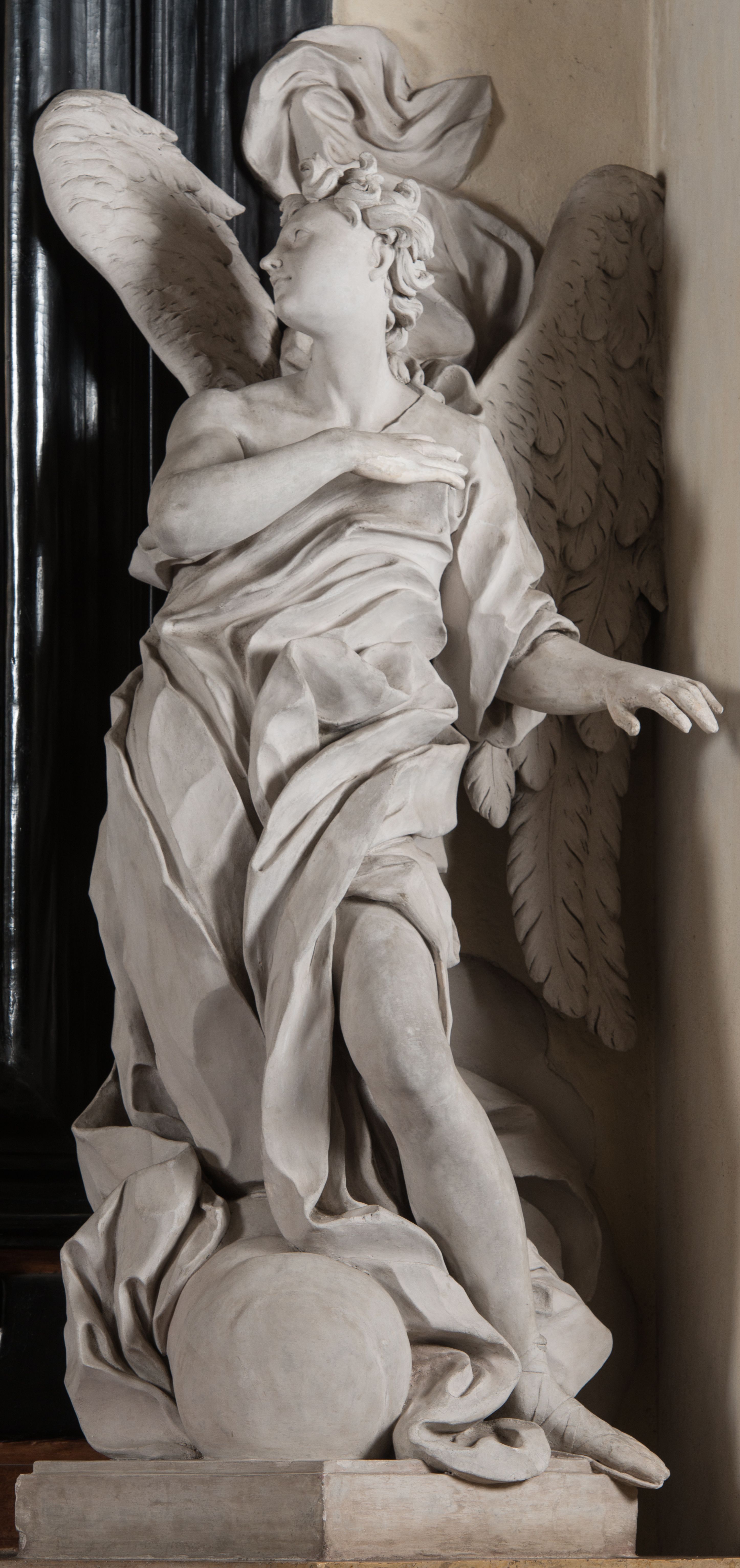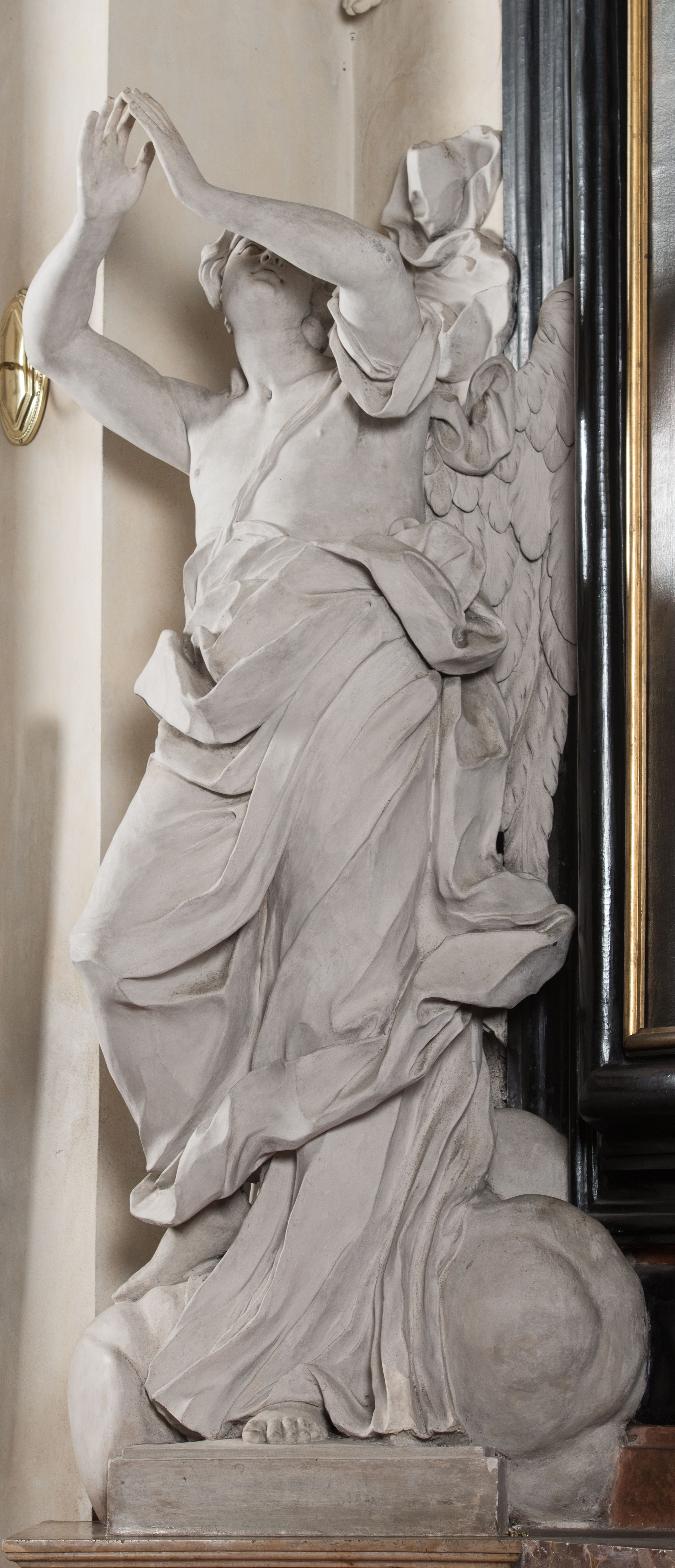 Rozwiązanie zastosowane przez Baltazara Fontanę należy uznać za nowatorskie w sztuce Małopolski ze względu na niespotykany typ nastawy ołtarzowej nawiązującej do ołtarzy w ramionach transeptu bazyliki Santa Maria del Popolo w Rzymie autorstwa Ercole Ferraty, Arrigio Giardé, Giovanniego Antonio Mariego i Antonia Raggiego, wykonanych być może według projektu Gian Lorenza Berniniego. Fontana zastosował ten rodzaj nastawy ołtarzowej w kościele klarysek w Starym Sączu. W figurze anioła unoszącego złożone do modlitwy ręce dostrzeżono podobieństwa z dziełem samego Berniniego – figurą Daniela w kaplicy rodziny Chigich w bazylice Santa Maria del Popolo w Rzymie. O ile jednakże postać wykuta w marmurze w rzymskim kościele niejako spoczywa na skale, o tyle wykonana w stiuku figura anioła unosi się w ku górze. Różnica ta dowodzi twórczej interpretacji rzymskiego pierwowzoru, którego szkice zapewne wykonał Fontana w czasie swojego pobytu w Wiecznym Mieście. Jego postać jest lekka, delikatna, bardziej smukła. Osiągnięty efekt artystyczny był możliwy dzięki zastosowanemu materiałowi (stiuk) i innej technice wykonania.