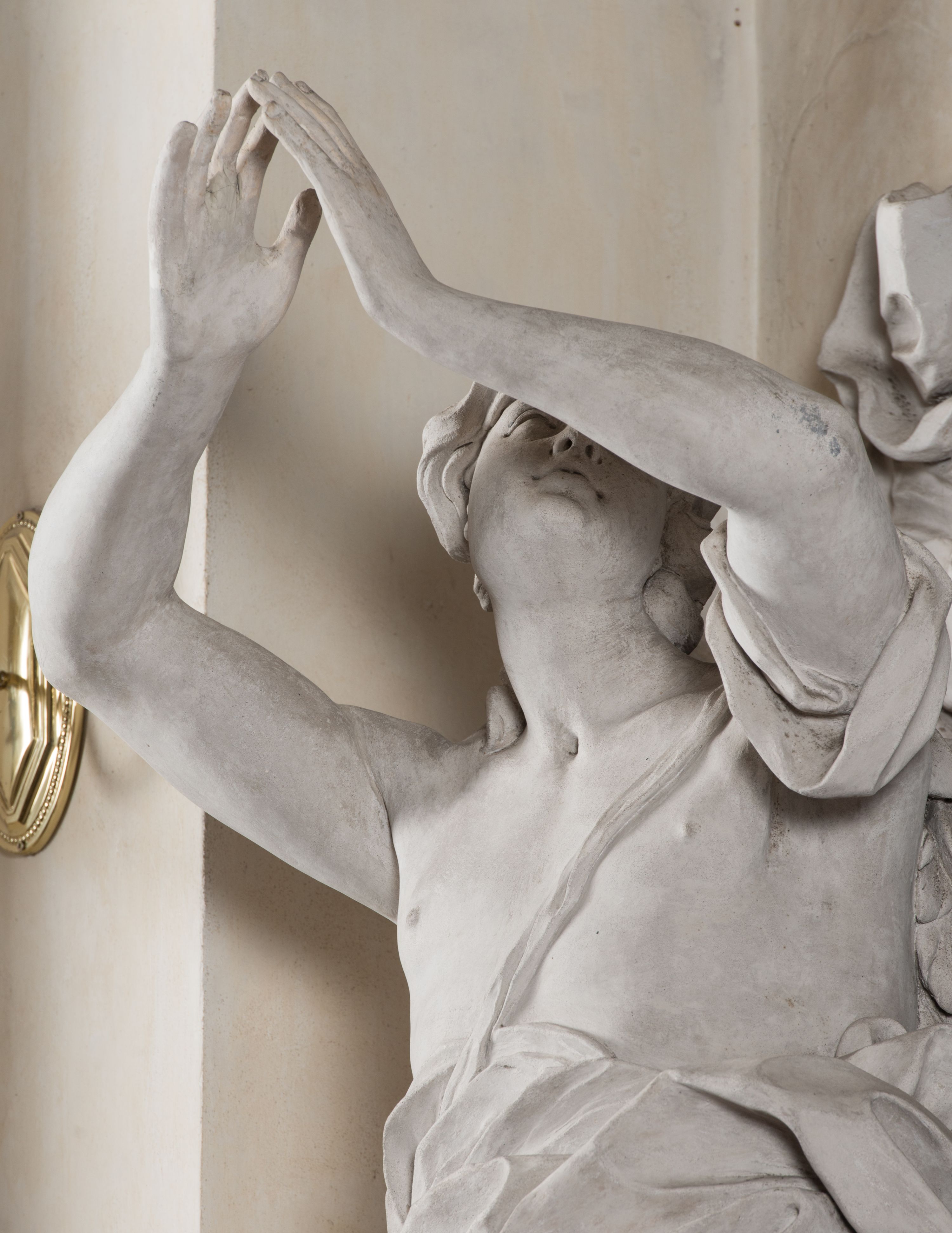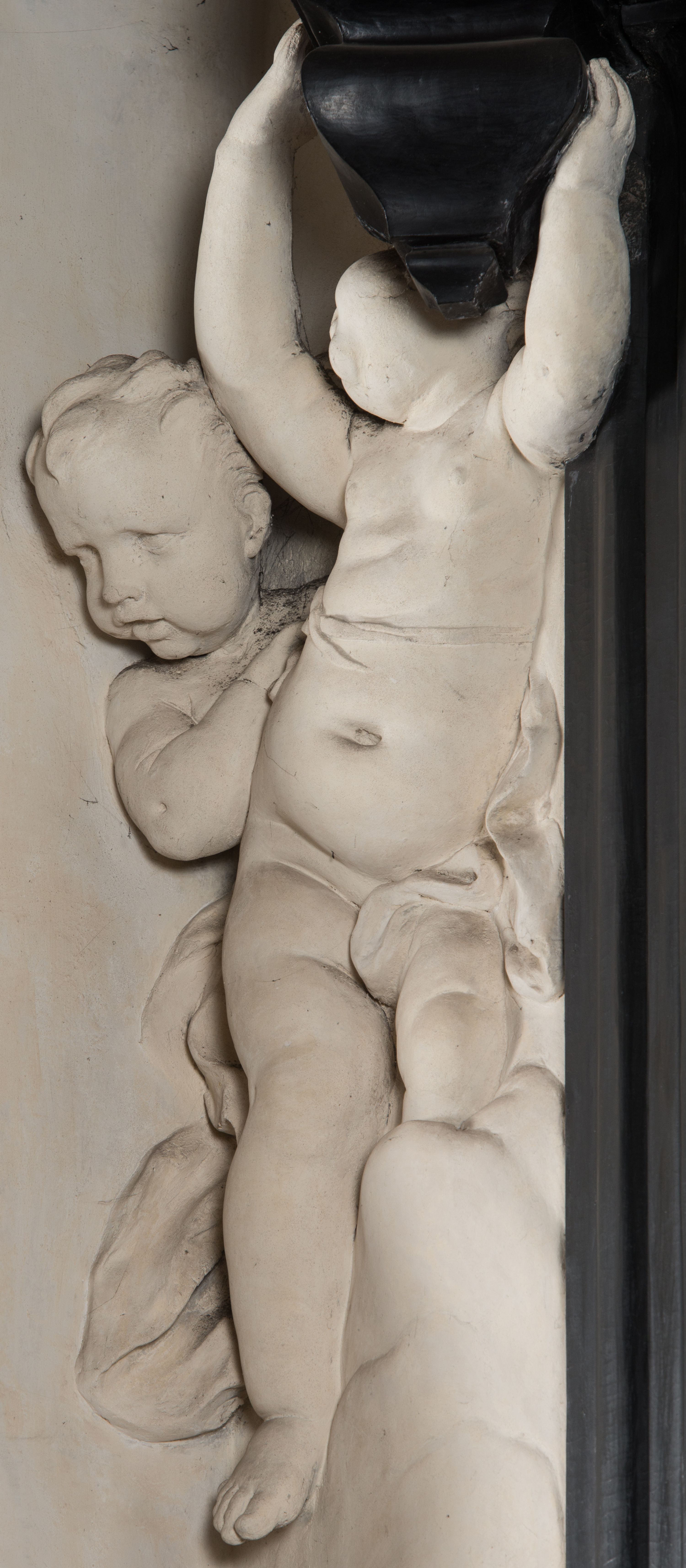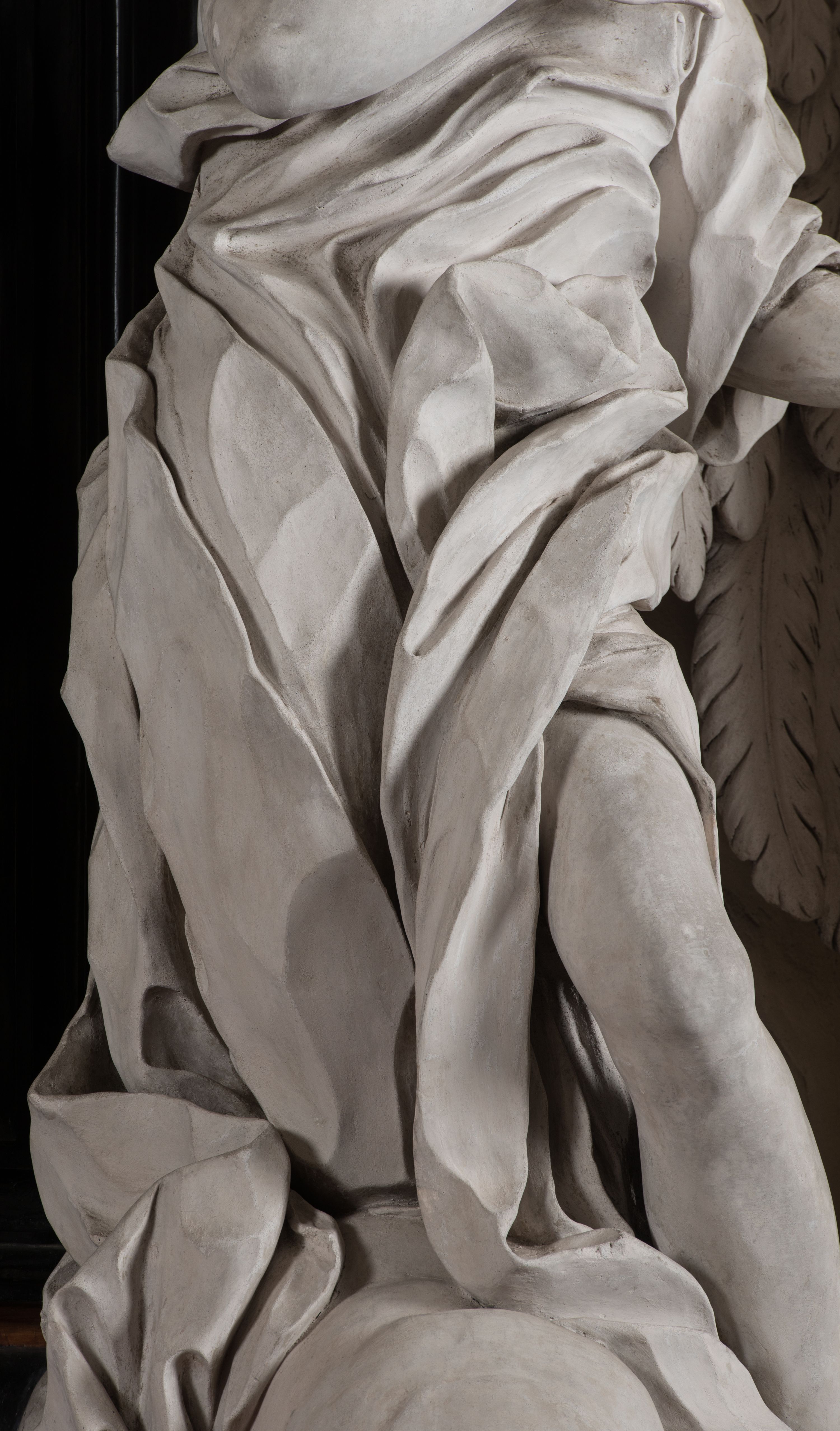 Rozwiązanie zastosowane przez Baltazara Fontanę należy uznać za nowatorskie w sztuce Małopolski ze względu na niespotykany typ nastawy ołtarzowej nawiązującej do ołtarzy w ramionach transeptu bazyliki Santa Maria del Popolo w Rzymie autorstwa Ercole Ferraty, Arrigio Giardé, Giovanniego Antonio Mariego i Antonia Raggiego, wykonanych być może według projektu Gian Lorenza Berniniego. Fontana zastosował ten rodzaj nastawy ołtarzowej w kościele klarysek w Starym Sączu. W figurze anioła unoszącego złożone do modlitwy ręce dostrzeżono podobieństwa z dziełem samego Berniniego – figurą Daniela w kaplicy rodziny Chigich w bazylice Santa Maria del Popolo w Rzymie. O ile jednakże postać wykuta w marmurze w rzymskim kościele niejako spoczywa na skale, o tyle wykonana w stiuku figura anioła unosi się w ku górze. Różnica ta dowodzi twórczej interpretacji rzymskiego pierwowzoru, którego szkice zapewne wykonał Fontana w czasie swojego pobytu w Wiecznym Mieście. Jego postać jest lekka, delikatna, bardziej smukła. Osiągnięty efekt artystyczny był możliwy dzięki zastosowanemu materiałowi (stiuk) i innej technice wykonania.