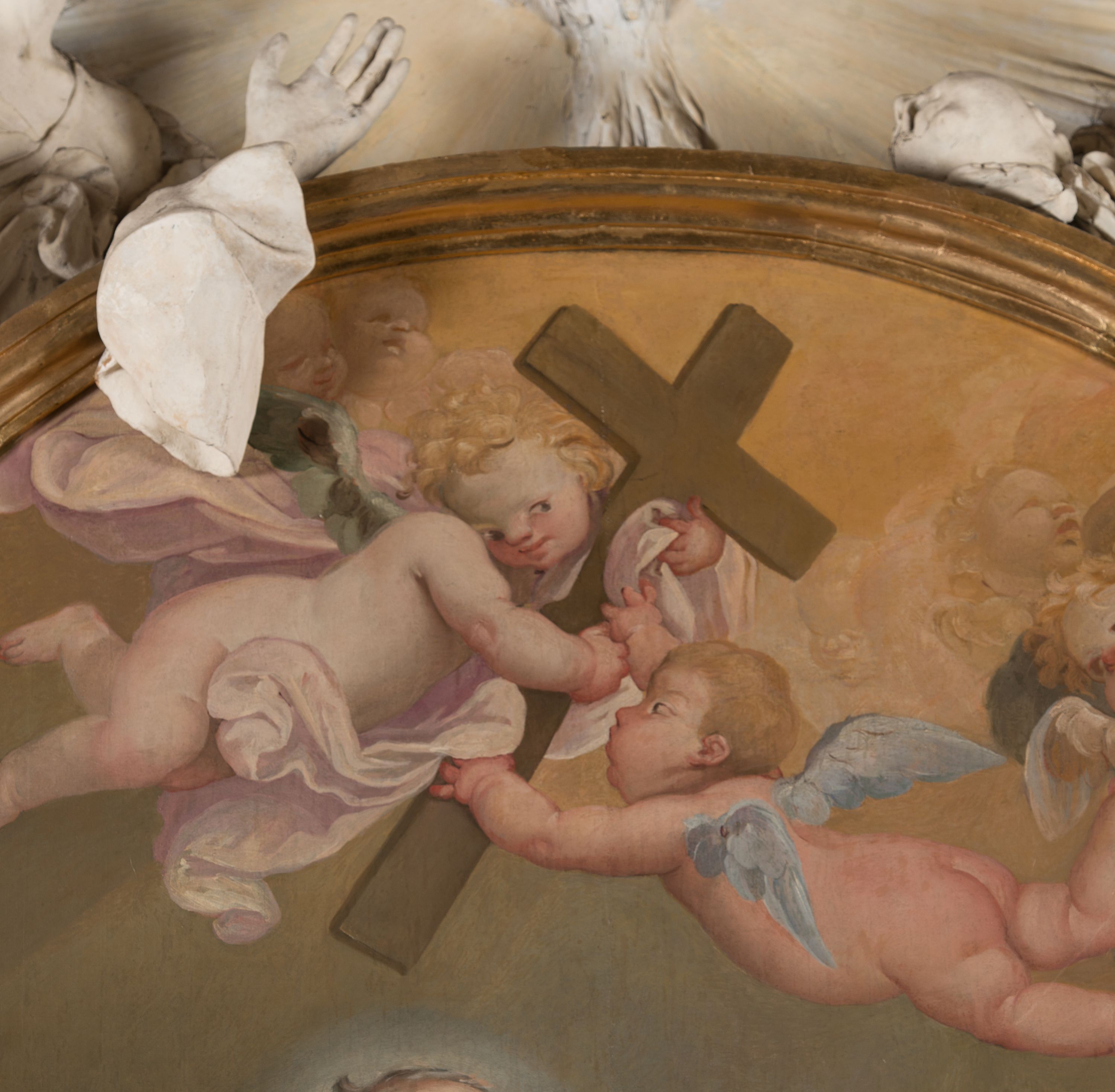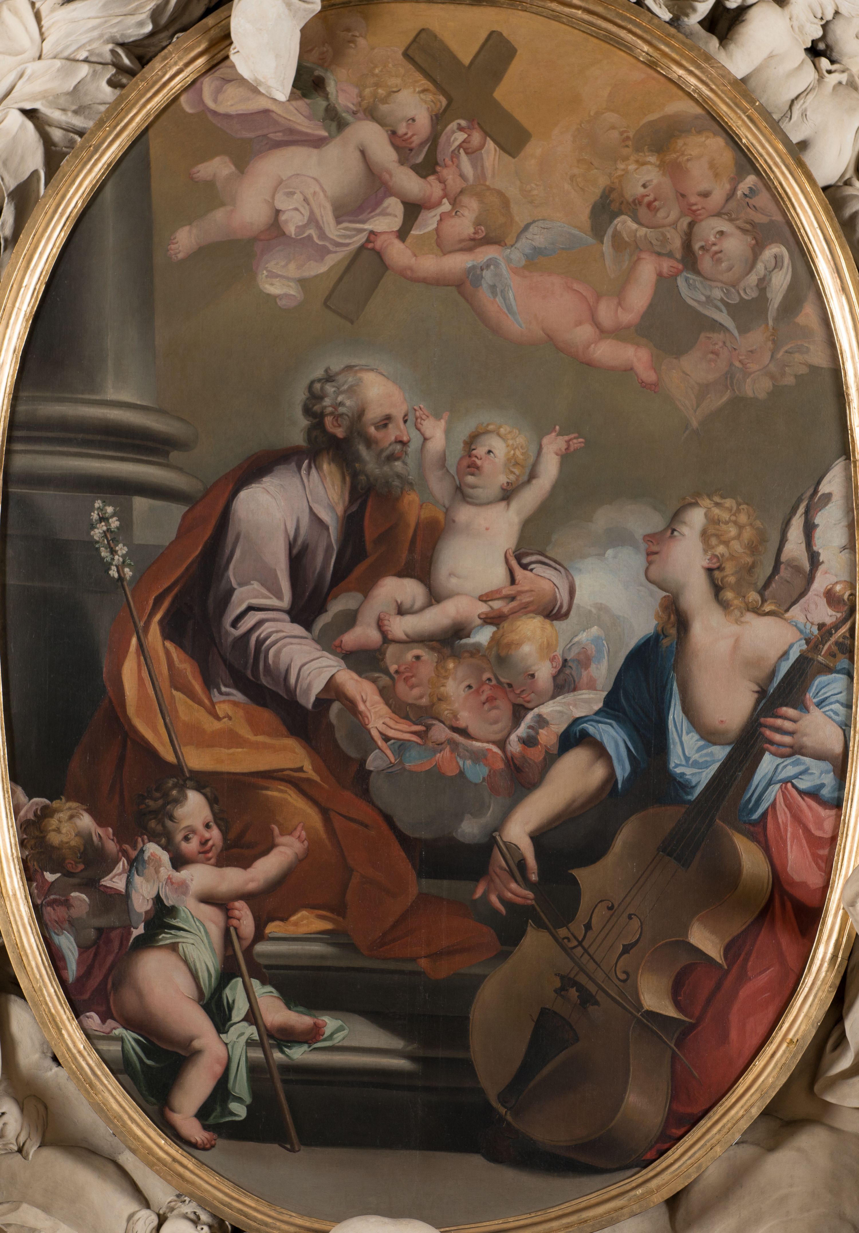 Ołtarz w kaplicy św. Józefa powstał w latach 1695-1703. Jego strukturę i dekorację rzeźbiarską wykonał Baltazar Fontana i jego warsztat. Nowatorski typ nastawy w formie owalnego obrazu flankowanego przez anioły był inspirowany rzymskimi dziełami z kręgu Gian Lorenzo Berniniego (ołtarze w kościele Santa Maria del Popolo).