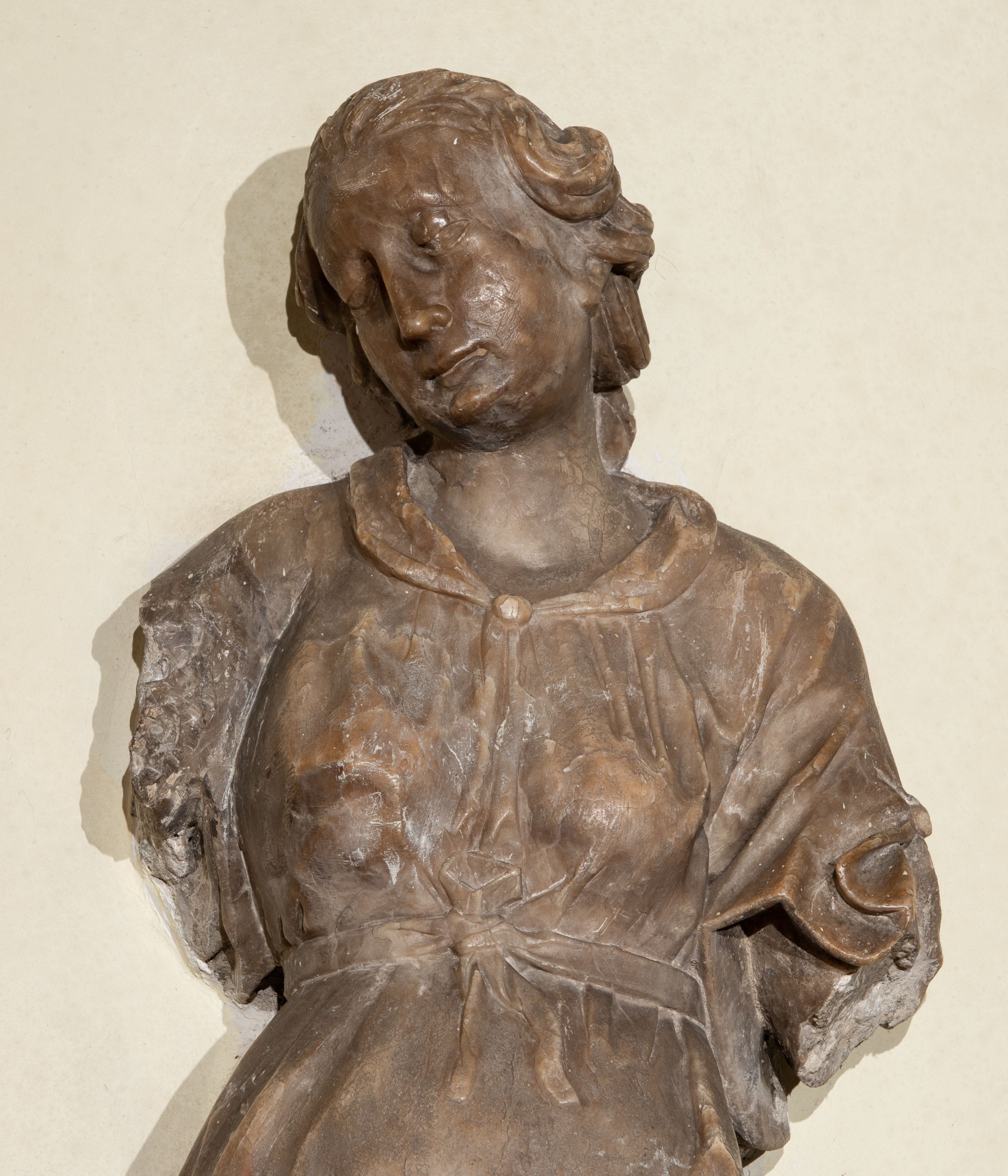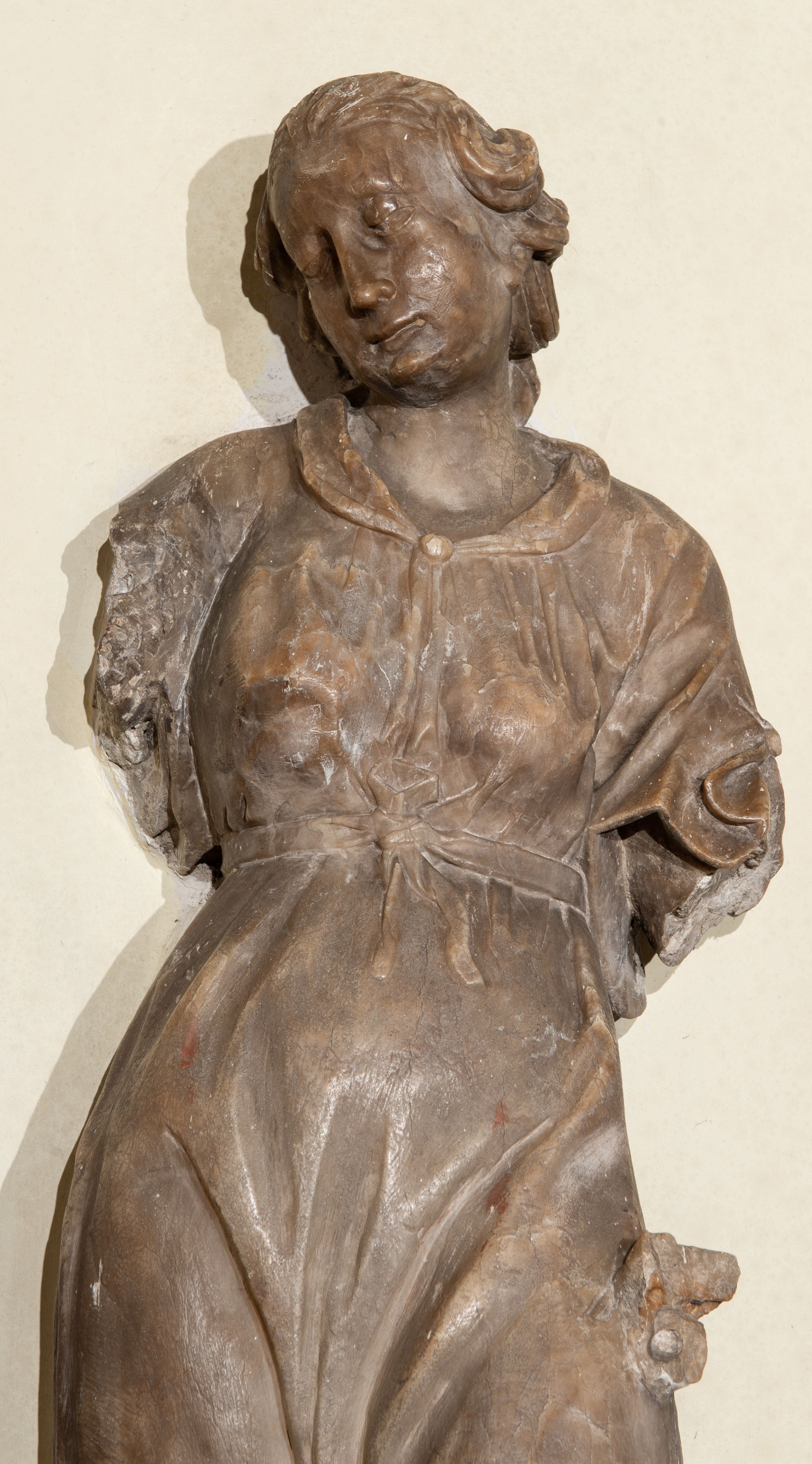 Sposób wykonania rzeźby oraz jej proporcje zdradzają rękę wprawnego kamieniarza, który z pietyzmem w miękkim alabastrze odkuł wiele precyzyjnych detali twarzy, czy też stroju, jak np. przepasującą biodra wstążkę. Szczególnie na uwagę zasługuje sposób kształtowania piersi okrytych prawie że przeźroczystą tkaniną. Niestety uszkodzenia w partii rąk i pozbawienie przedstawienia atrybutu uniemożliwia jednoznaczną interpretację.